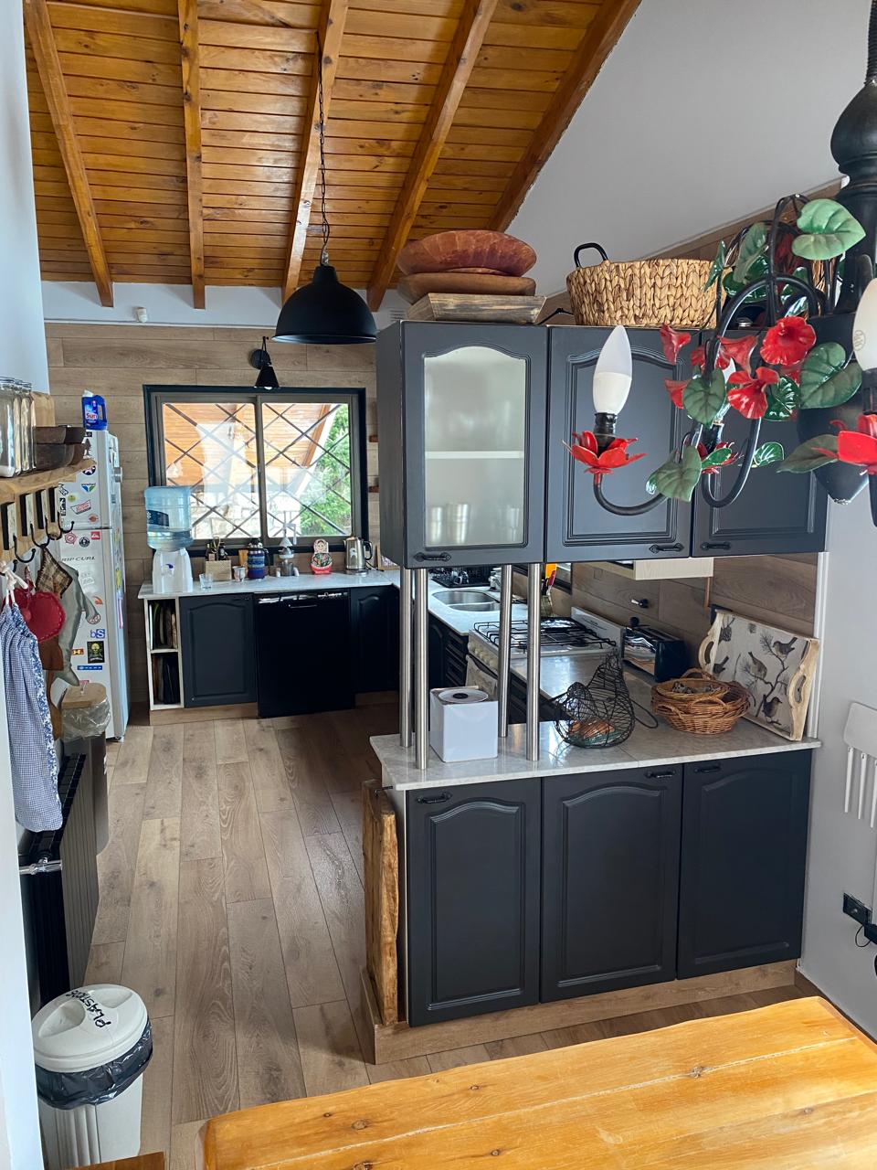 La cabaña monoambiente es independiente y cuenta con un ambiente único con cama, cocina integrada y baño completo, ideal para huéspedes adicionales o para quienes buscan mayor privacidad.