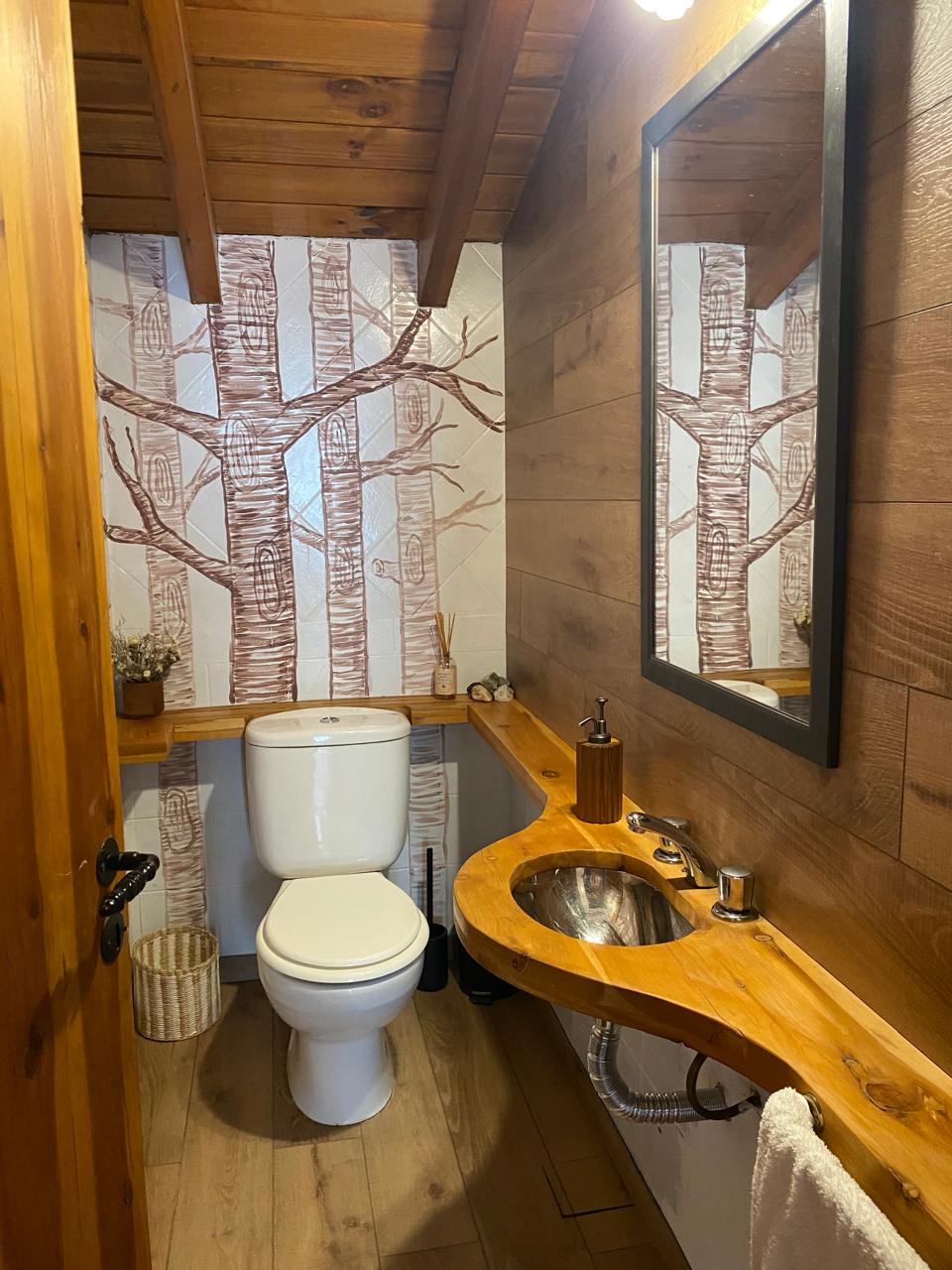 La propiedad cuenta con una casa principal de amplias dimensiones y una cabaña monoambiente independiente, rodeadas de naturaleza y pensadas para el descanso y la comodidad. La casa principal tiene dos accesos: la entrada norte lleva a una escalera de madera que sube al living y a los dormitorios ubicados al frente, mientras que la entrada sur se encuentra junto a la bajada de autos y una tranquera grande, en la zona del fogón y el chulengo, y conduce a la escalera que conecta con la cocina, el cuarto trasero y el lavadero.