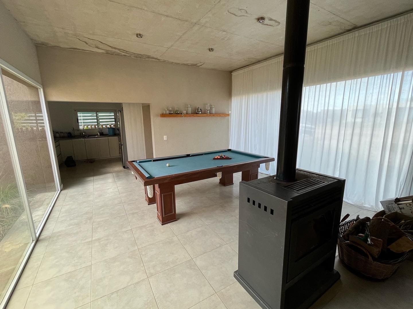 Gran Living con mesa de Pool y estufa Tromen a leña