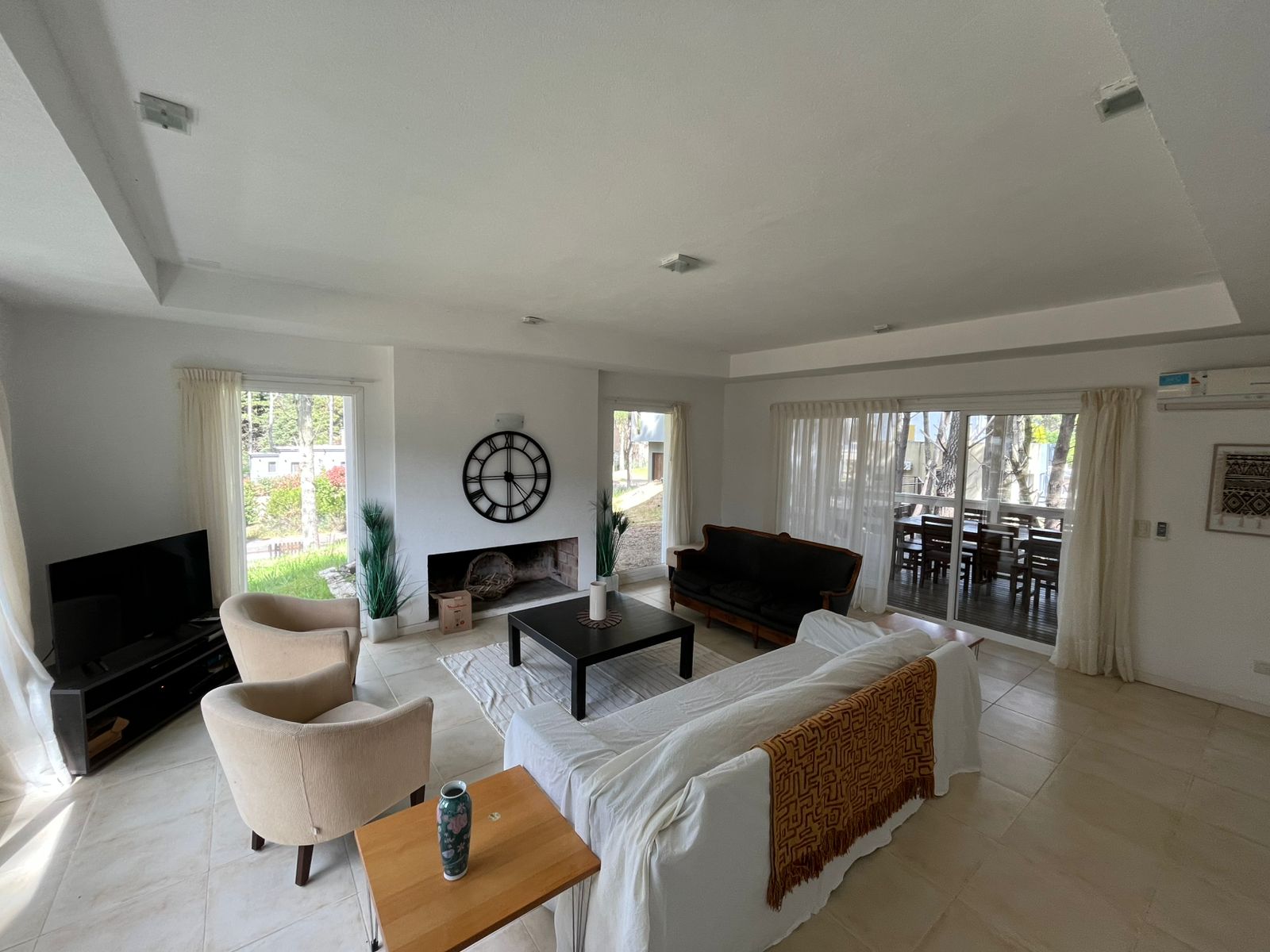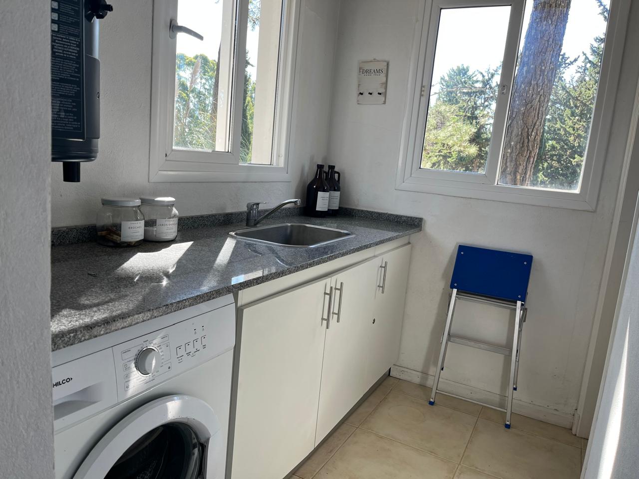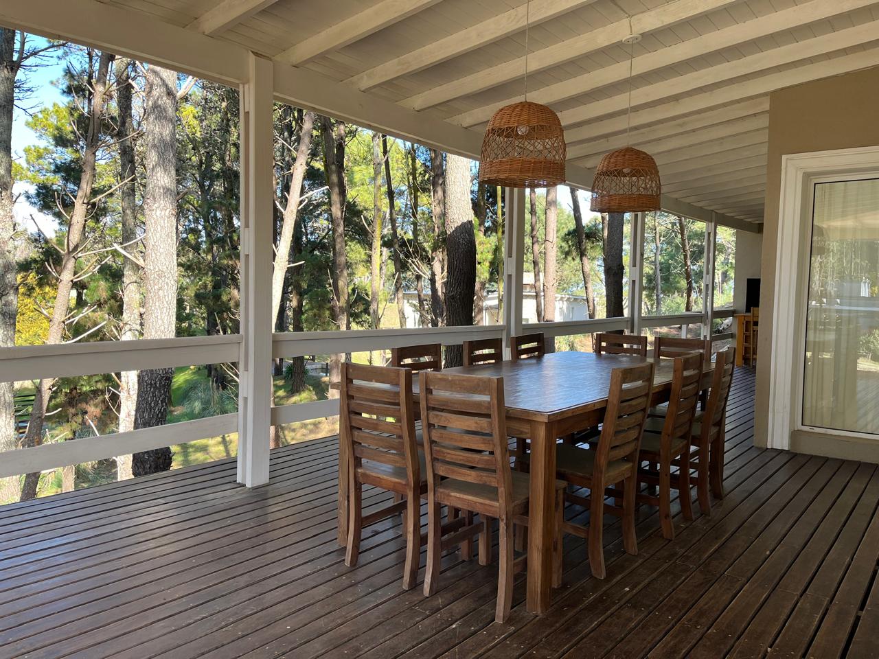Amplio living con hogar a leña, comedor con salida a galería semicubierta con parrilla, cocina independiente con comedor, toilette, lavadero cubierto, dependencia de servicio con baño.