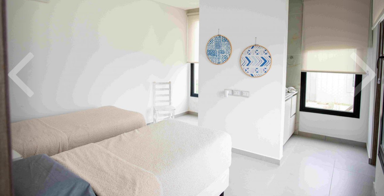 Dos dormitorios con dos camas de una plaza cada uno que comparten baño completo.