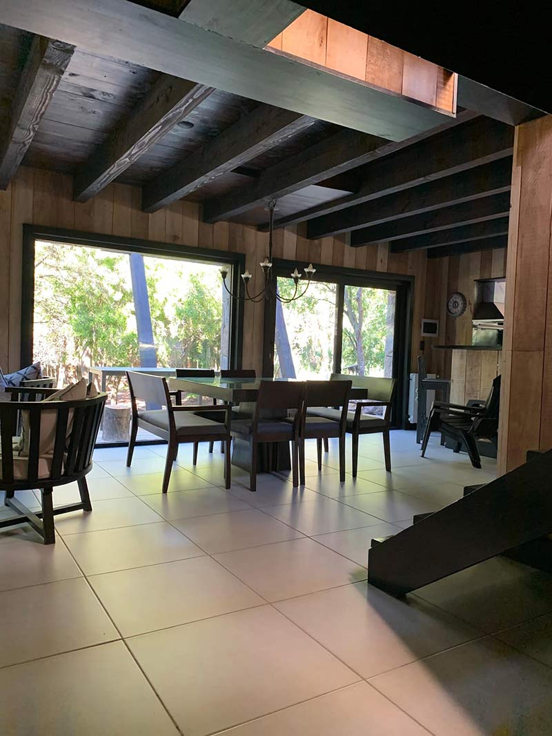 Living-comedor con grandes ventanales para poder disfrutar del encanto de la montaña, tanto en verano como en invierno. Con hogar para contemplar el fuego.