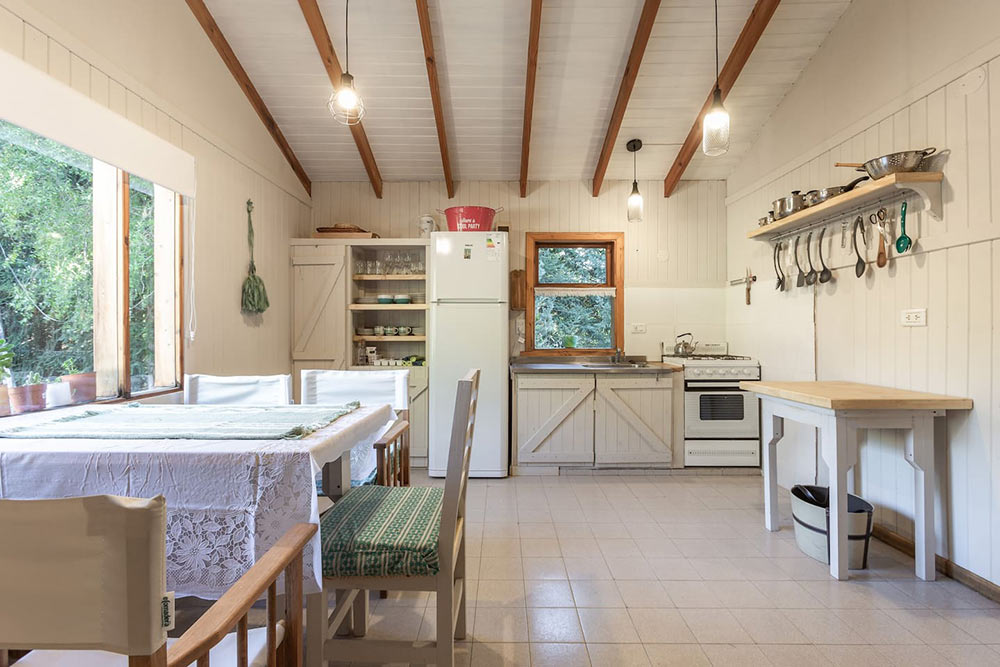 Afuera hay lugar para hacer asado, y también cuenta con disco y plancha de hierro para cocinar al fuego.