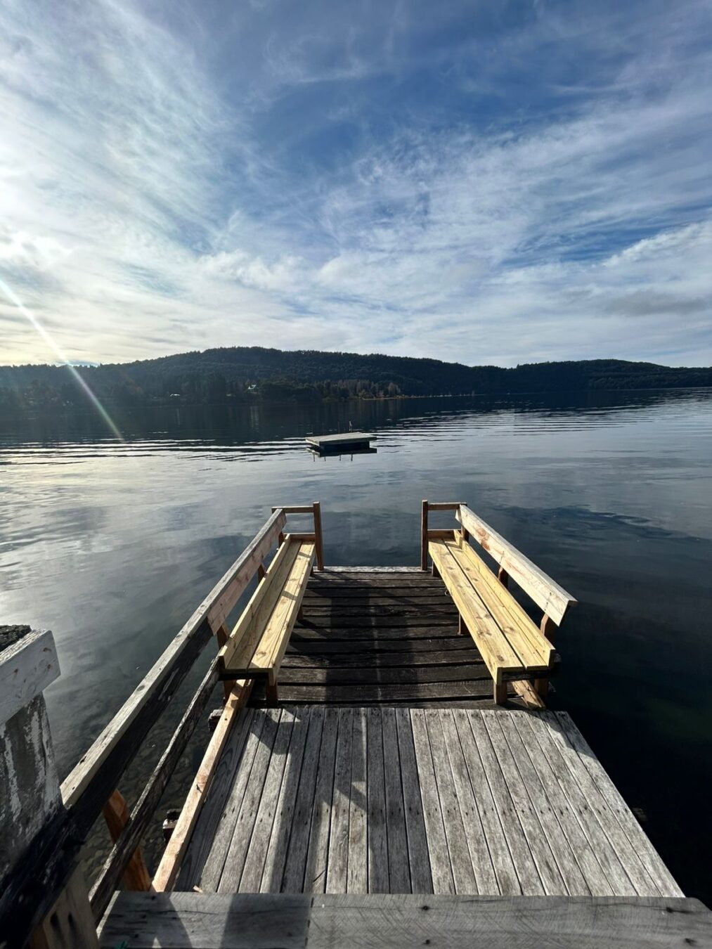 En la planta alta se encuentra la Master Suite con un vestidor, cama doble, amplio baño y vistas al lago. El segundo dormitorio dispone de dos camas individuales y una amplia sala de estar con sofás y un televisor inteligente. En la planta baja, encontramos el salón comedor con chimenea, una cocina completa con lavavajillas, un baño completo y el tercer dormitorio en suite con una cama matrimonial. Por último, el cuarto dormitorio ofrece dos camas individuales.