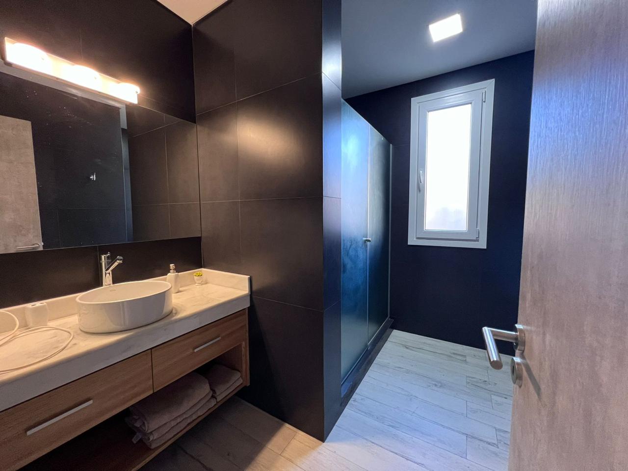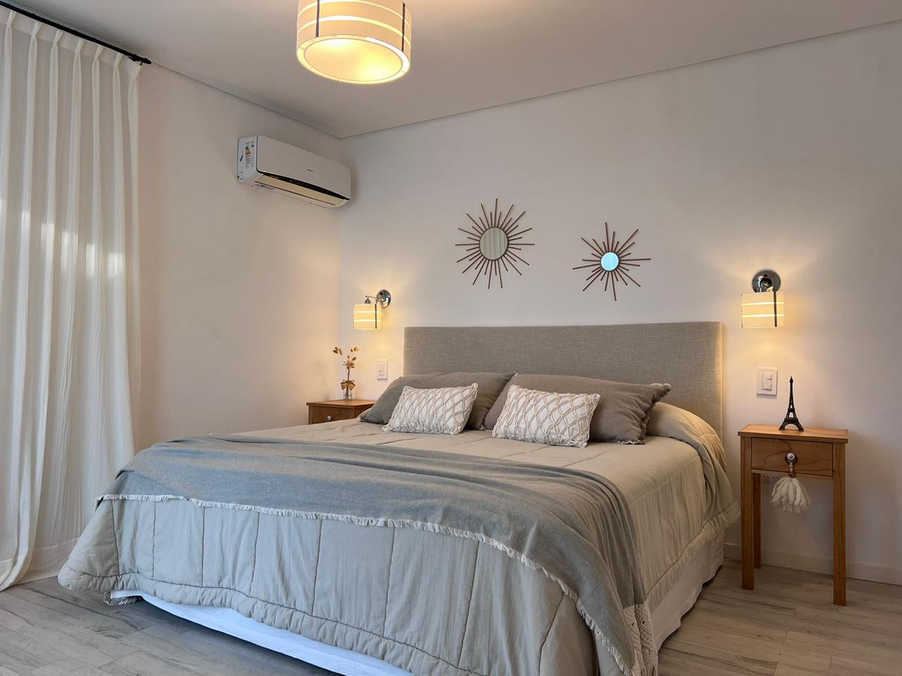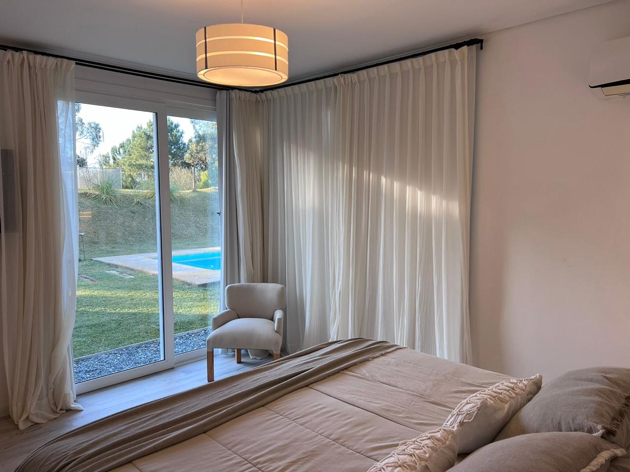 3 dormitorios, 2 banos completos y un toileet, incluye sabanas y toallas. Gran galeria con vista al parque y pileta.
