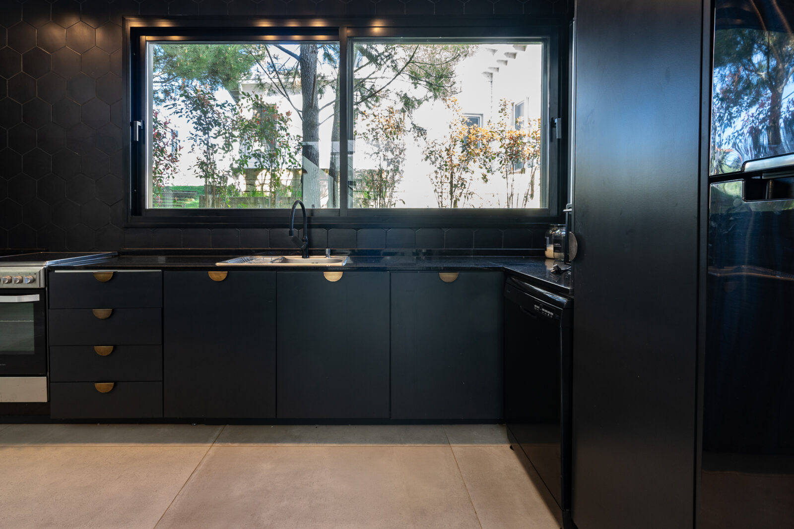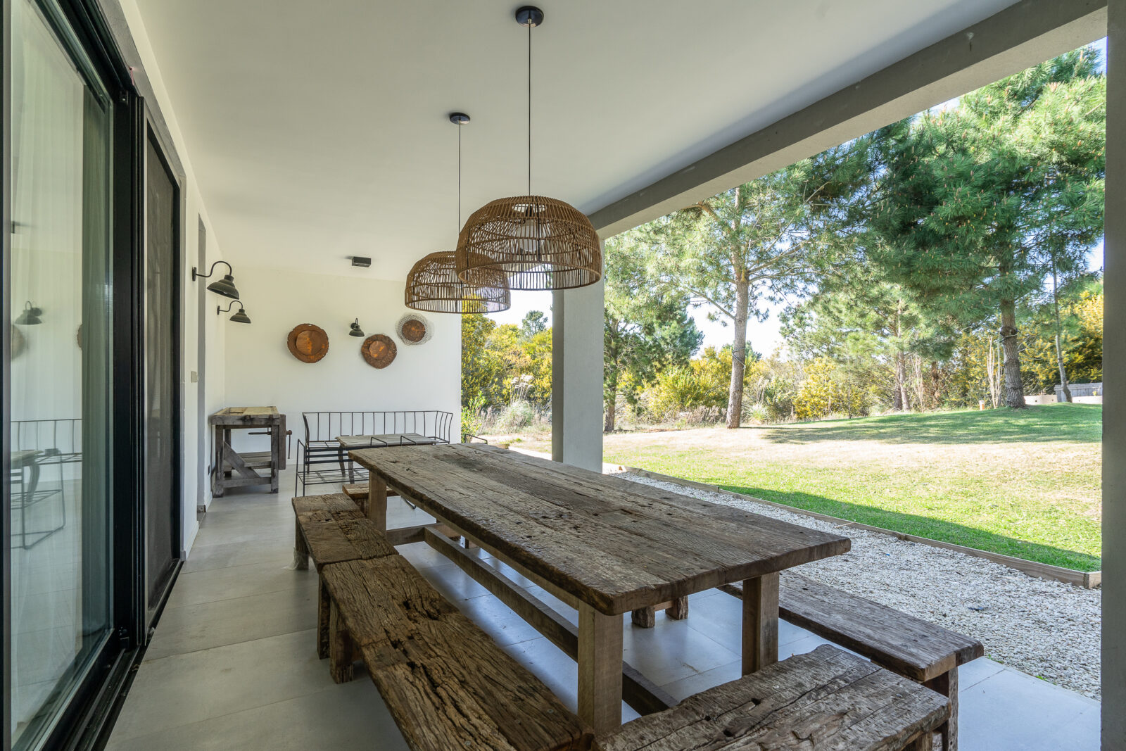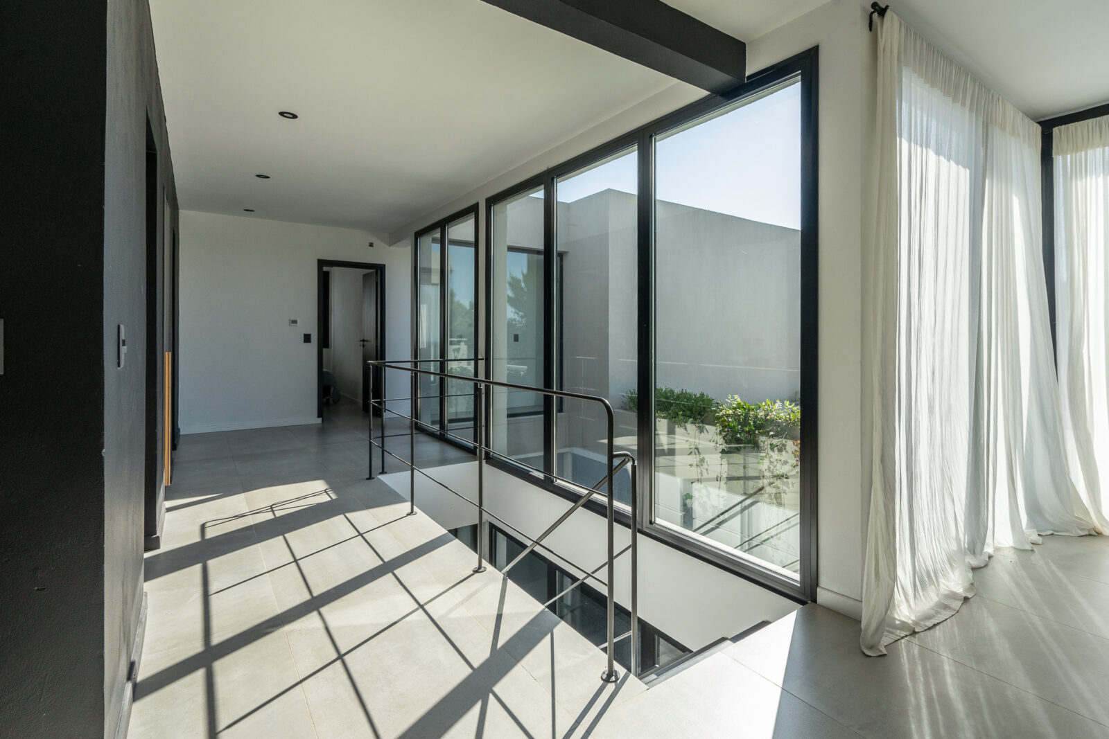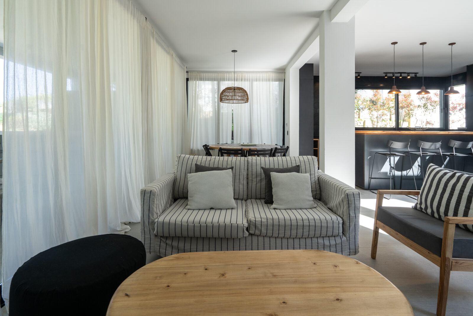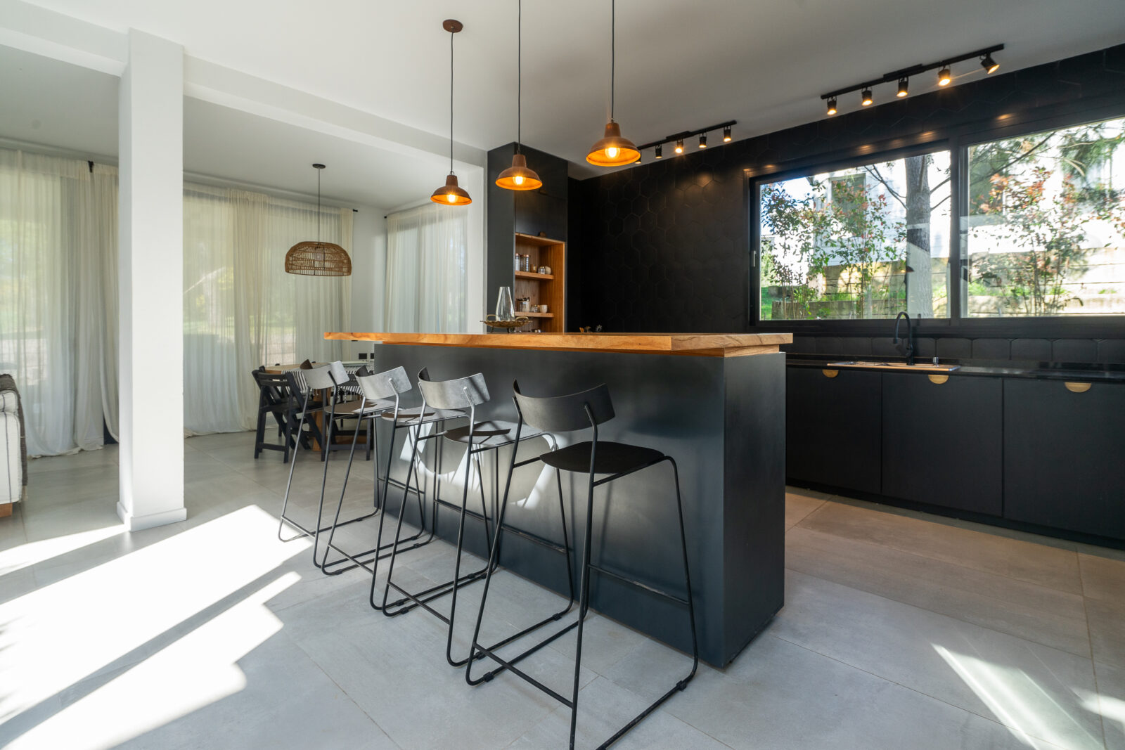 Amplia galeria con parrilla, isla con taburetes , mesa de 3,00 x 1,00, sector de sillones