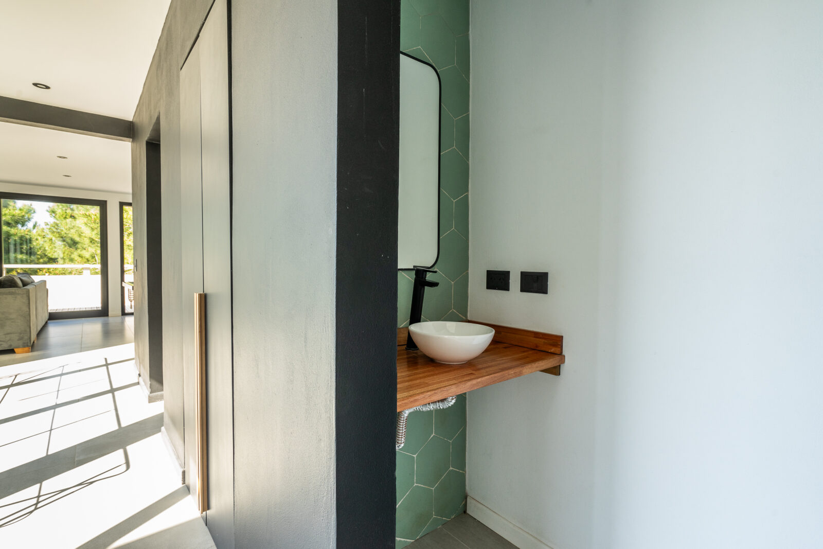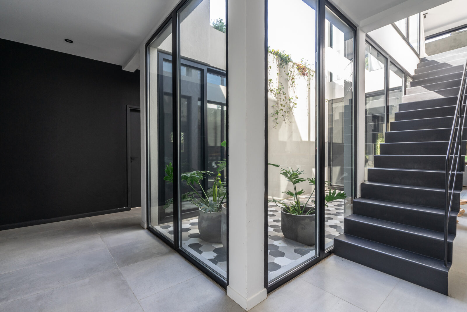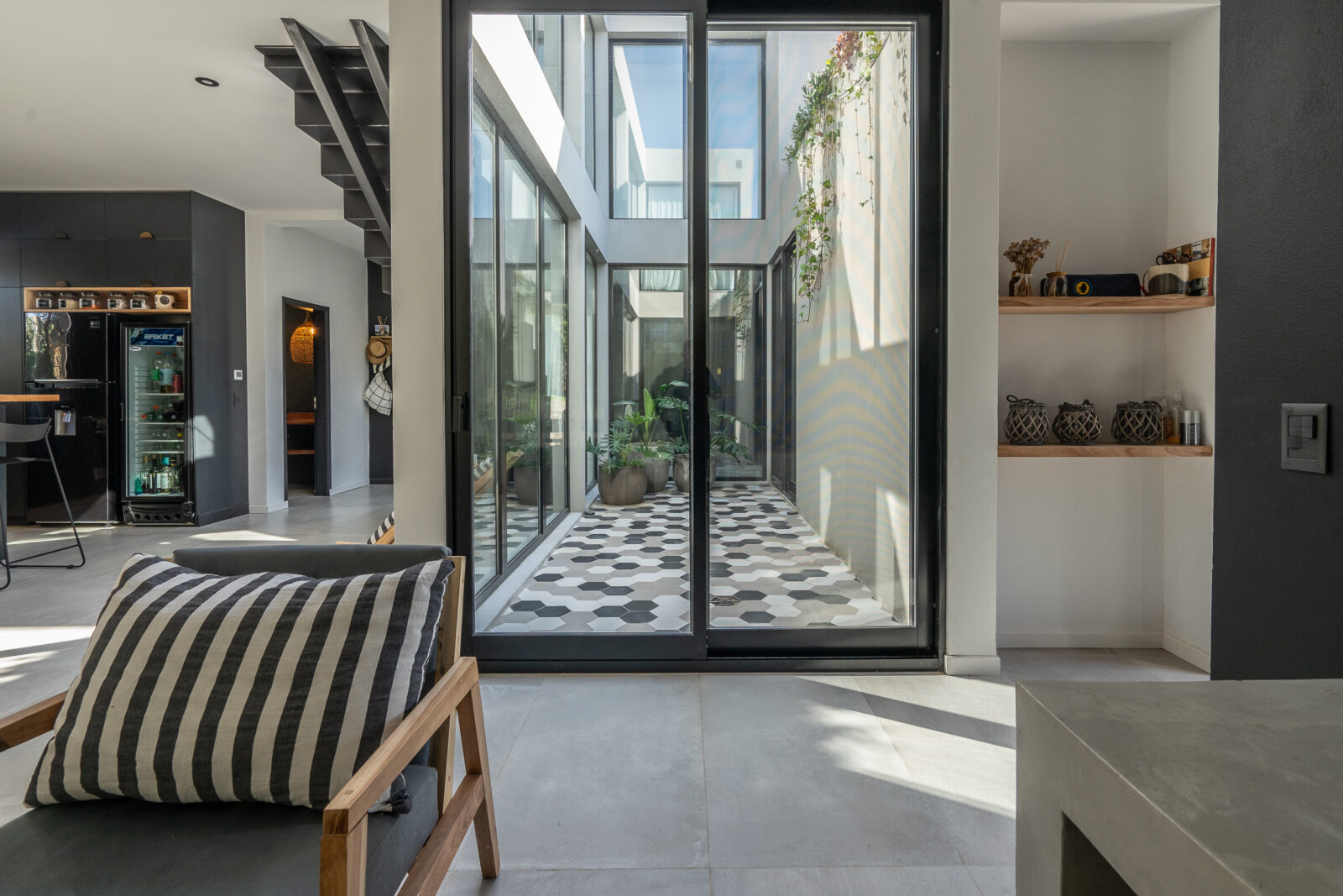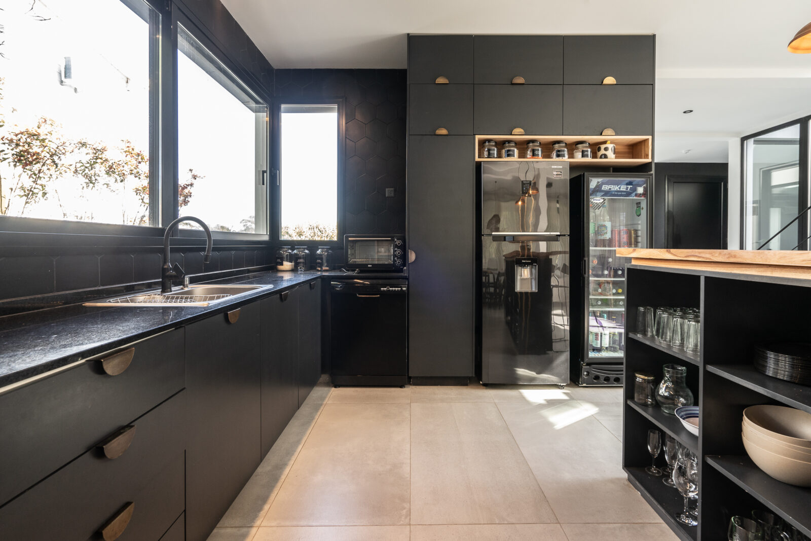 Amplia galeria con parrilla, isla con taburetes , mesa de 3,00 x 1,00, sector de sillones
