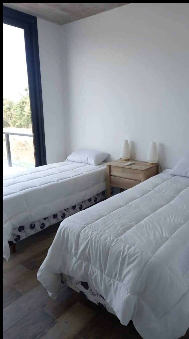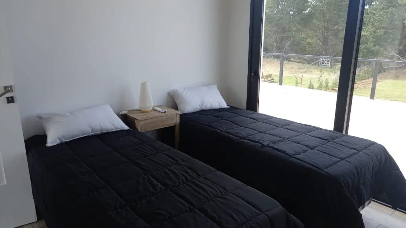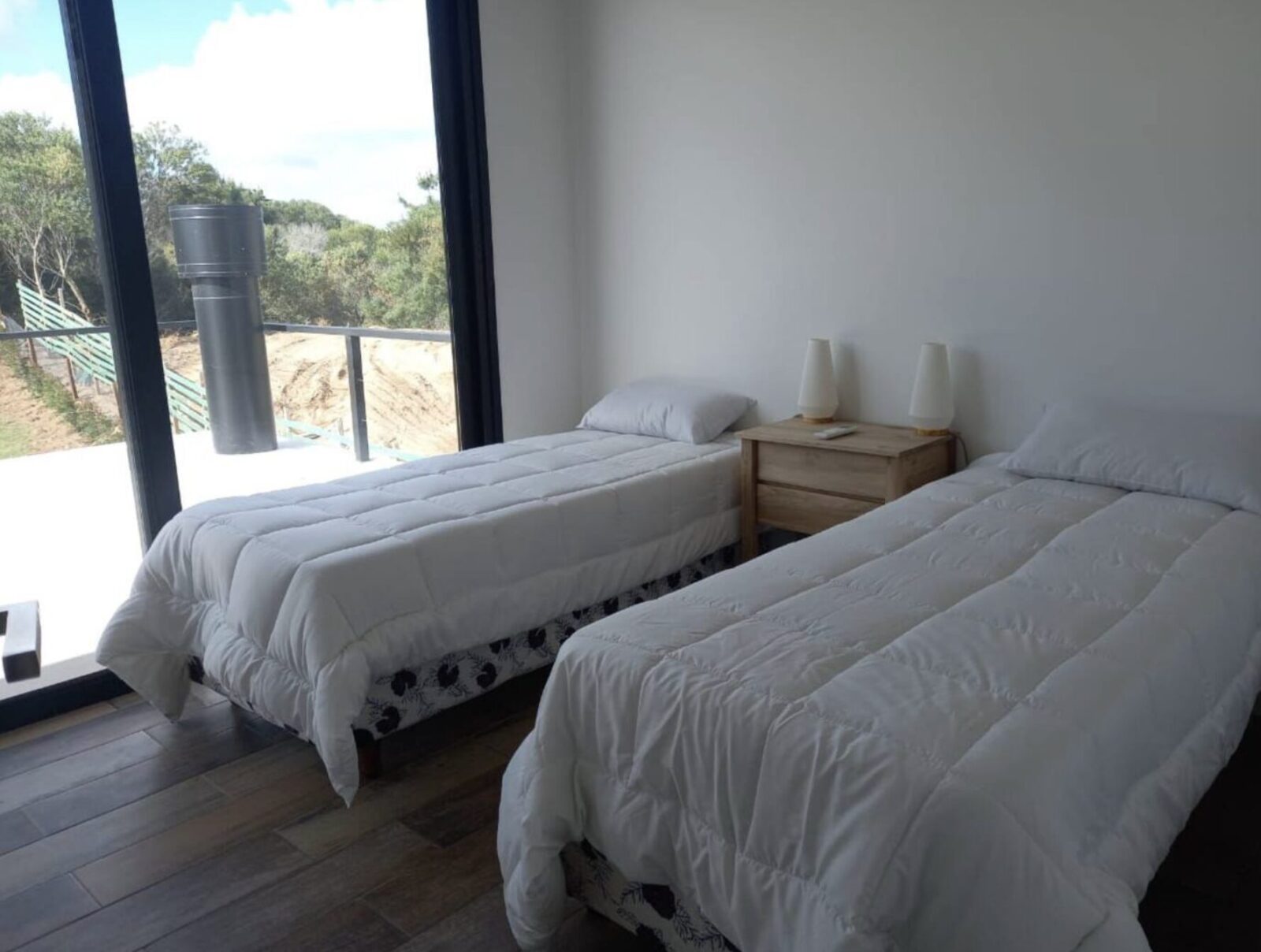 2 camas Sommier de 0.90 x 1.90 con posibilidad de unirla y convertirla en cama matrimonial. Aire acondicionado de 3000, placard completo con cajonera.