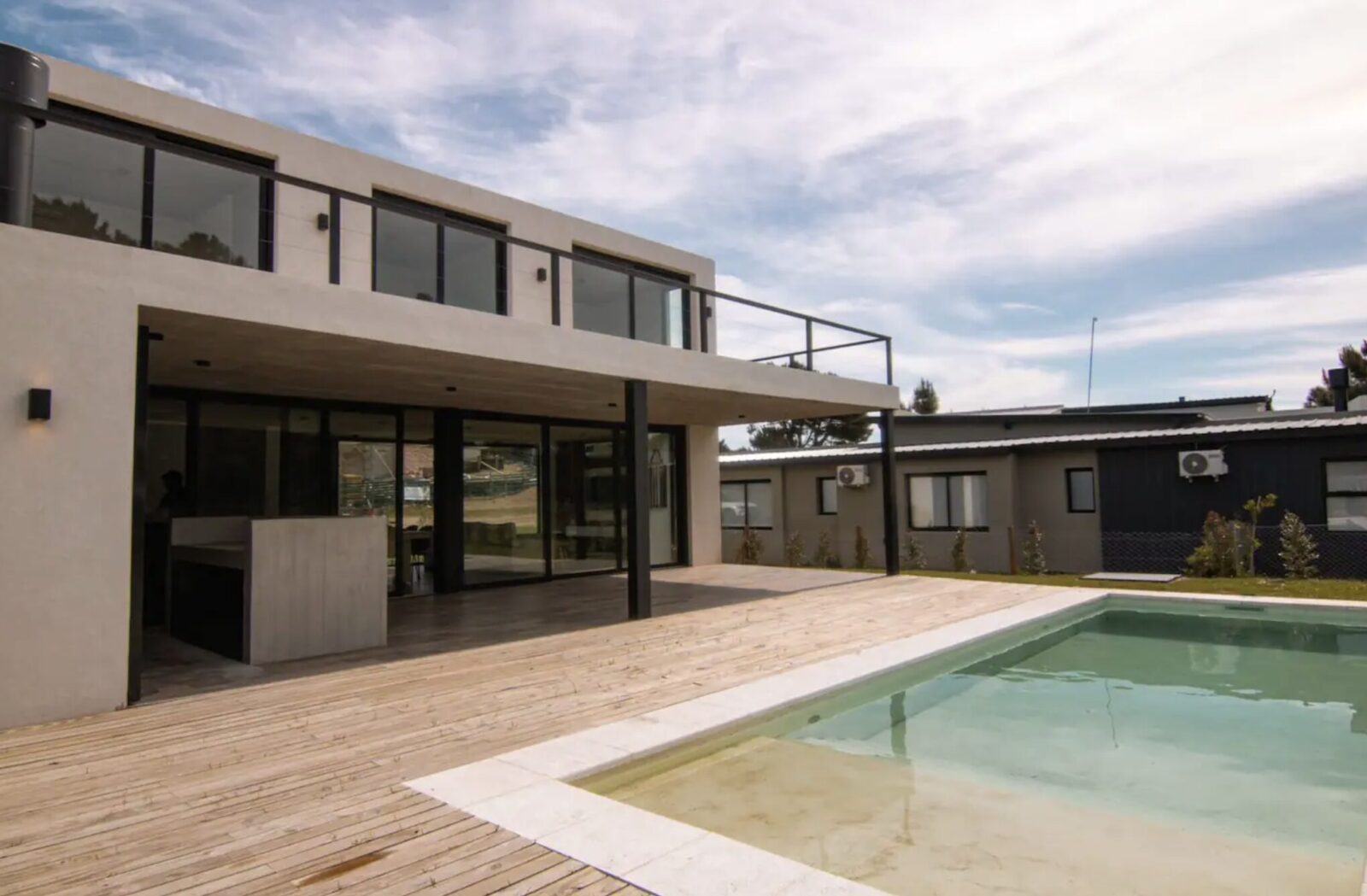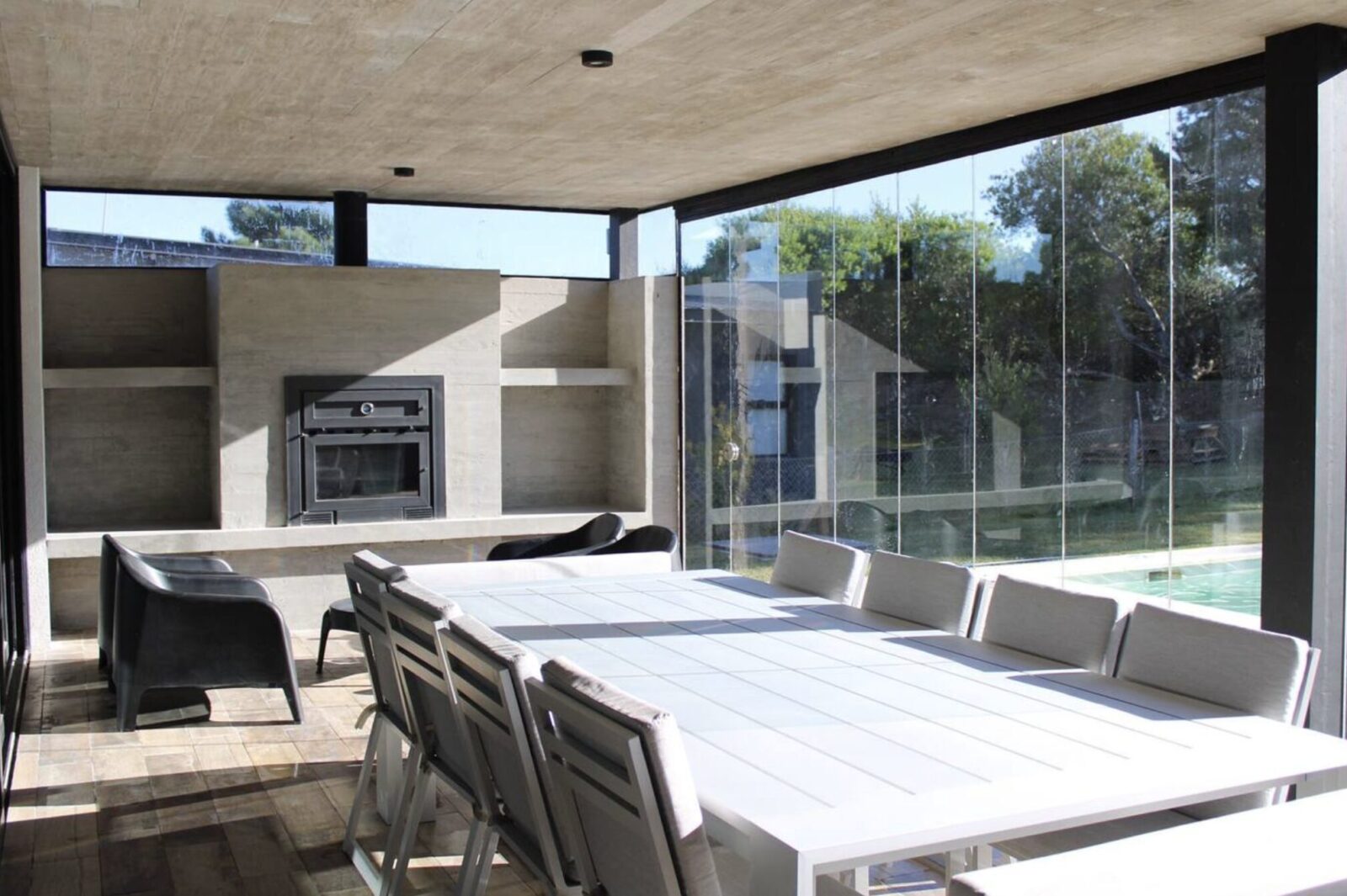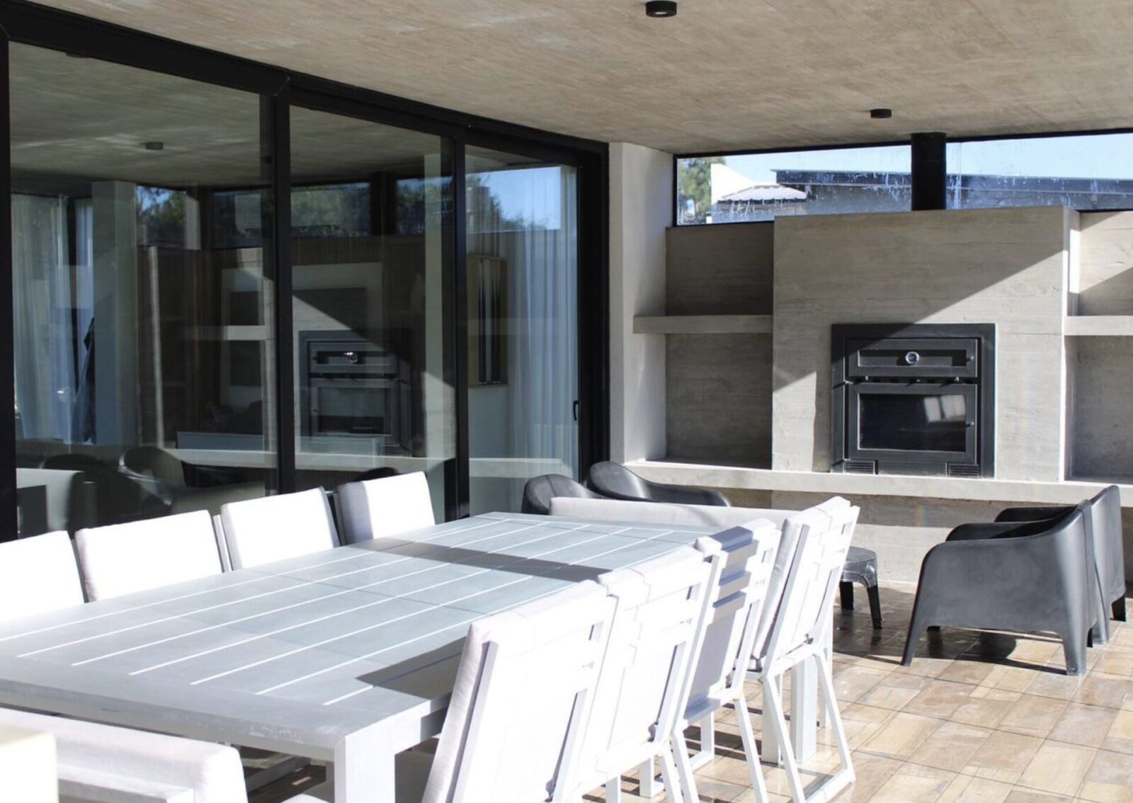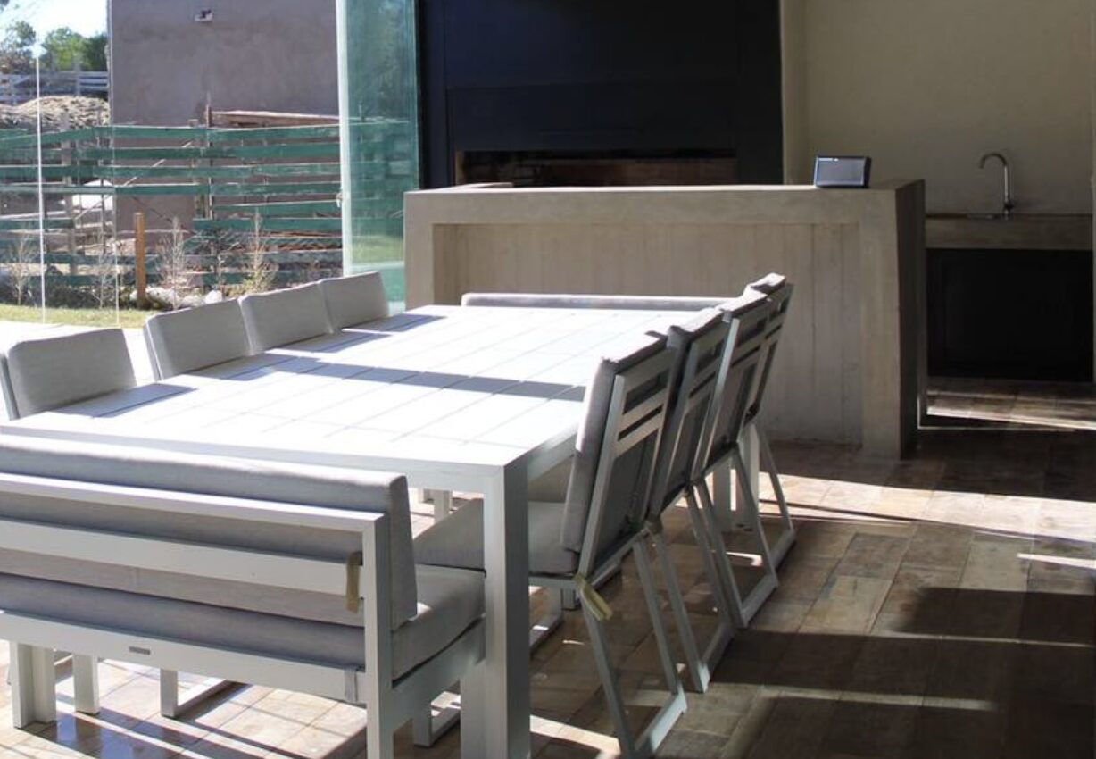 Salida a Galería con Parrilla y mesa se Aluminio para 12 personas. Cerramiento de vidrio en Galeria y horgo hogar en el mismo.Deck y Pileta de 3.5 x 9.00 de espejo de agua.