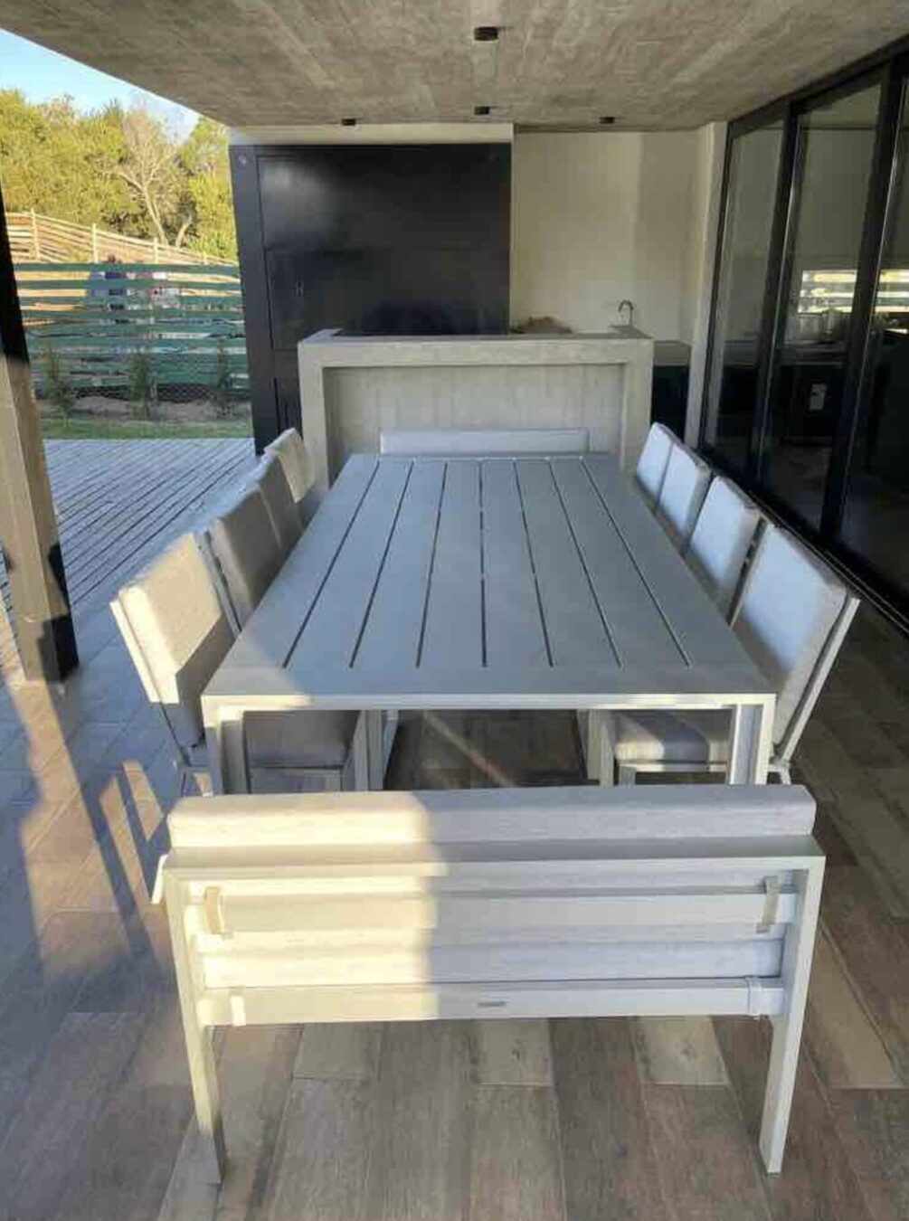 Galería con Parrilla y mesa Aluminio para 12 pax Deck y Pileta