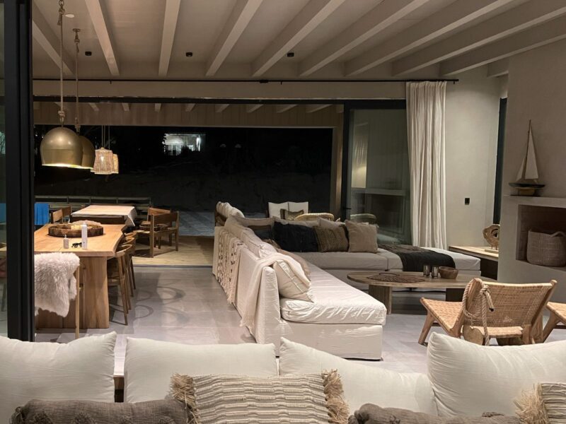 2 galerías, una en el frente con costa al mar, Orta hacia el jardín con parrilla y hogar. Y un patio interno en planta baja
