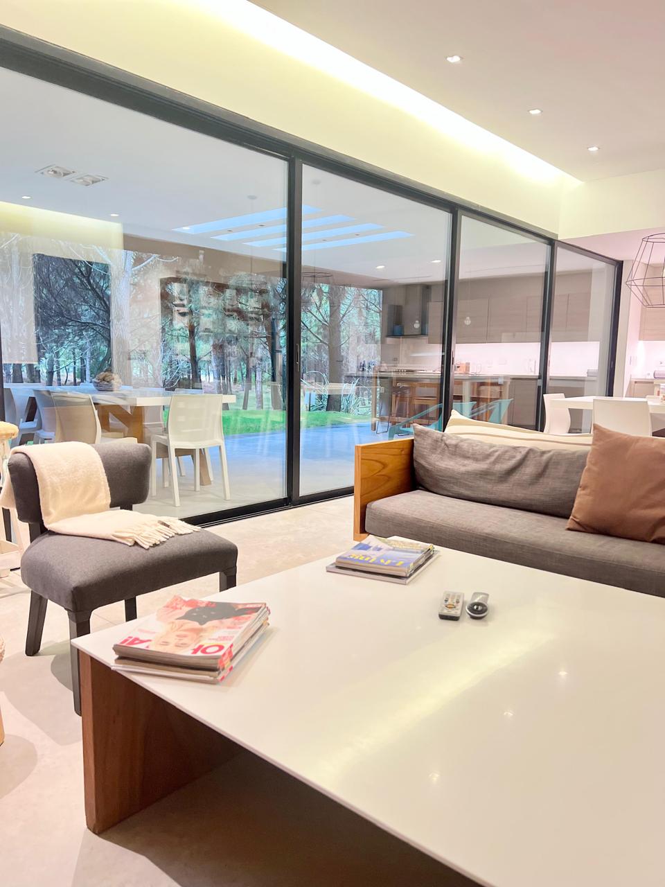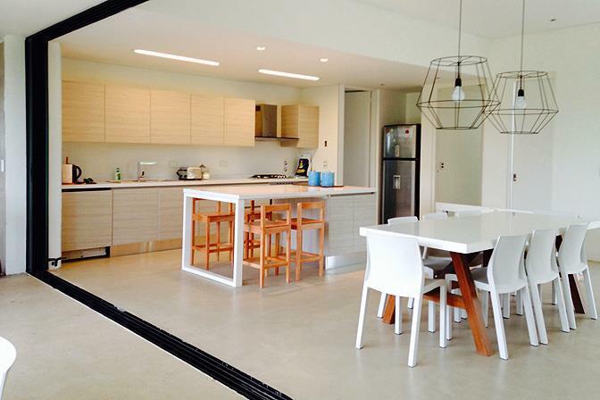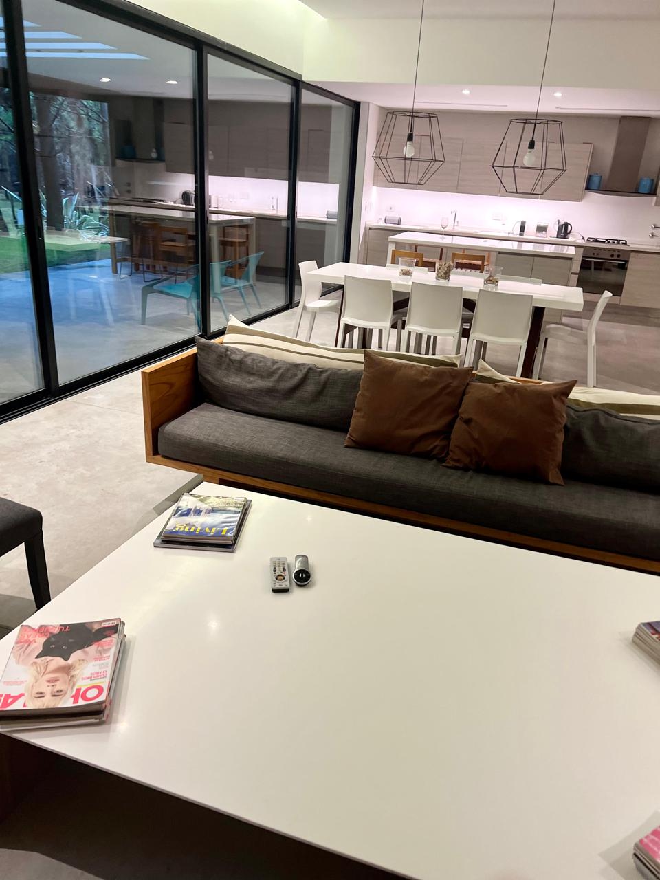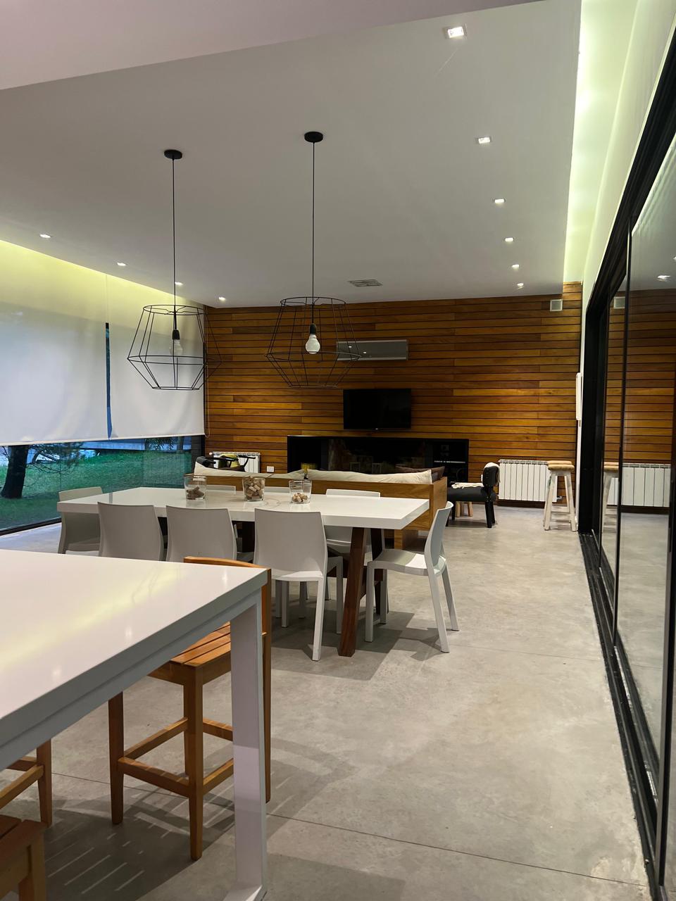 Moderna, con un espectacular bosque de fondo, capacidad para 8 o 9 personas.