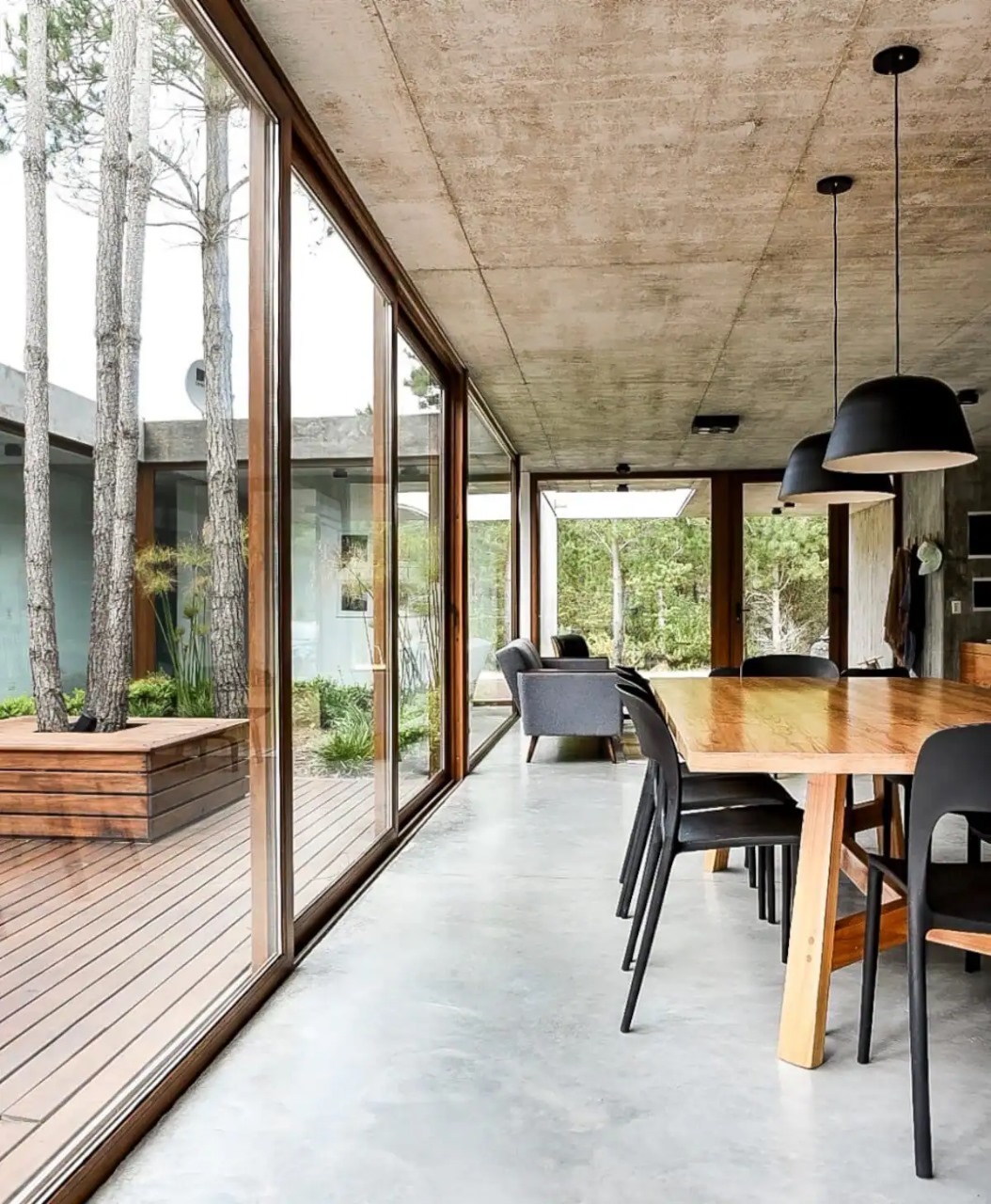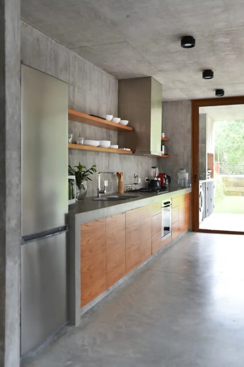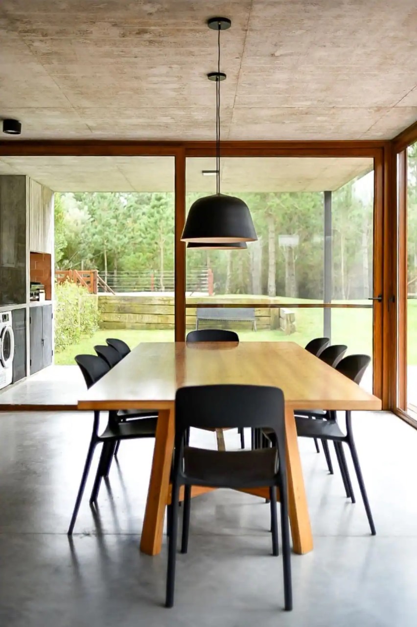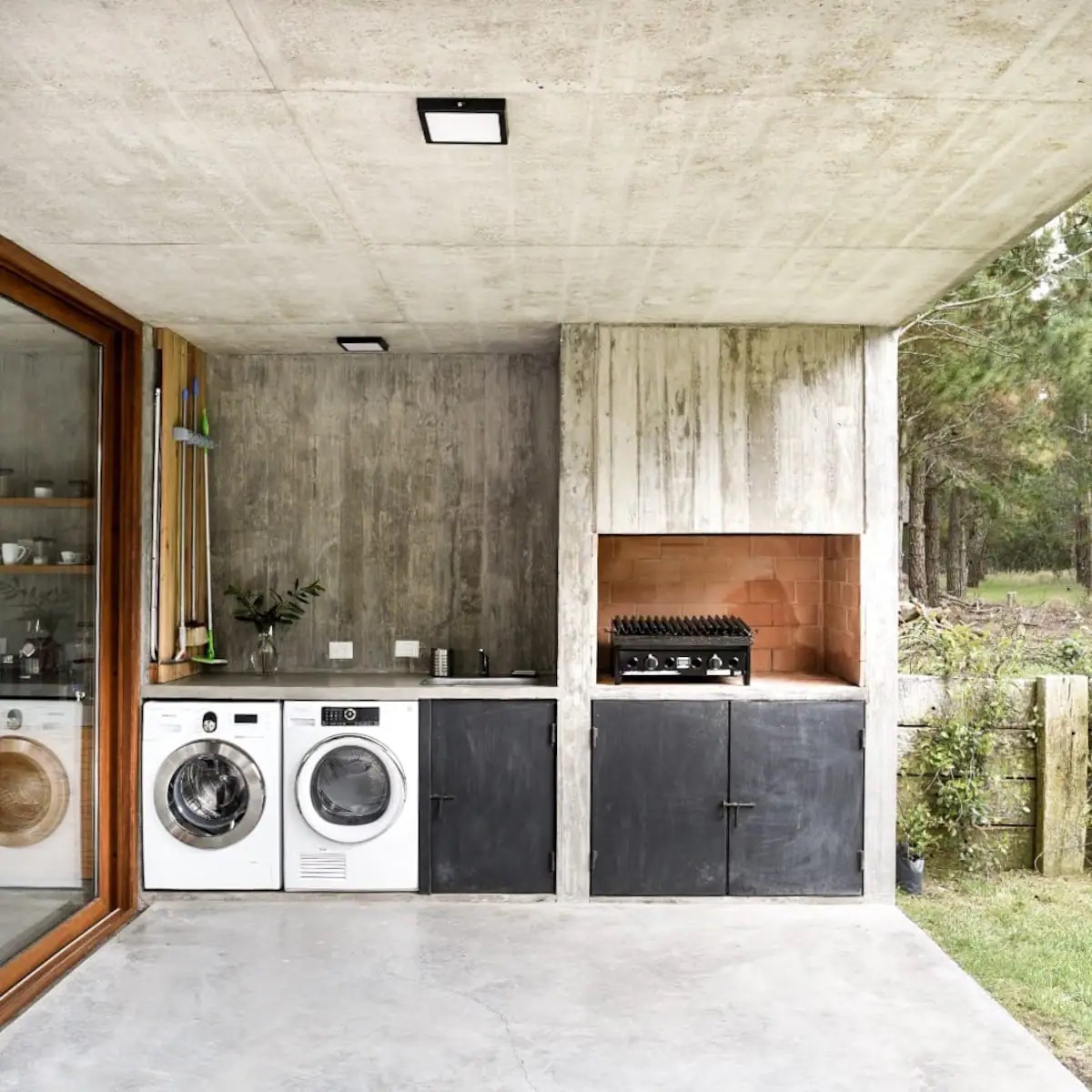-Sector Parrilla en galería con mesa con bancos de madera en petiribí
