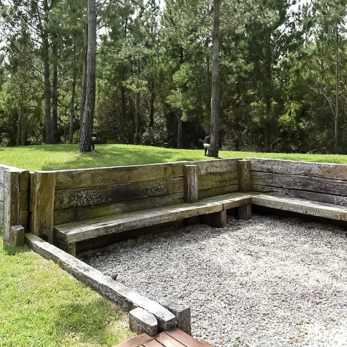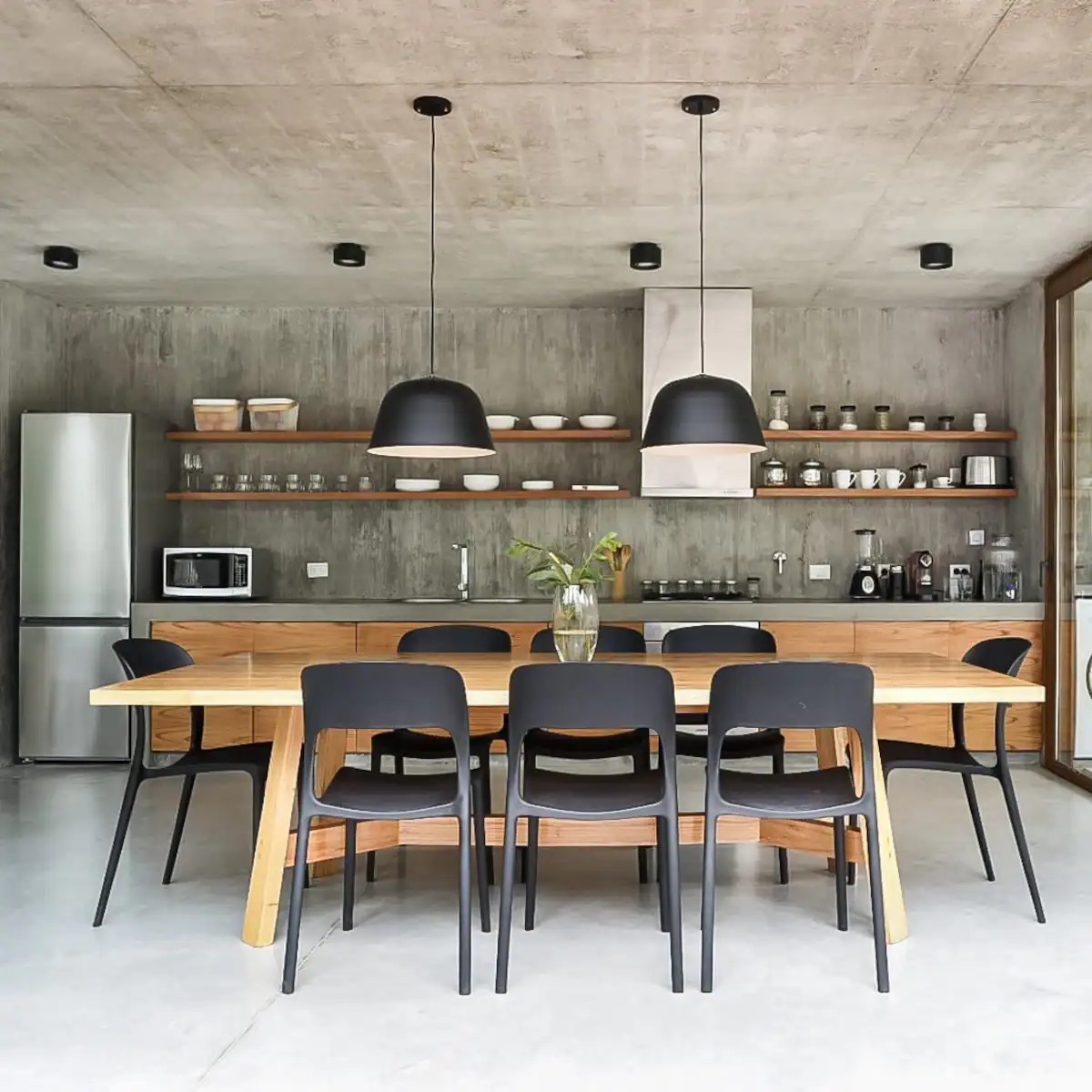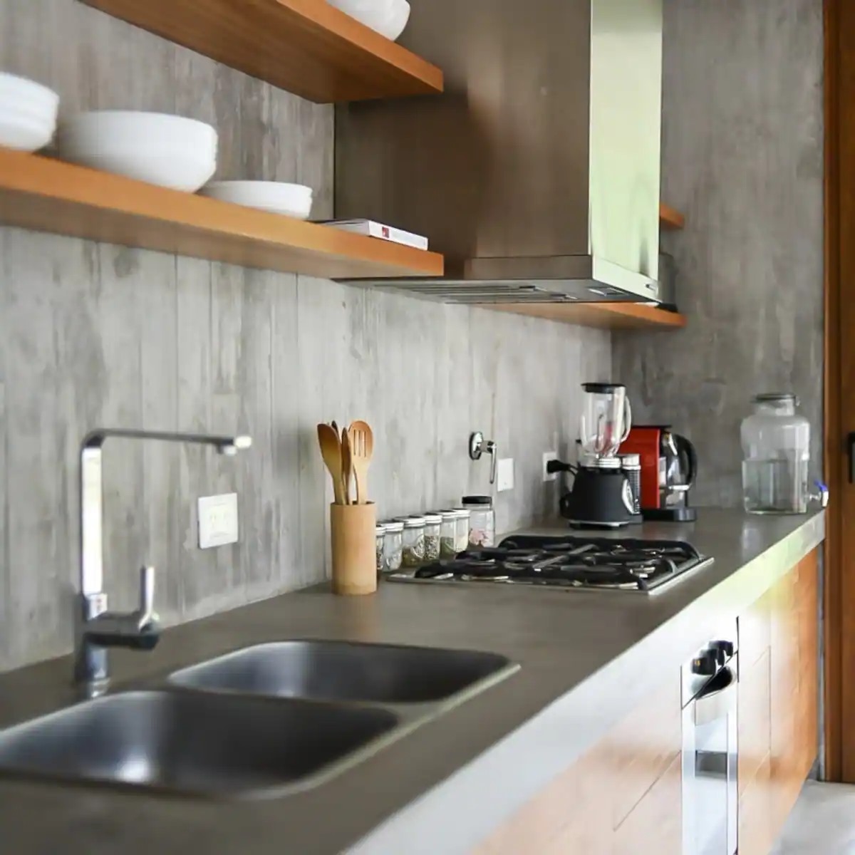 -Sector Parrilla en galería con mesa con bancos de madera en petiribí