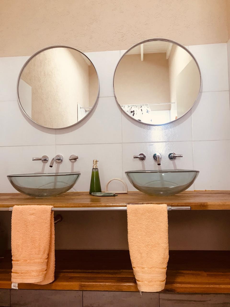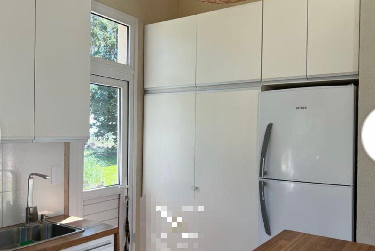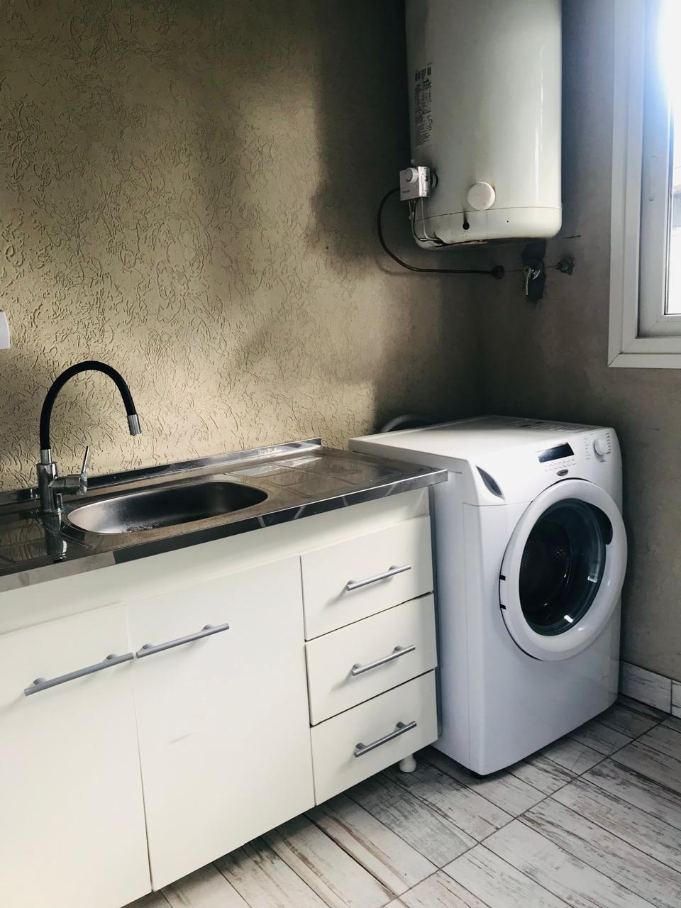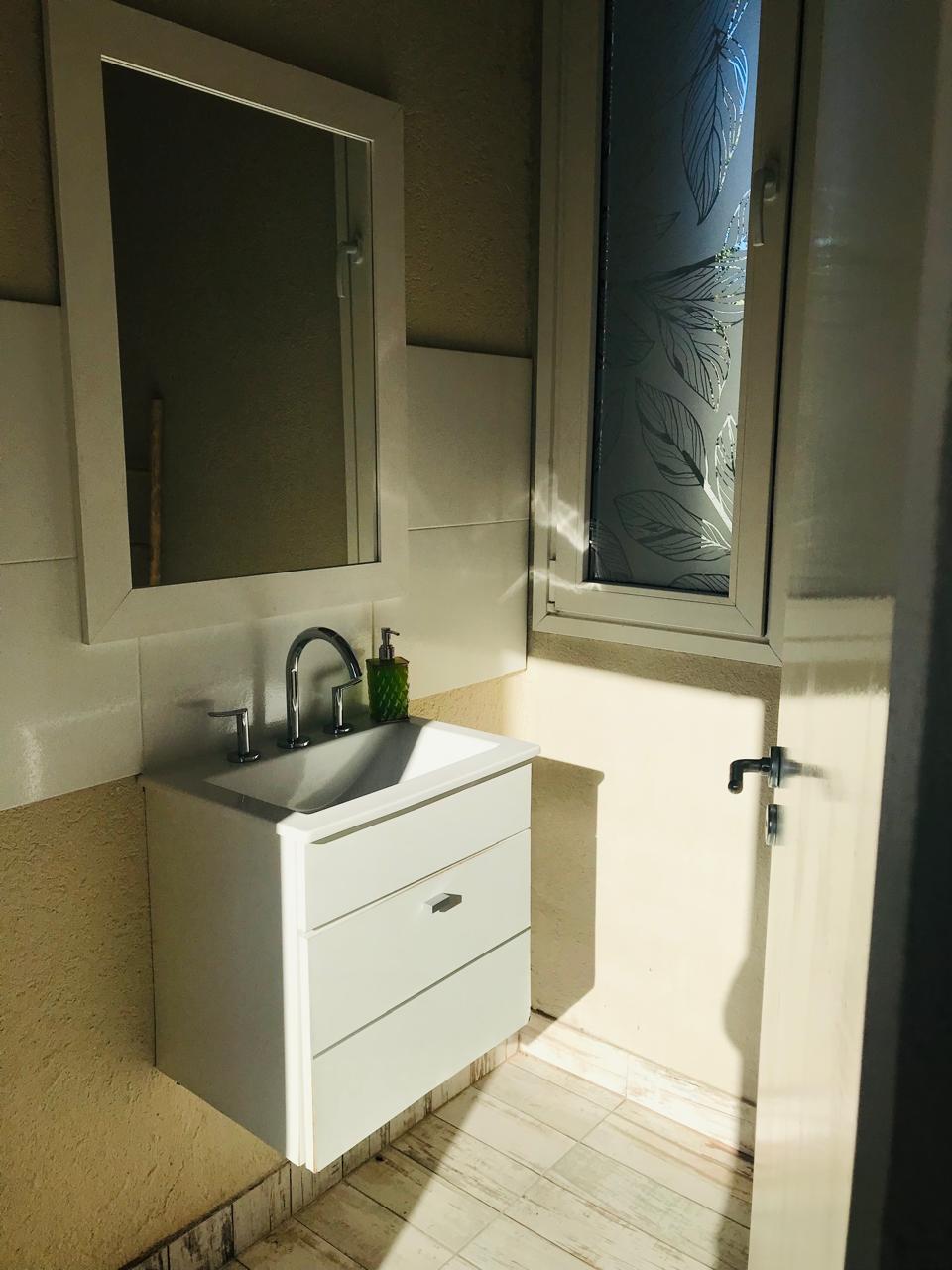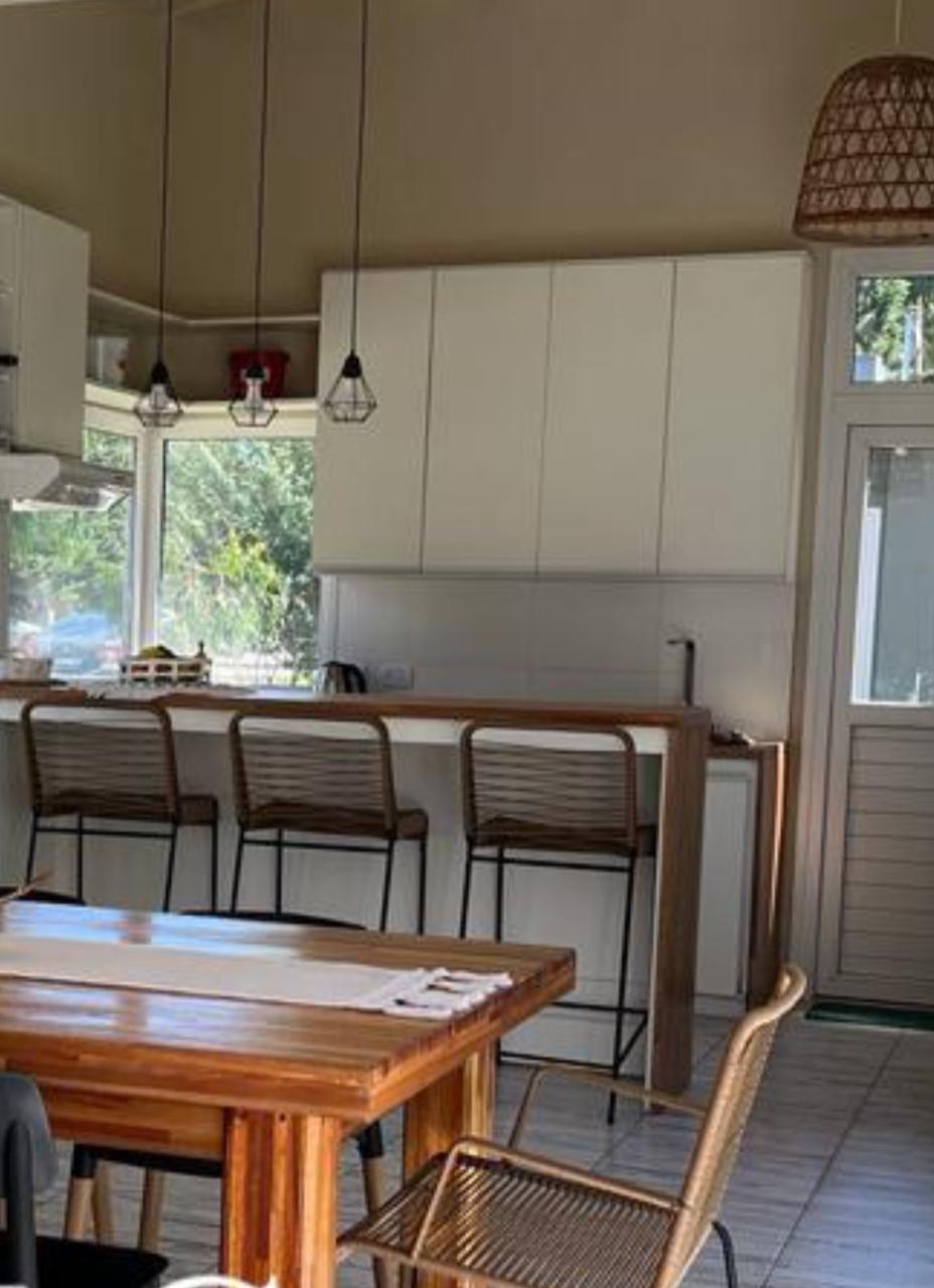 Cocina a gas, equipada con cafetera, tostadora, multiprocesadora, pava eléctrica microondas, heladera con freezer.