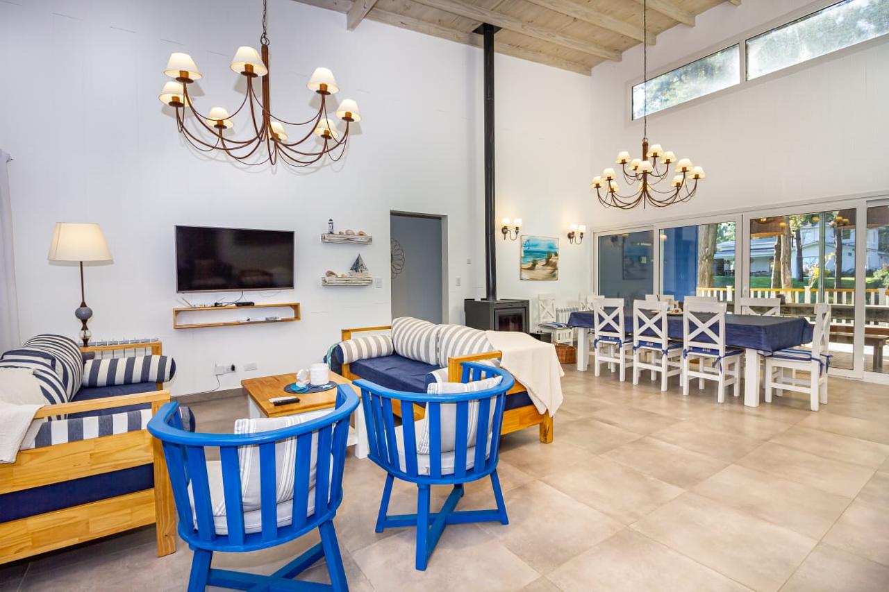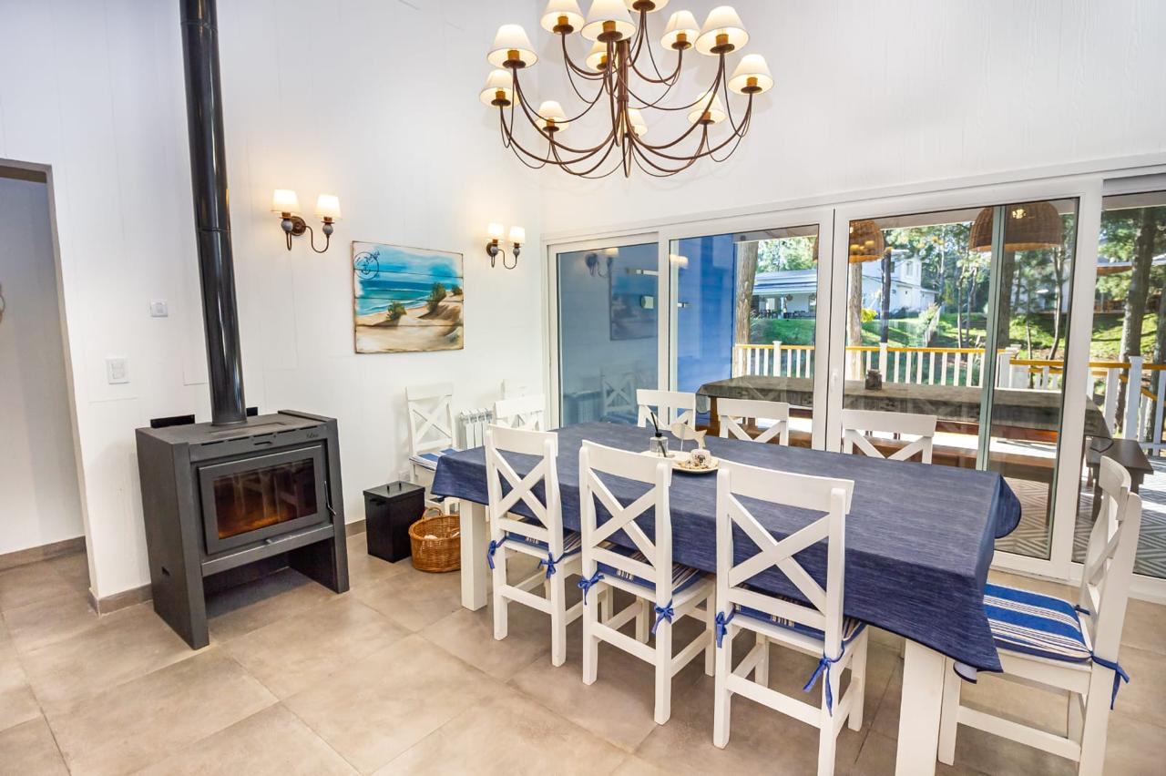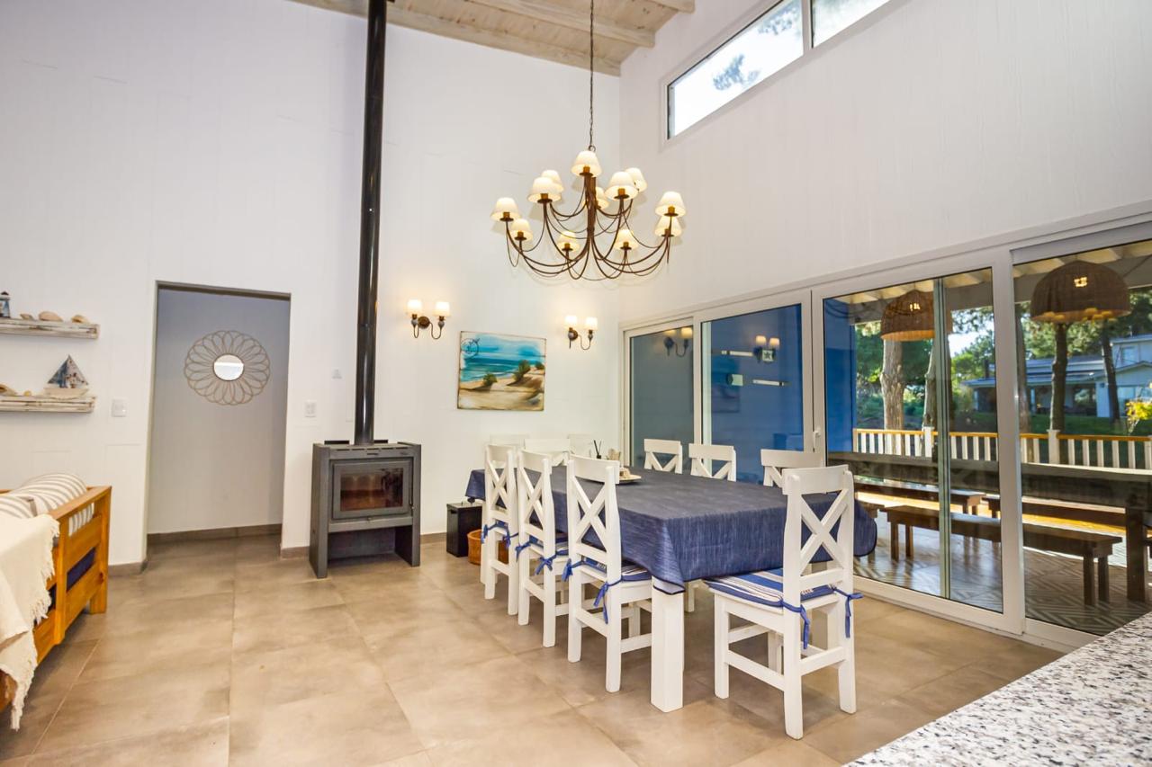 Ingresamos a un amplio living comedor, con techos de doble altura y grandes ventanales. Este espacio cuenta con TV Smart 50′ con direct TV y una salamandra de gran porte.