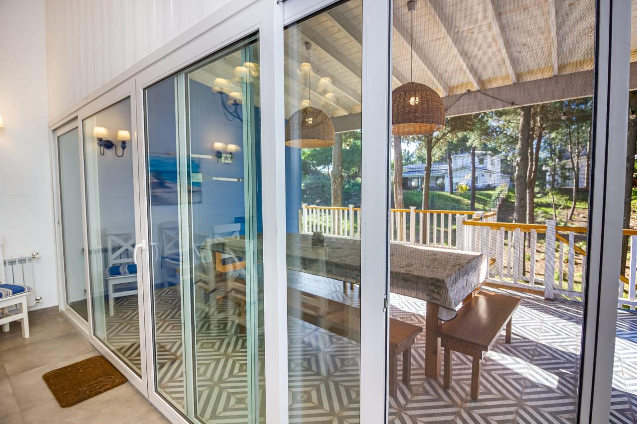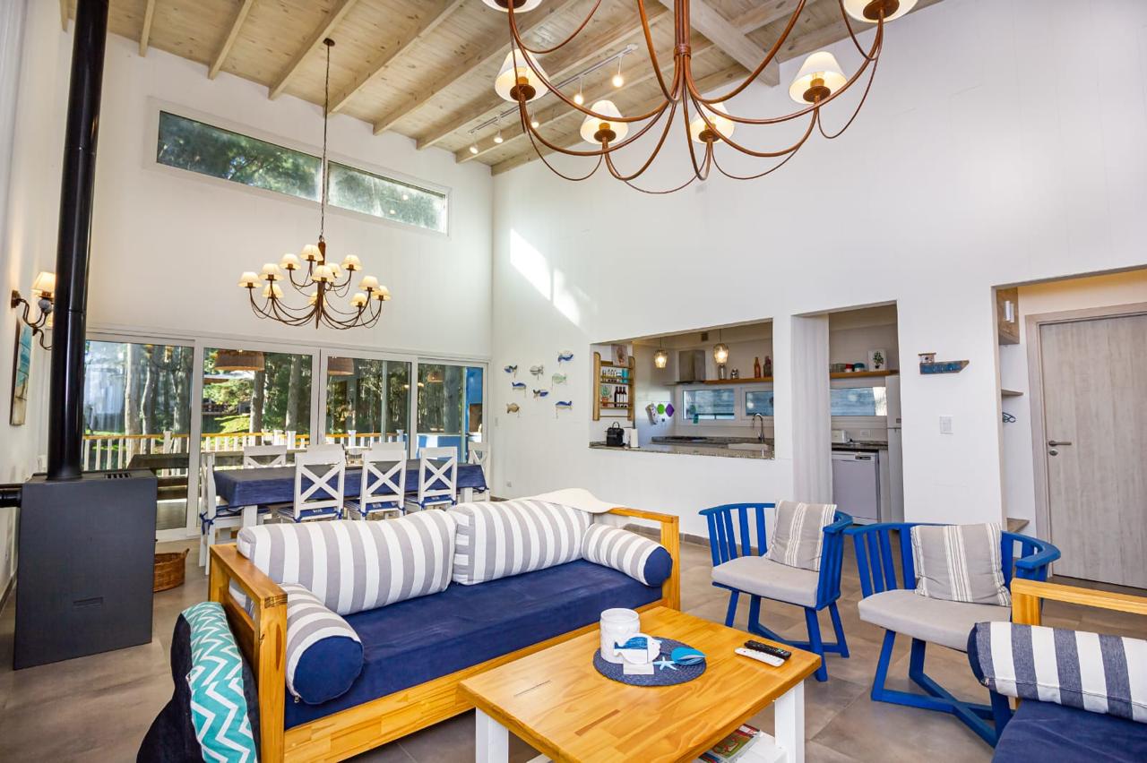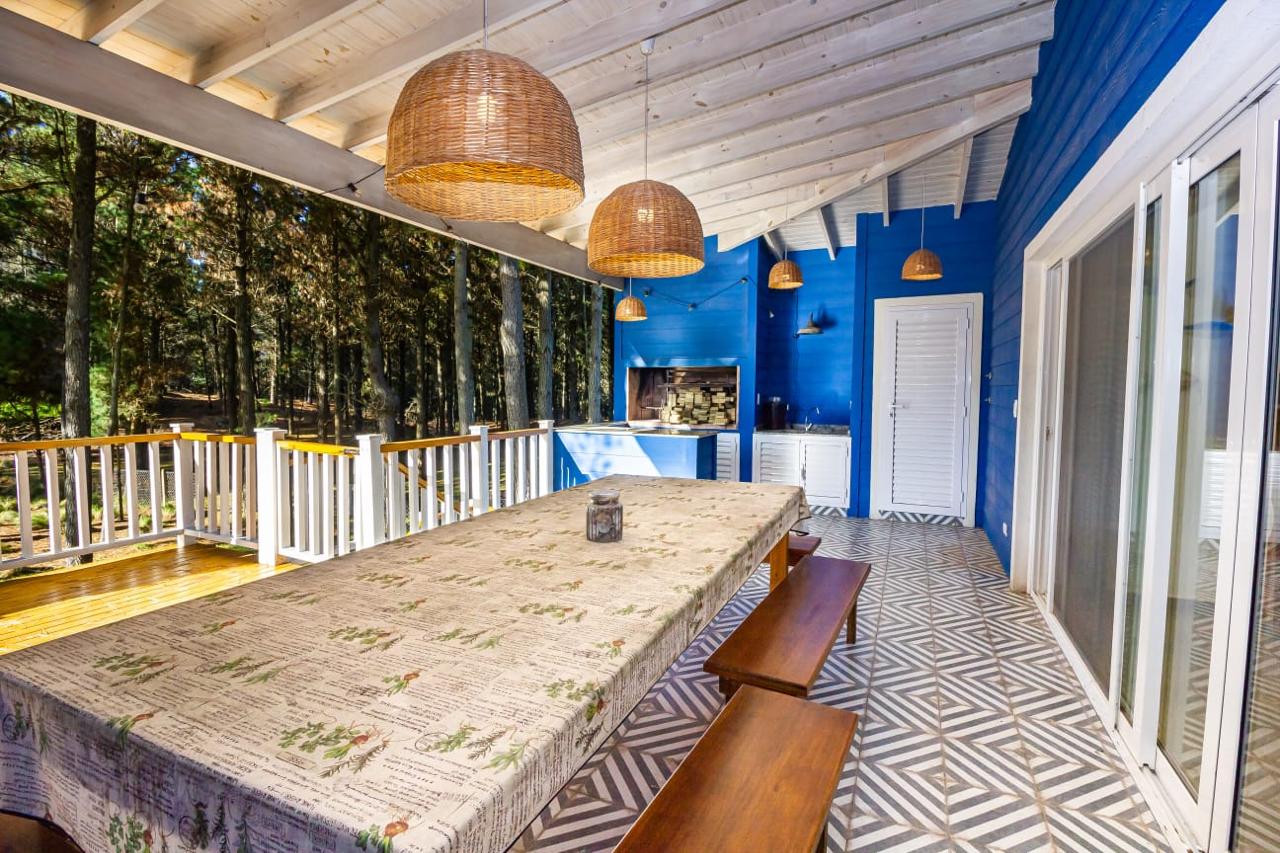 Ingresamos a un amplio living comedor, con techos de doble altura y grandes ventanales. Este espacio cuenta con TV Smart 50′ con direct TV y una salamandra de gran porte.