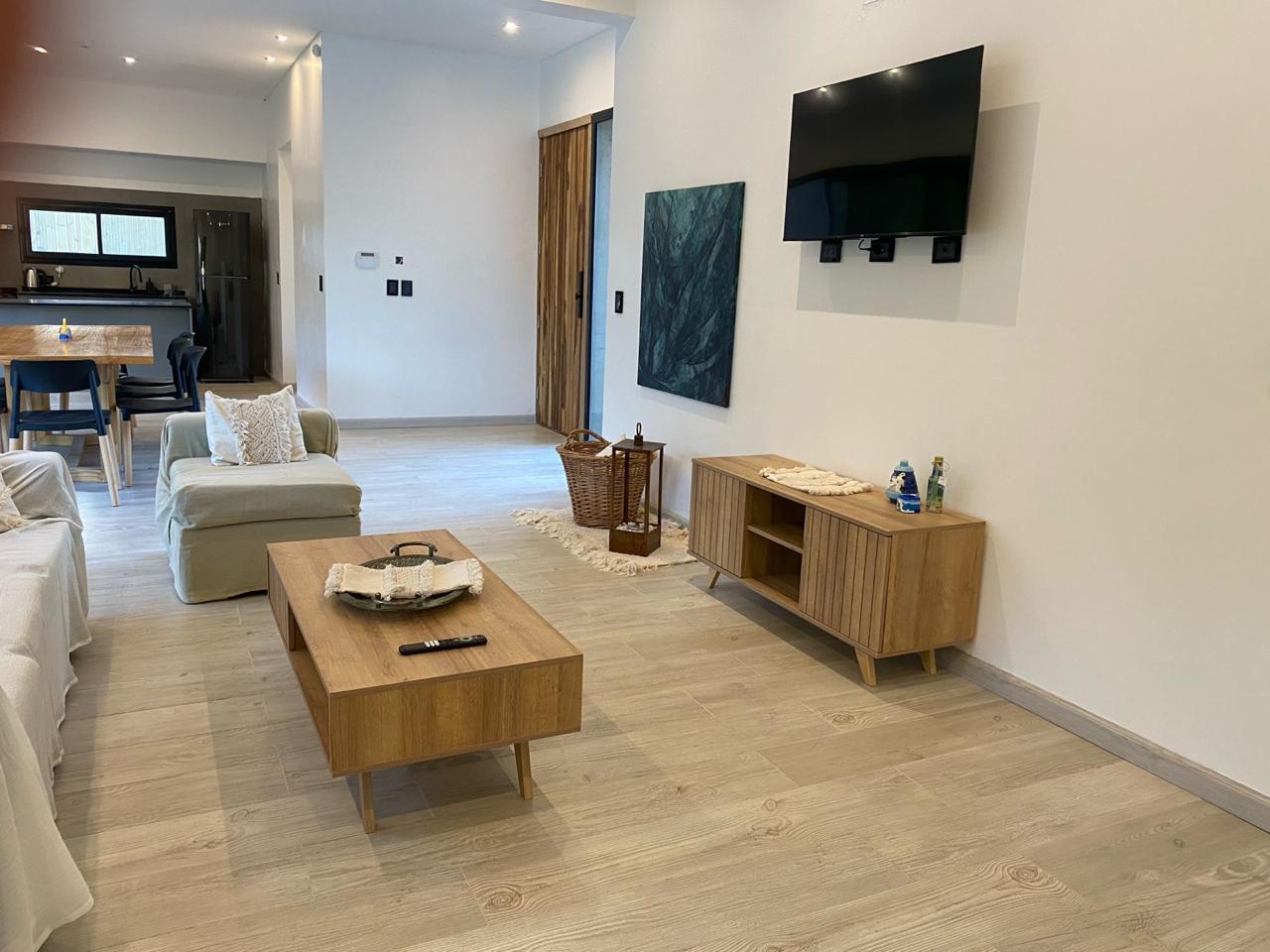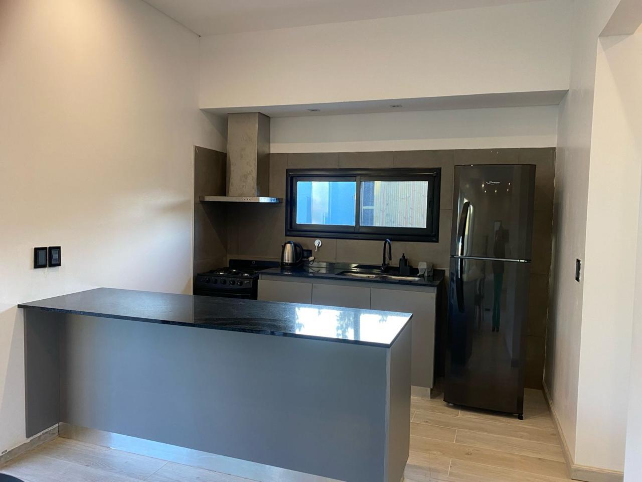 Importante living comedor, cocina con barra y gran mesada. Lavadero con lavarropas y baño con ducha de servicios.