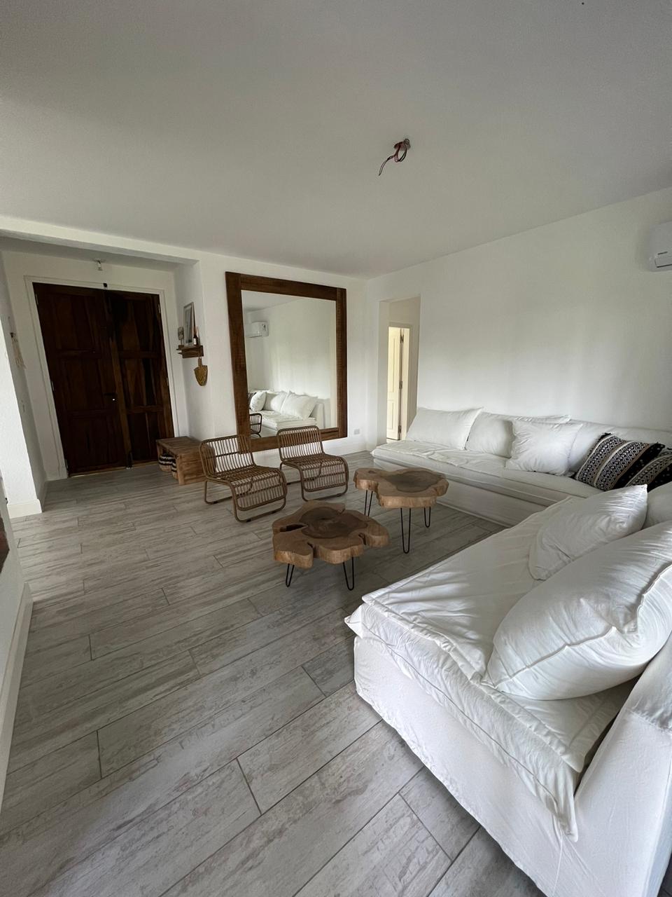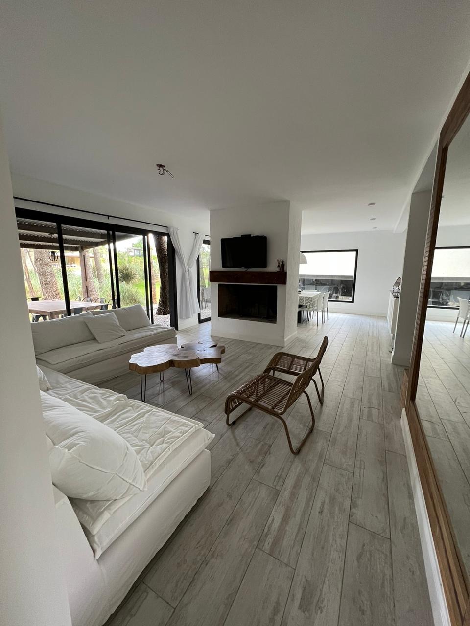 Living, comedor, cocina abierta.