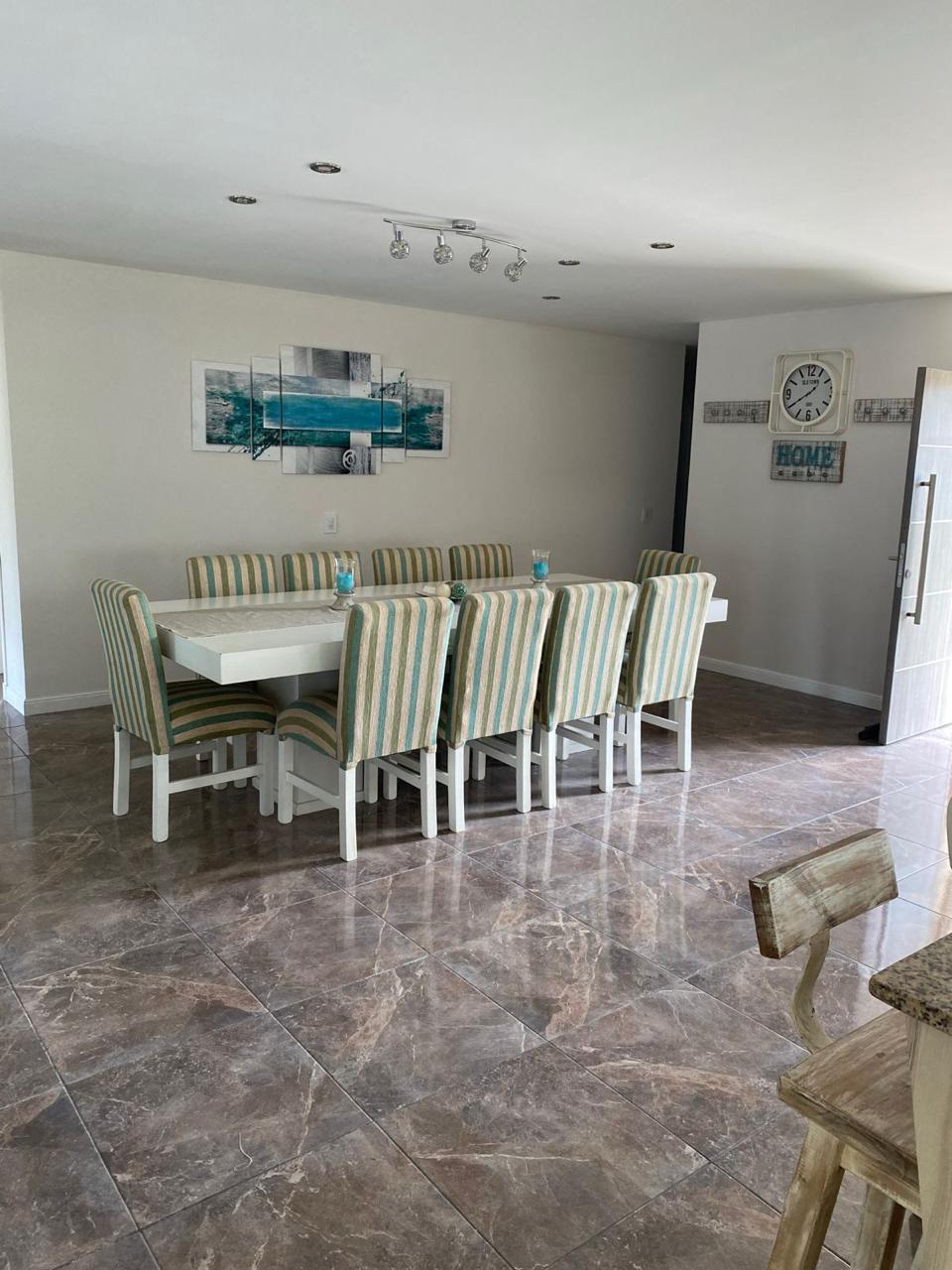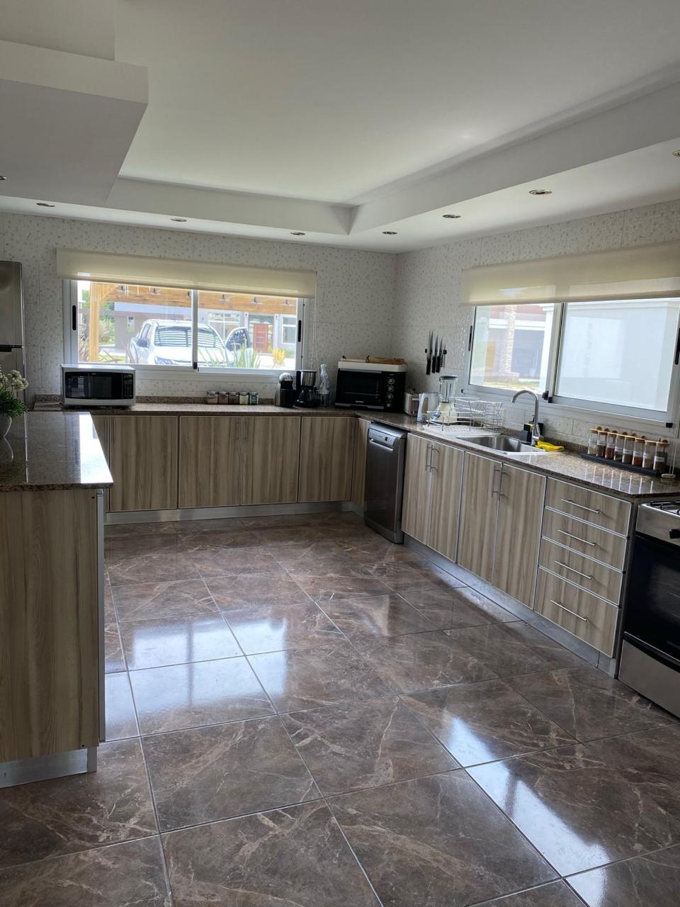 Living con SmartTV y comedor integrados a amplia cocina con isla. Equipada con heladera con freezer, lavavajillas, microondas, horno eléctrico, licuadora, tostadora, pava eléctrica, plancha, cafetera de filtro y de cápsulas, parrilla eléctrica multichef, vajilla completa para 12 personas.