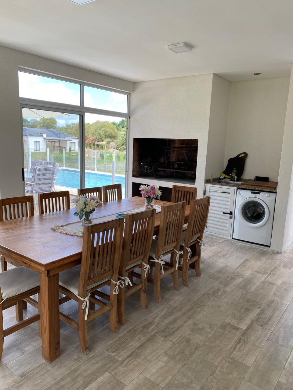 Quincho cerrado con parrilla, mesada y pileta, lavarropas automático, mesa y vajilla completa para 12 personas