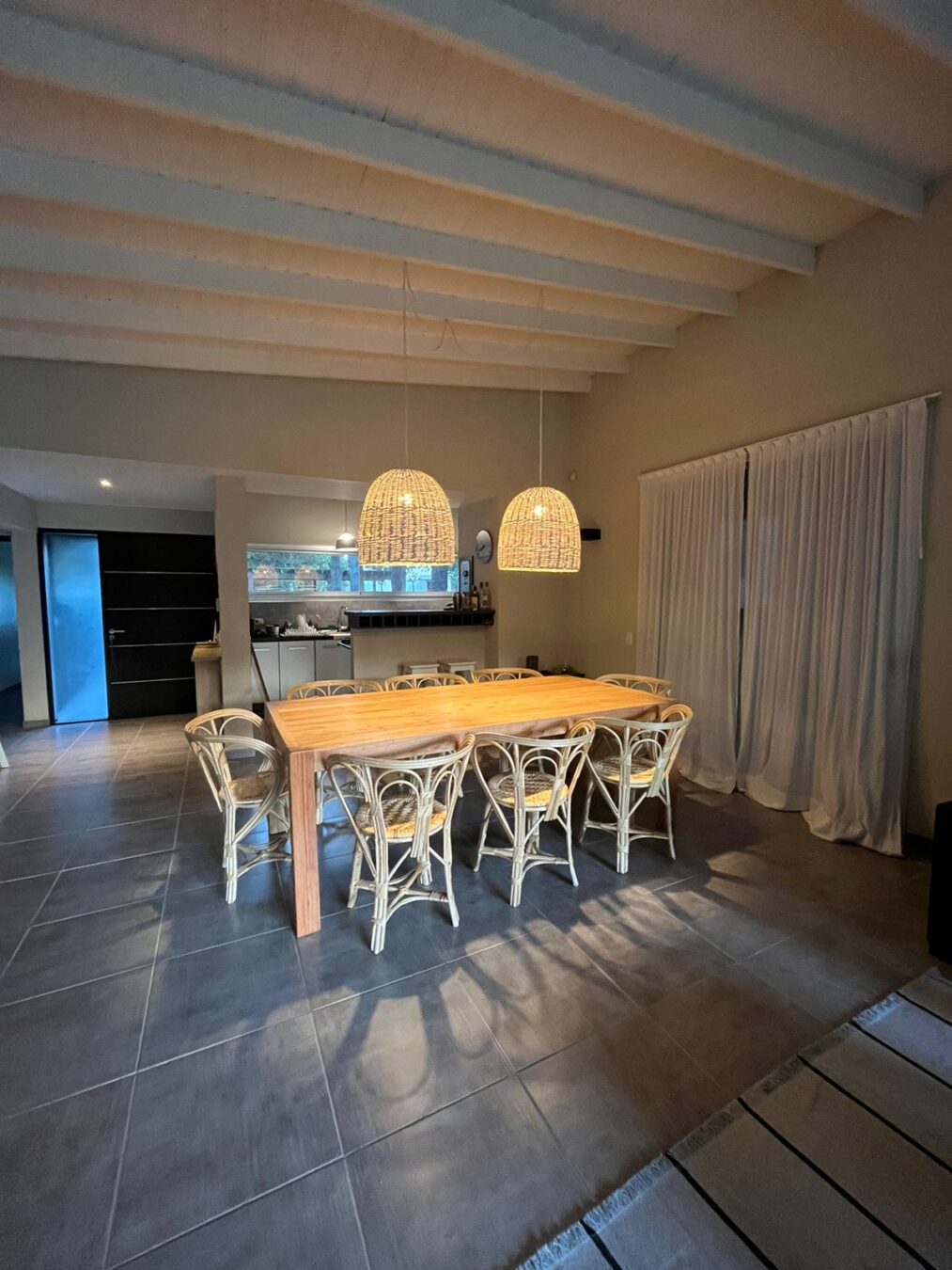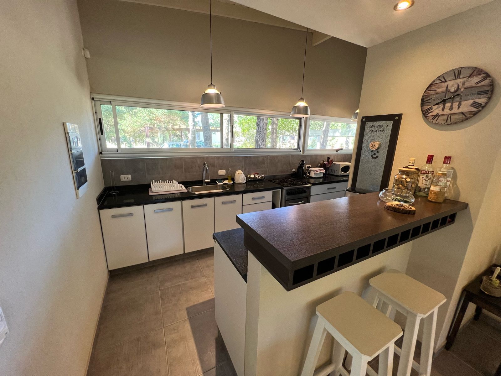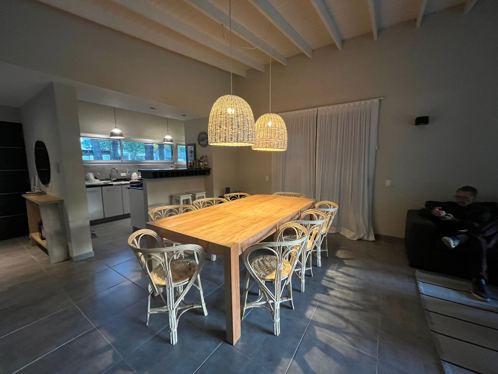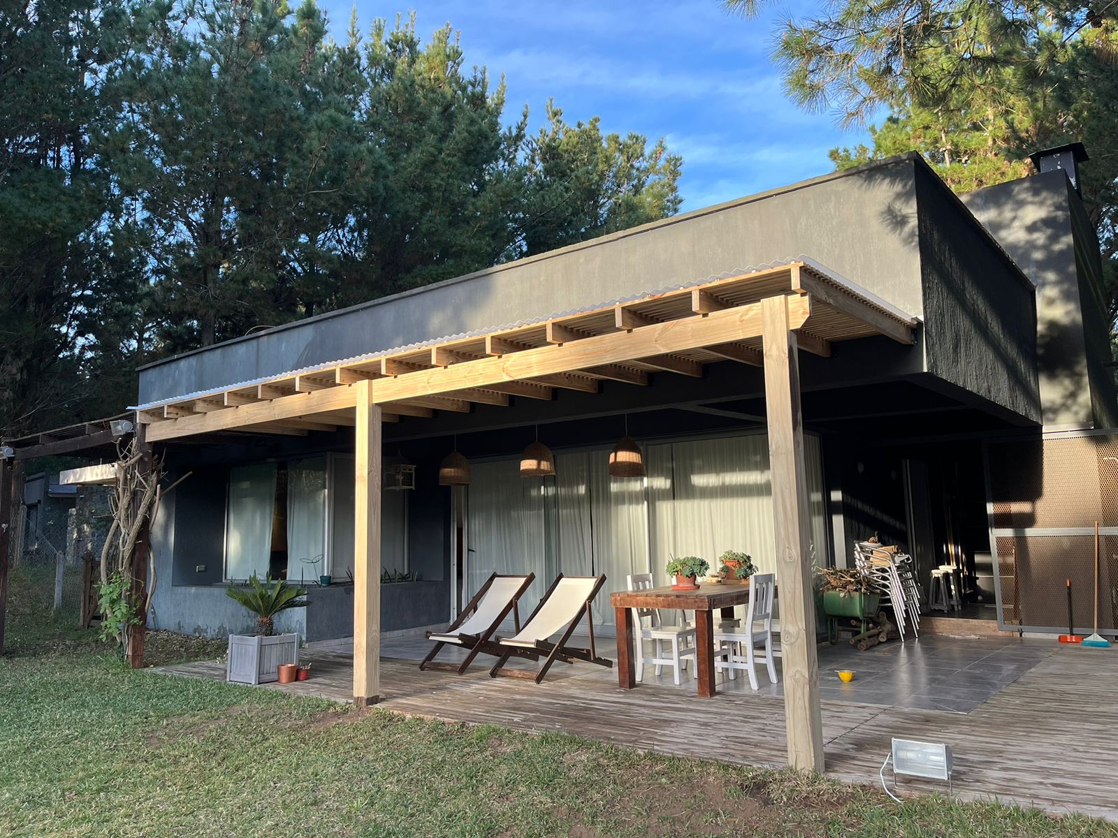 Cuenta con 3 dormitorios, uno de ellos en suite. Cocina con barra y living comedor grande. La galería tiene una mesa de 2 mts., parrilla y lavadero. Tiene espacio para guardar un cuatri o moto, 2 cocheras con pérgola, más una cochera descubierta. Losa radiante, estufa de hierro Tromen. Revestimientos tarquini por dentro y por fuera.