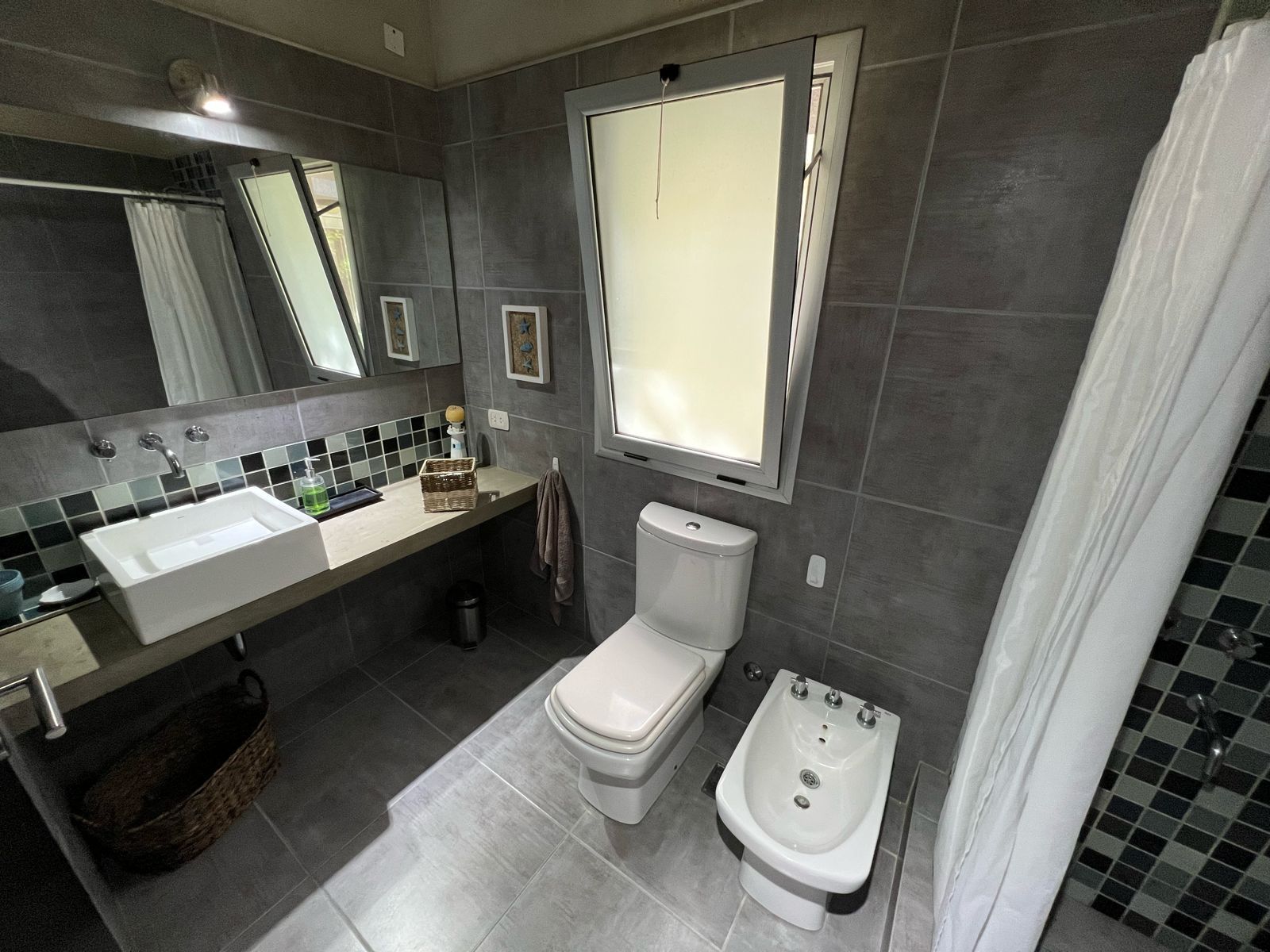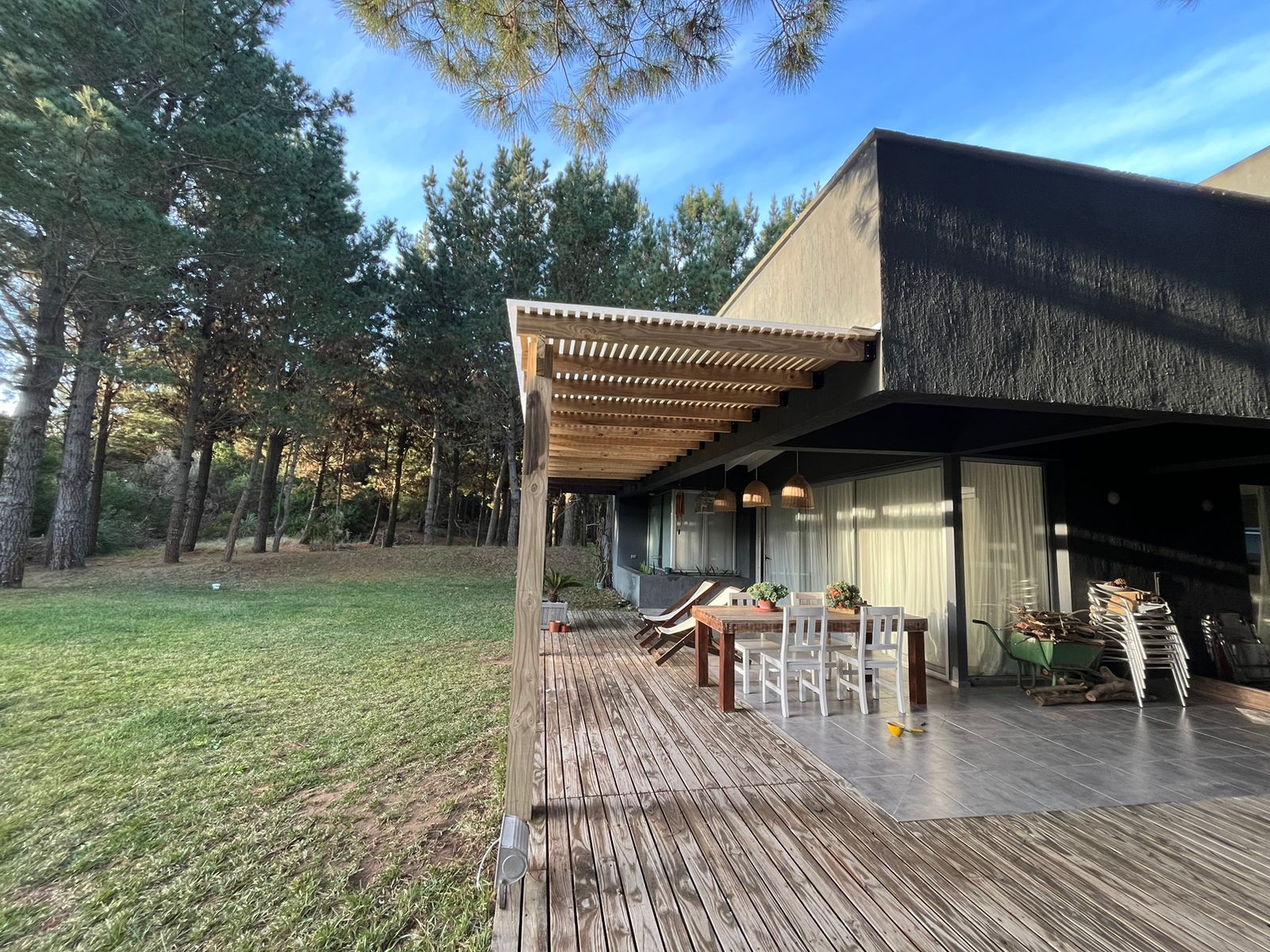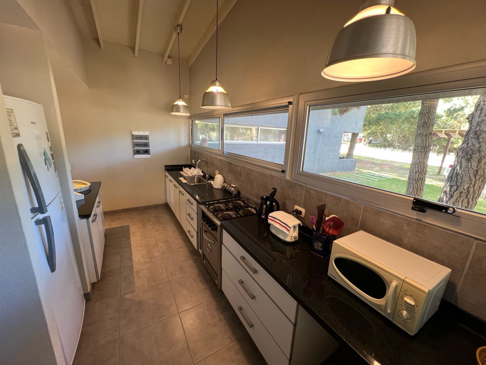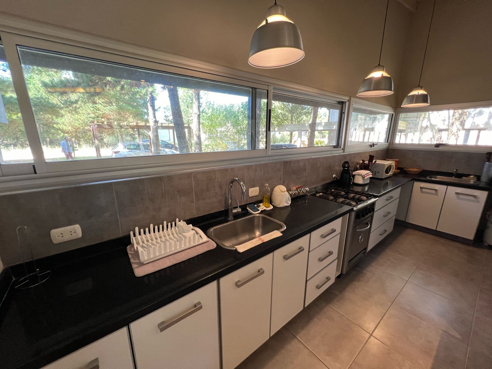 Cuenta con 3 dormitorios, uno de ellos en suite. Cocina con barra y living comedor grande. La galería tiene una mesa de 2 mts., parrilla y lavadero. Tiene espacio para guardar un cuatri o moto, 2 cocheras con pérgola, más una cochera descubierta. Losa radiante, estufa de hierro Tromen. Revestimientos tarquini por dentro y por fuera.