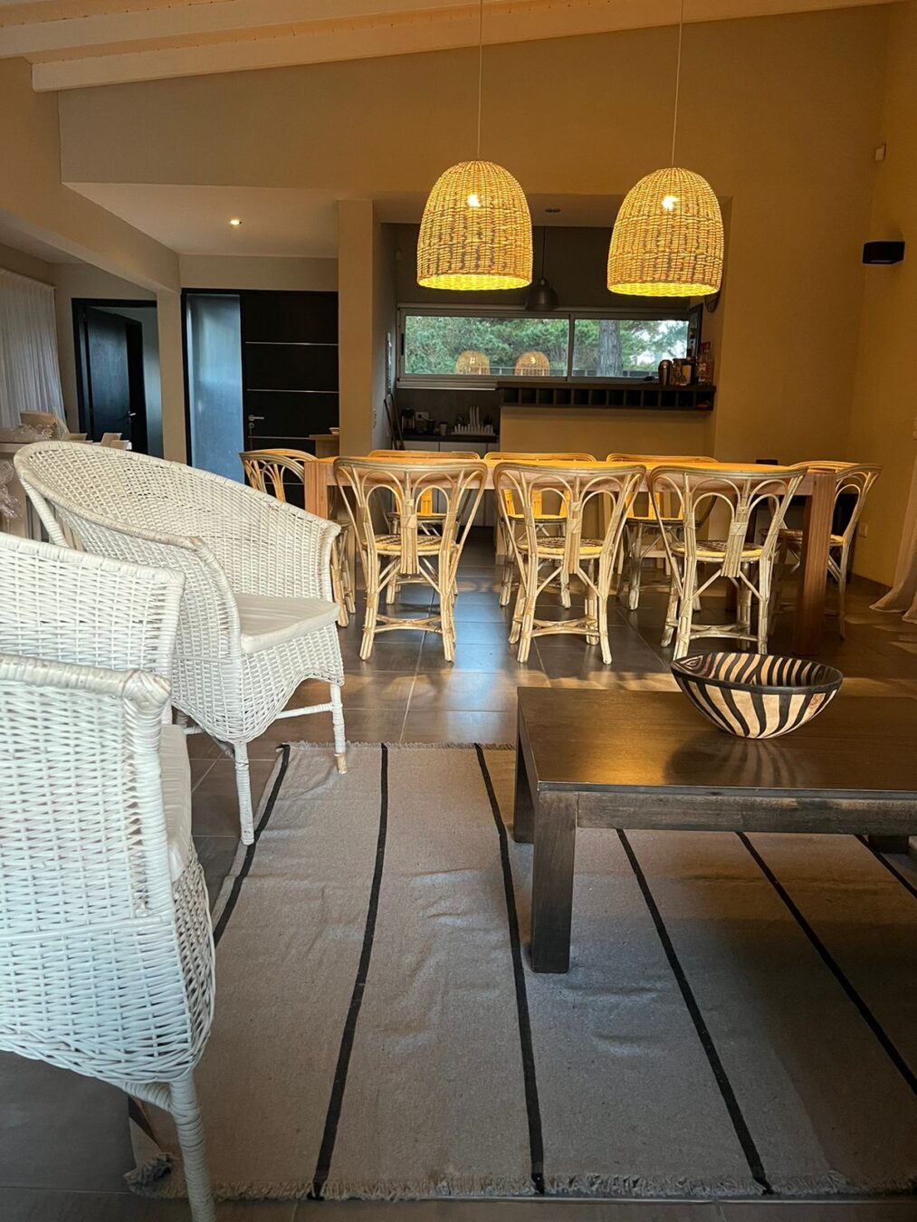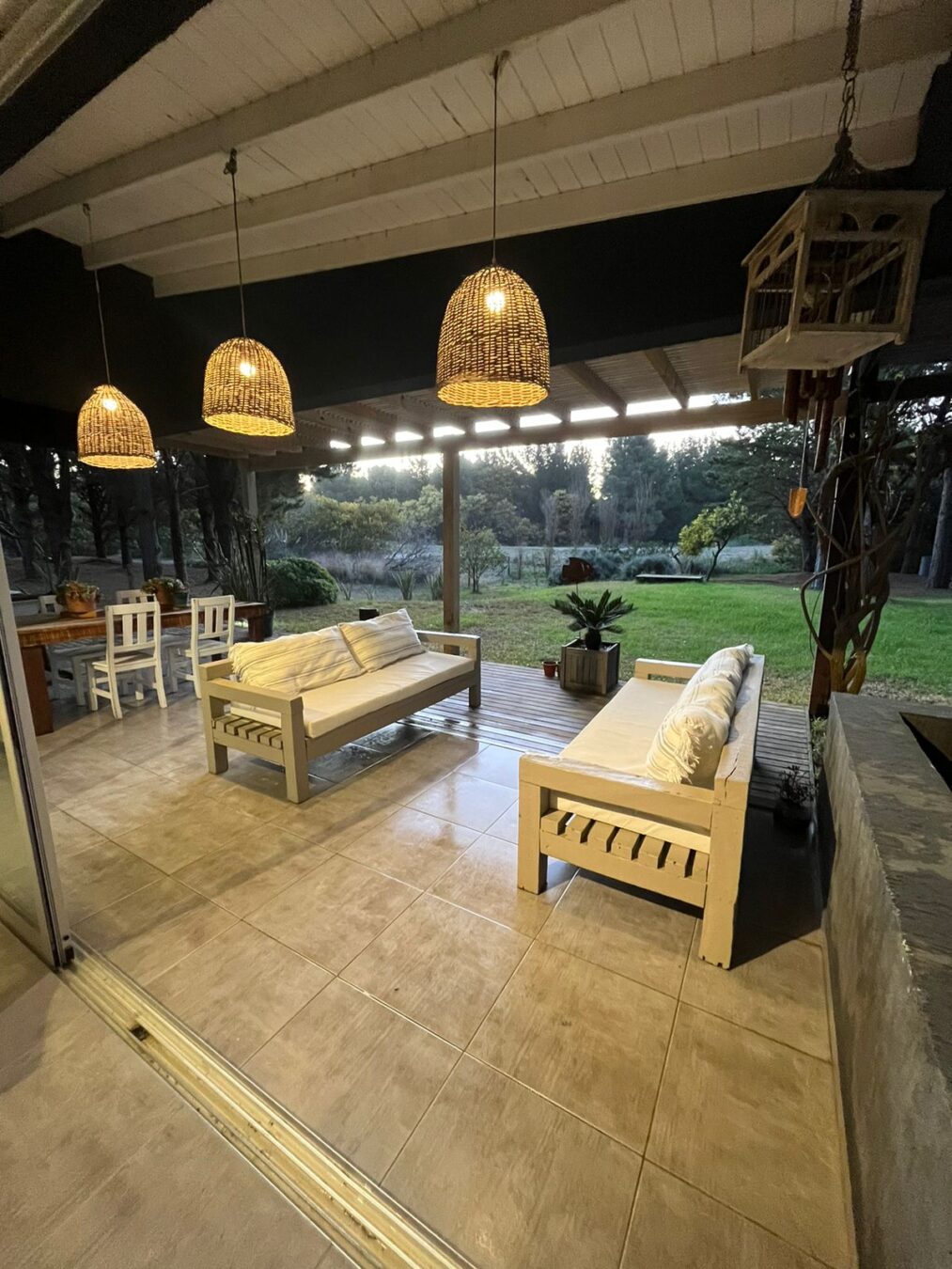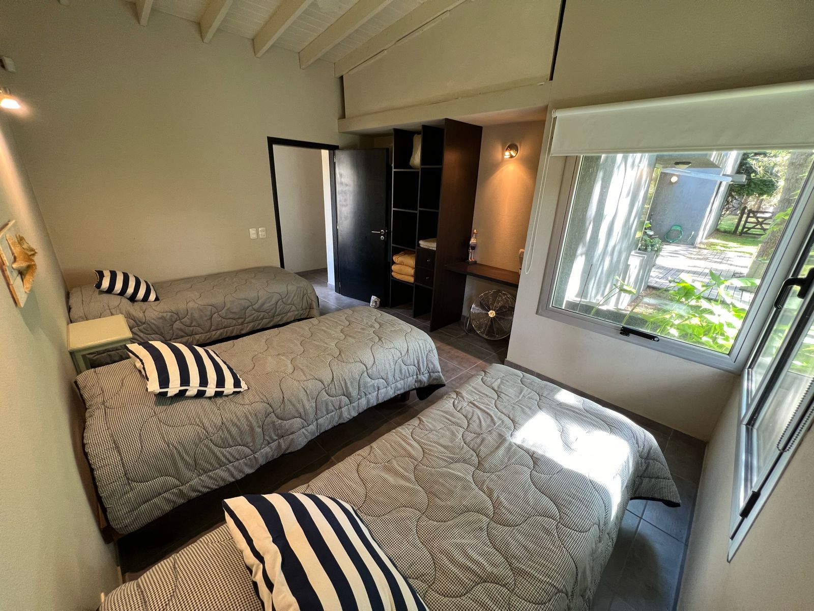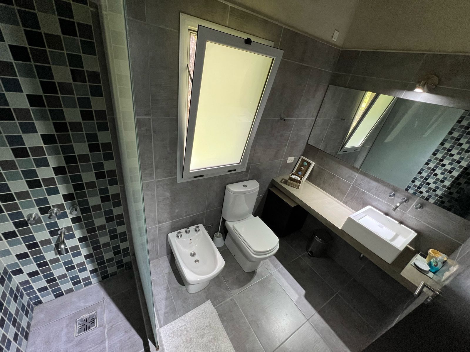 Cuenta con 3 dormitorios, uno de ellos en suite. Cocina con barra y living comedor grande. La galería tiene una mesa de 2 mts., parrilla y lavadero. Tiene espacio para guardar un cuatri o moto, 2 cocheras con pérgola, más una cochera descubierta. Losa radiante, estufa de hierro Tromen. Revestimientos tarquini por dentro y por fuera.