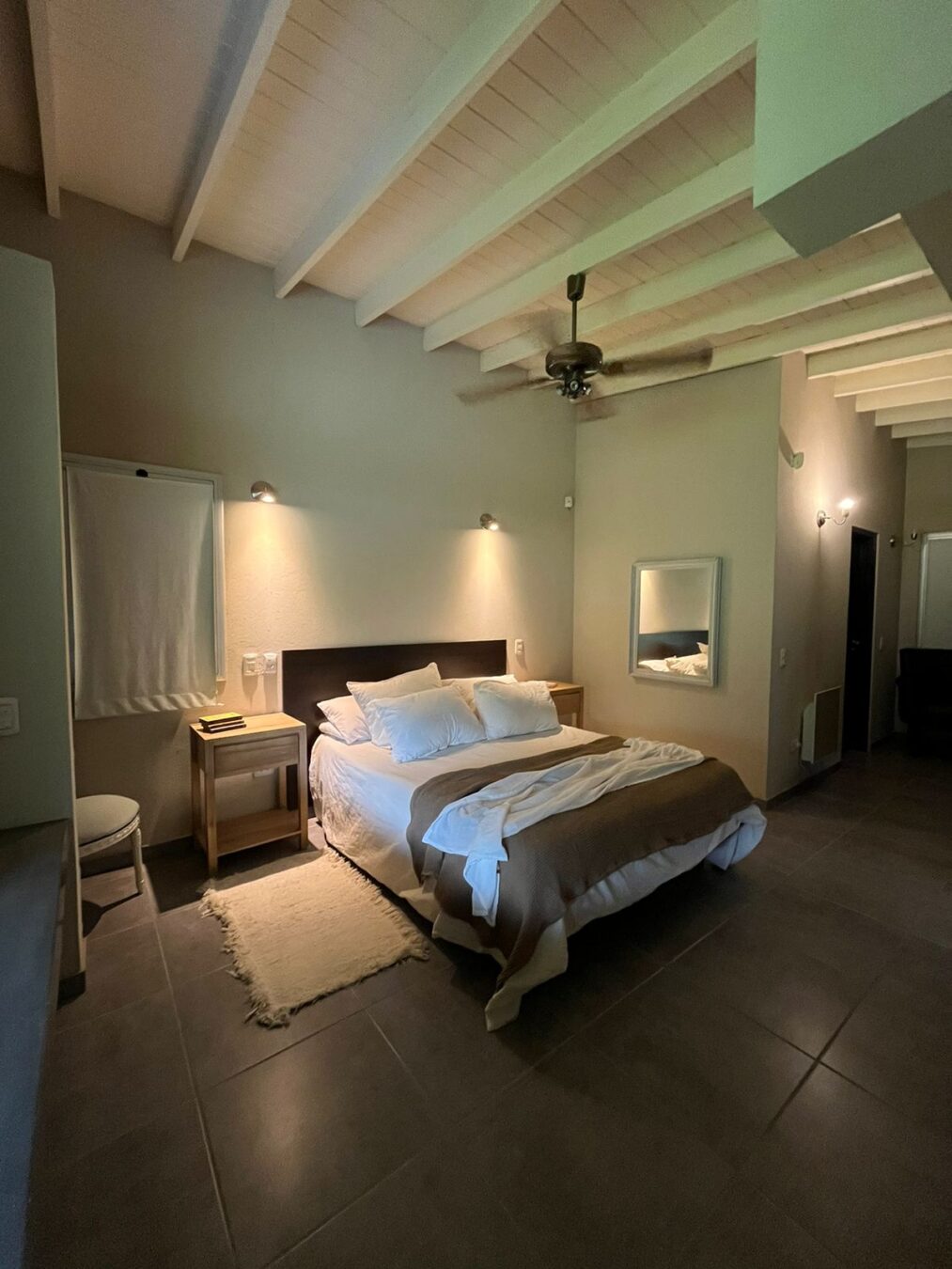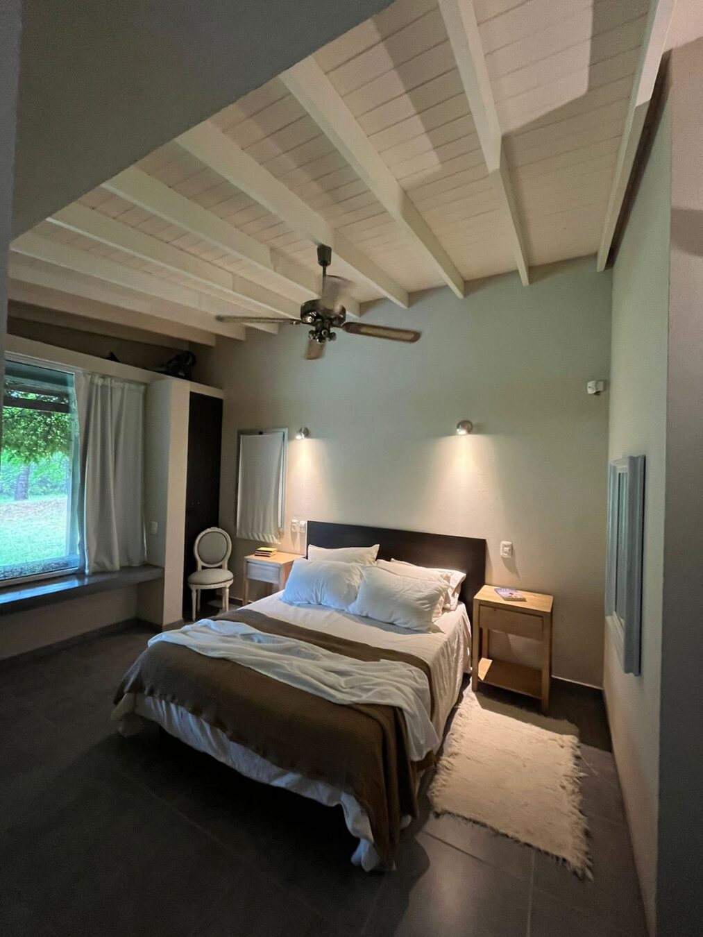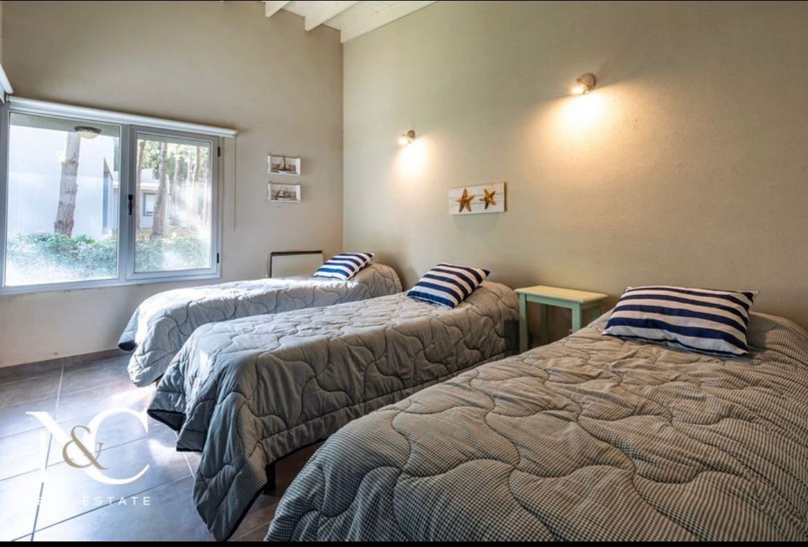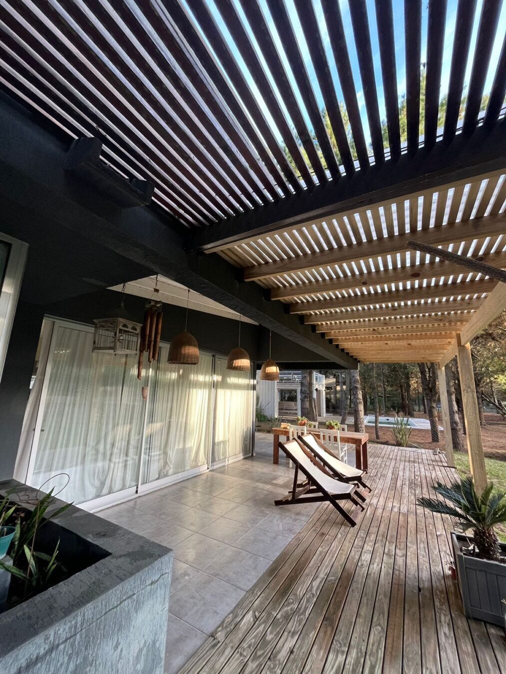 Cuenta con 3 dormitorios, uno de ellos en suite. Cocina con barra y living comedor grande. La galería tiene una mesa de 2 mts., parrilla y lavadero. Tiene espacio para guardar un cuatri o moto, 2 cocheras con pérgola, más una cochera descubierta. Losa radiante, estufa de hierro Tromen. Revestimientos tarquini por dentro y por fuera.