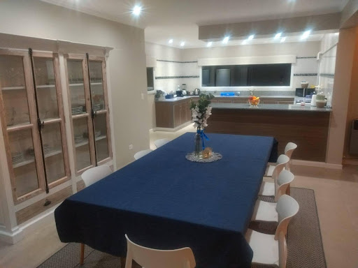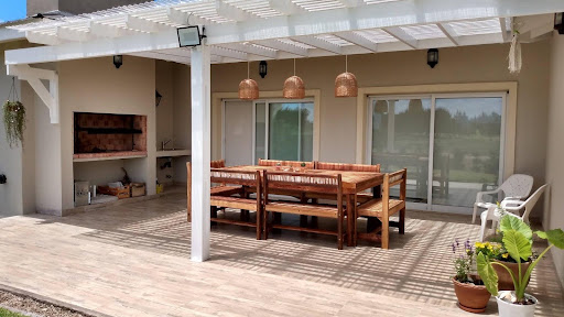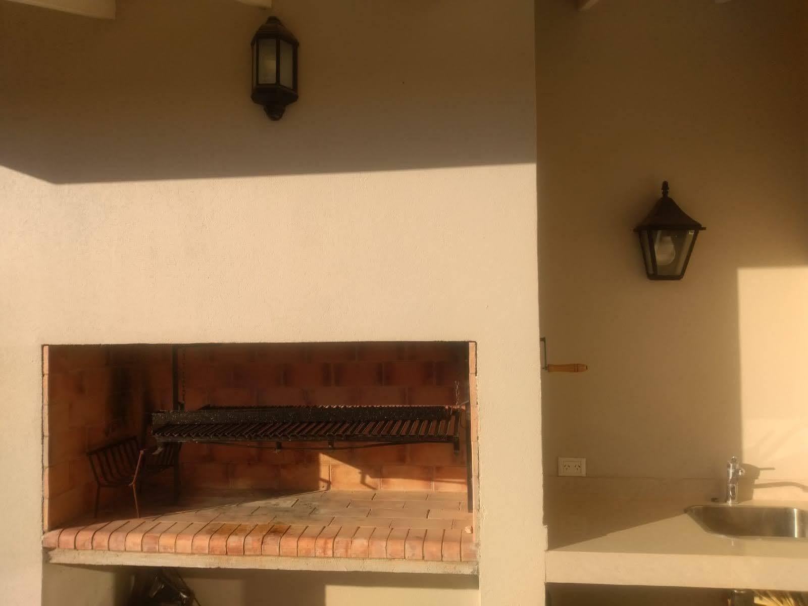 Cuenta con amplia parrilla con leñero separado,con iluminación interior y acompañada de mesada y bacha.