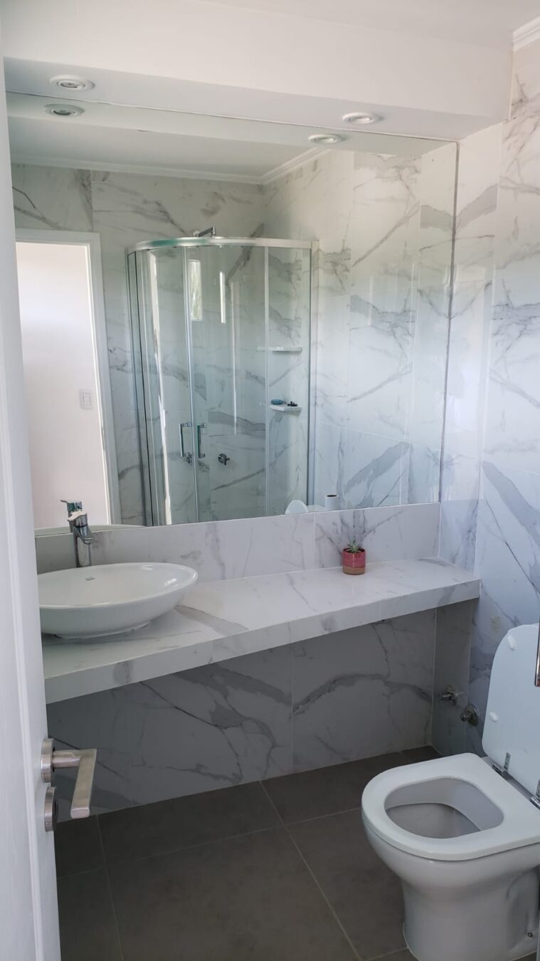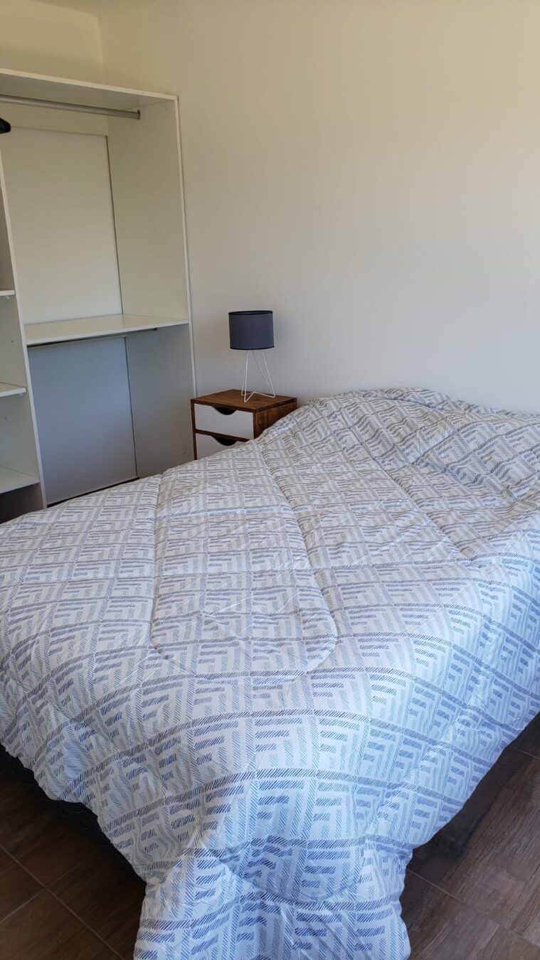 1 dormitorio con Sommier queen (1.60), con baño en suite, antebaño y vestidor. Tiene TV con Chromecast.