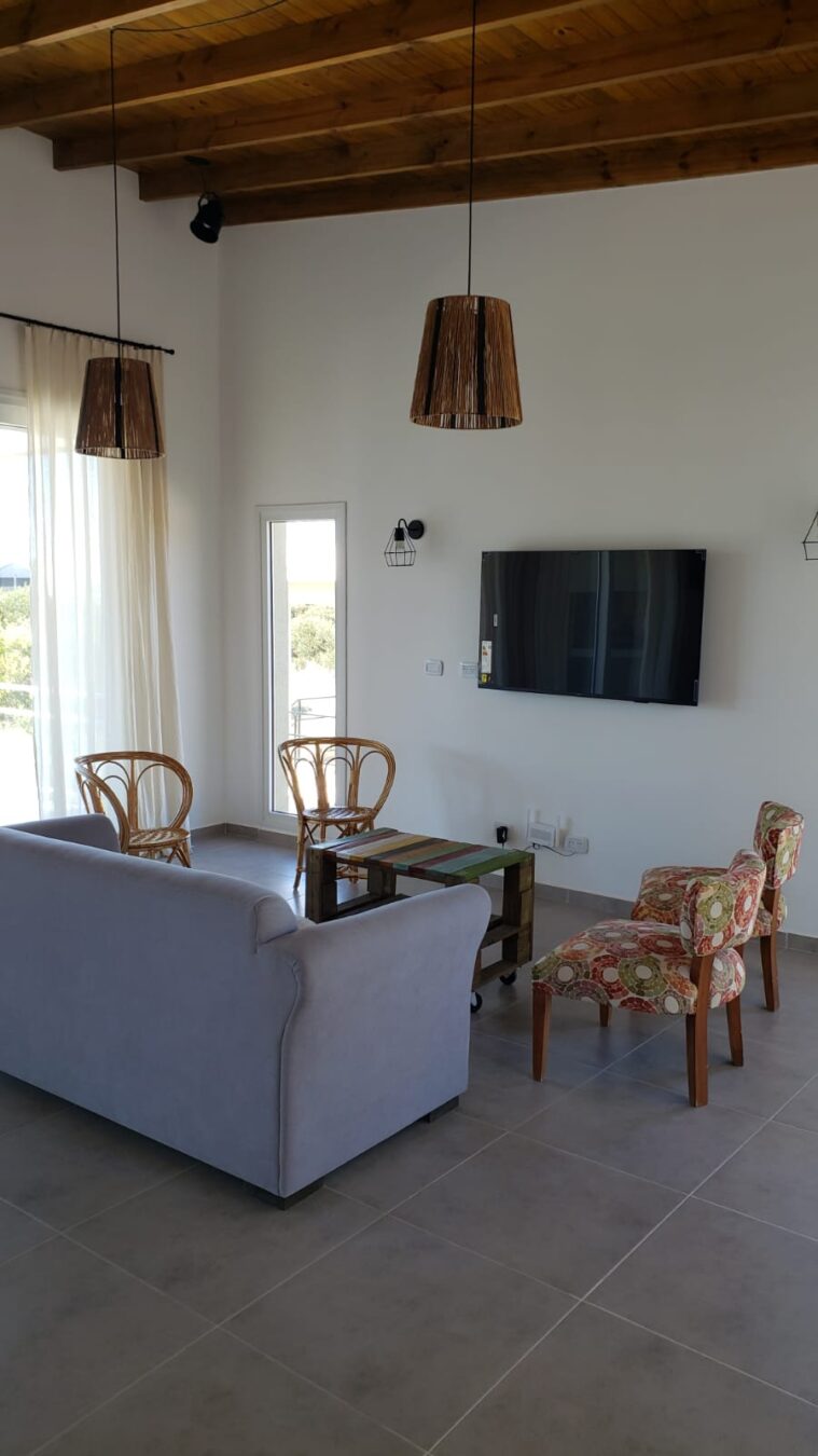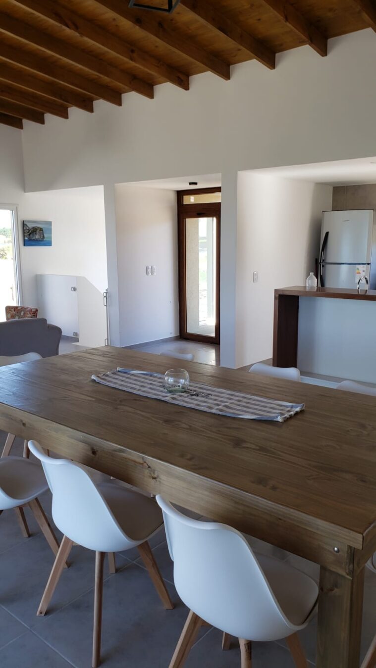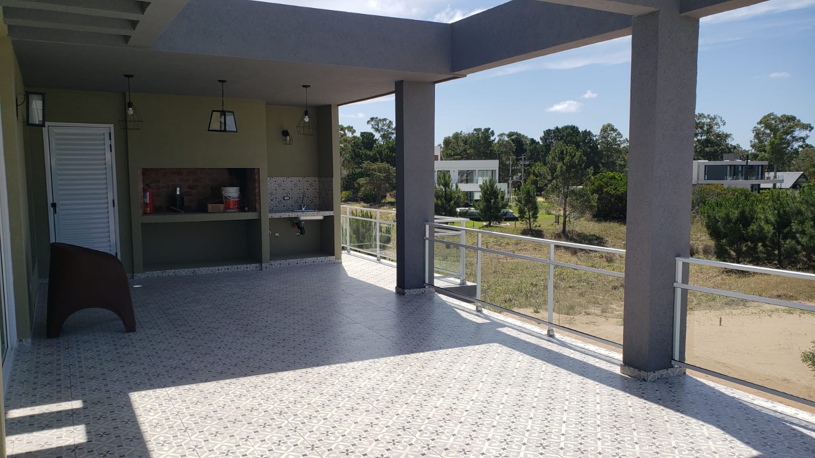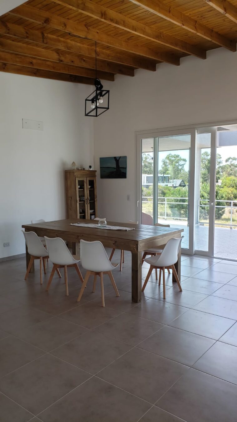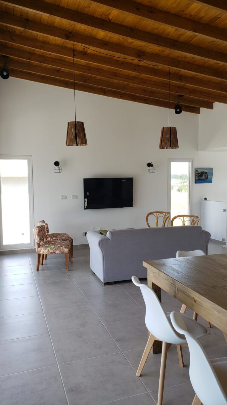 Living comedor con cocina integrada, barra desayunadora incluida. Galería con parrilla. Smart TV de 55”.