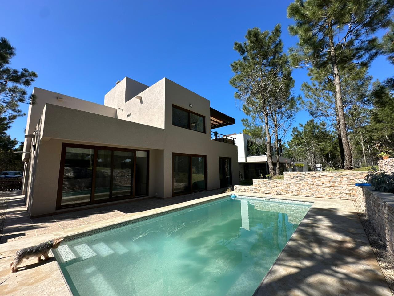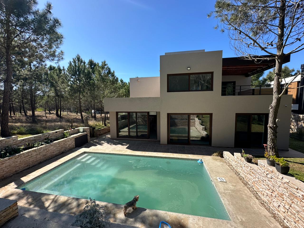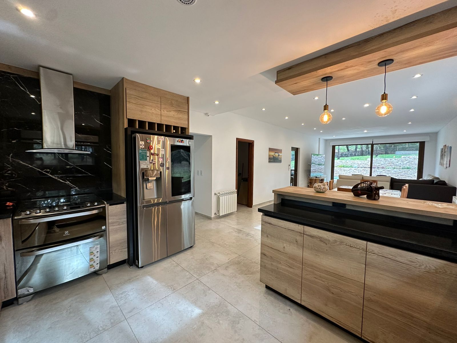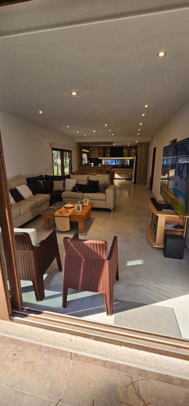 Otros detalles: Cerradura electrónica, cámaras de seguridad, calefacción por radiadores, cortinas black out y de tela. Aire acondicionado en las dos suite. Ventanas de PVC imitación madera con doble vidrio hermético. Cocina de 5 hornallas con horno doble, microondas, heladera LG con freezer y dispenser de agua y hielo, cava de vinos, vajilla para 10 personas. Lava/secarropas. Gas natural. TV Samsung QLED 85´, Internet Wifi, DIRECTV, parquero, piletero.