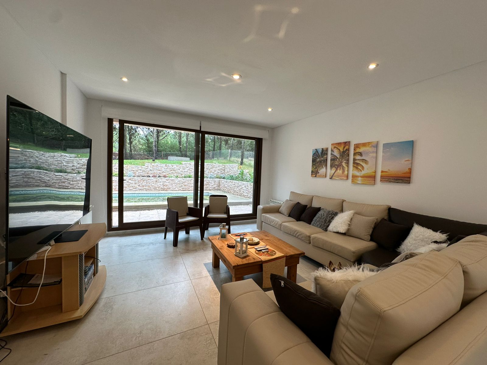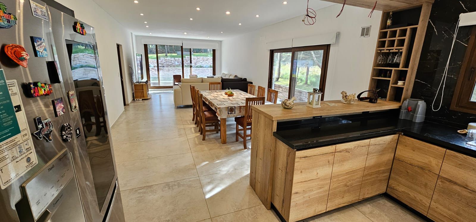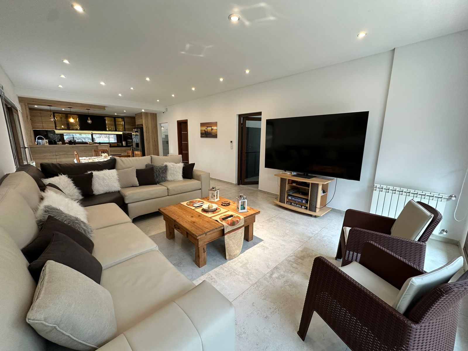 Otros detalles: Cerradura electrónica, cámaras de seguridad, calefacción por radiadores, cortinas black out y de tela. Aire acondicionado en las dos suite. Ventanas de PVC imitación madera con doble vidrio hermético. Cocina de 5 hornallas con horno doble, microondas, heladera LG con freezer y dispenser de agua y hielo, cava de vinos, vajilla para 10 personas. Lava/secarropas. Gas natural. TV Samsung QLED 85´, Internet Wifi, DIRECTV, parquero, piletero.