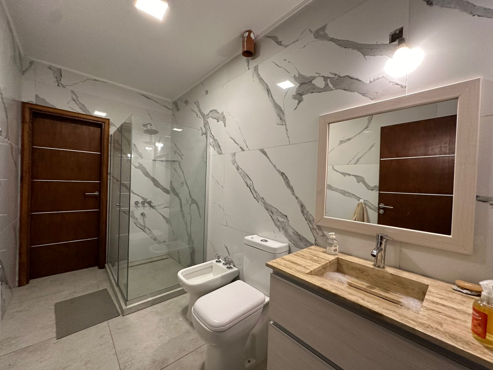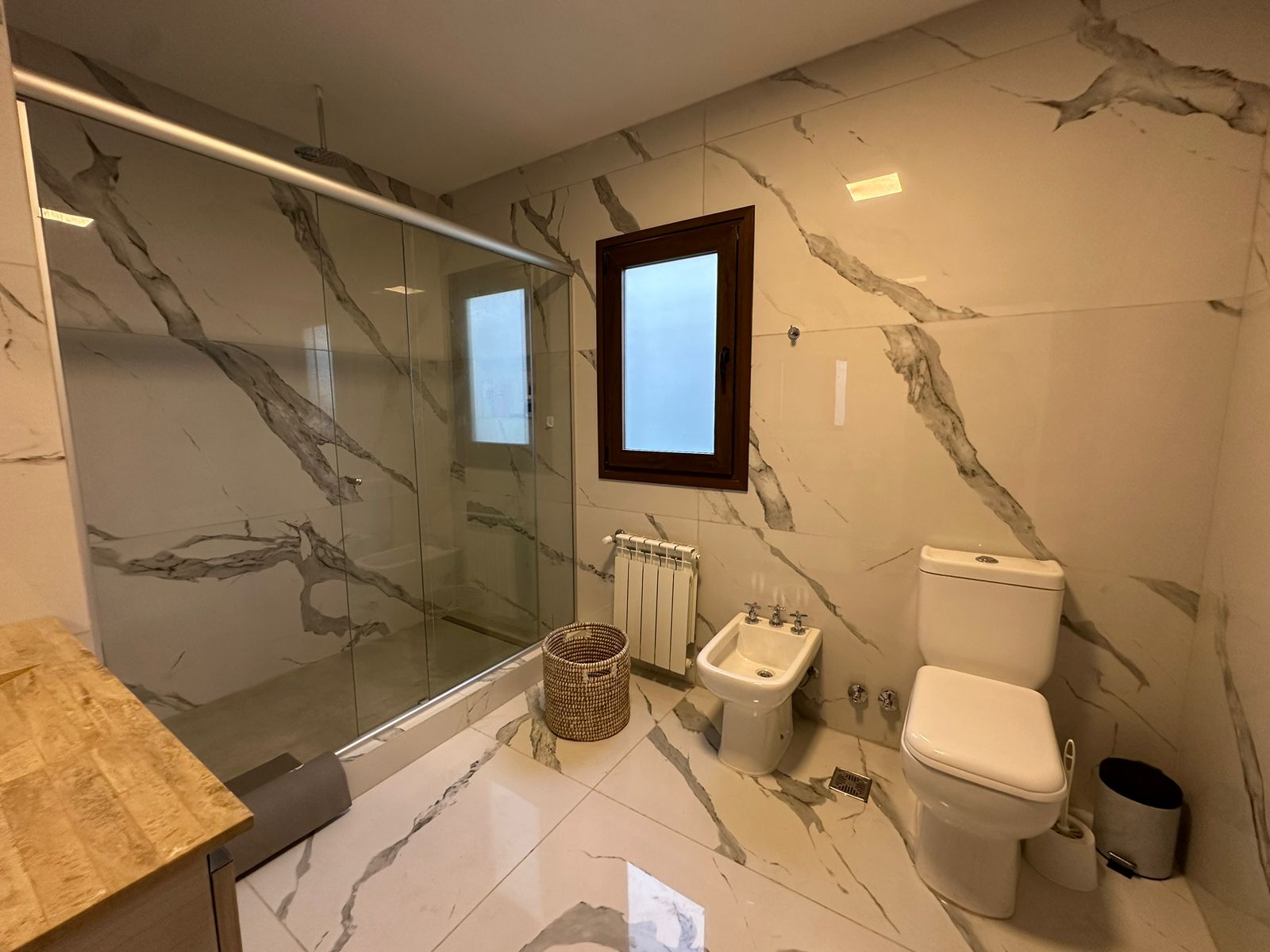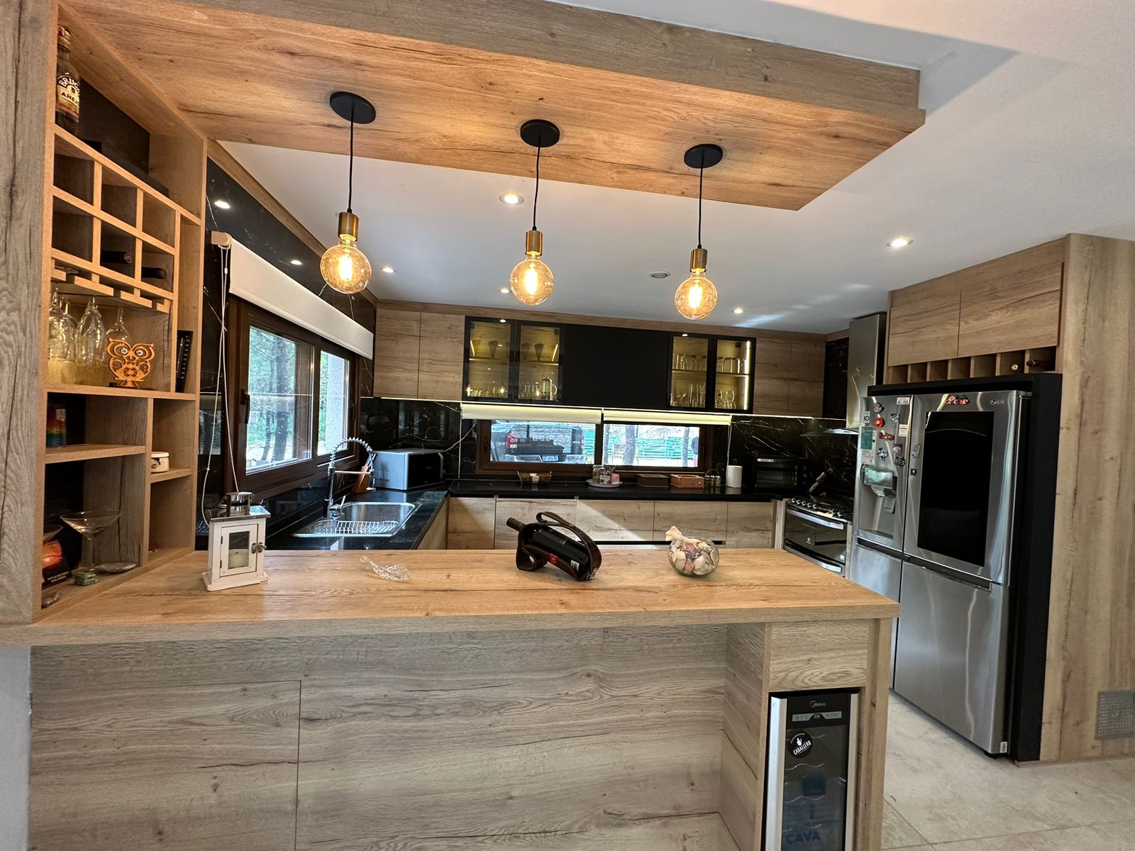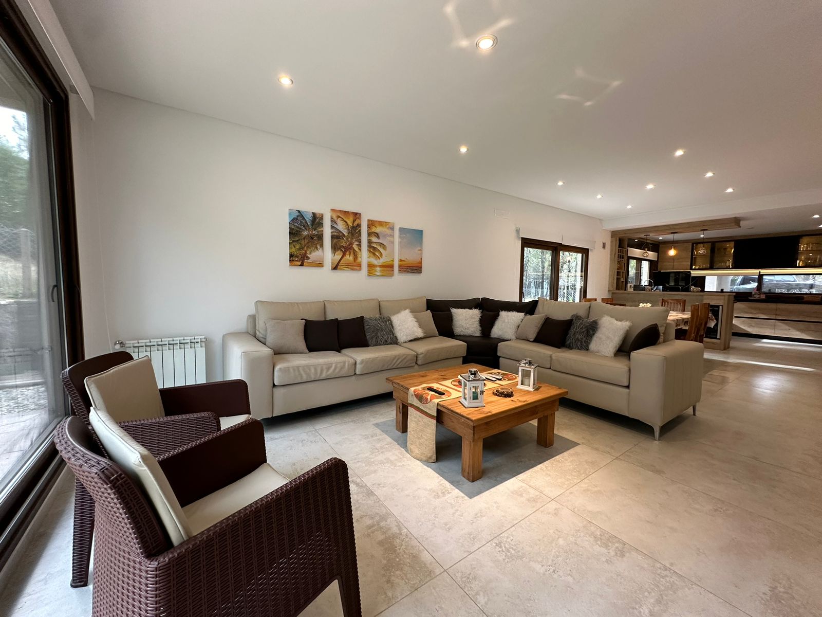 Otros detalles: Cerradura electrónica, cámaras de seguridad, calefacción por radiadores, cortinas black out y de tela. Aire acondicionado en las dos suite. Ventanas de PVC imitación madera con doble vidrio hermético. Cocina de 5 hornallas con horno doble, microondas, heladera LG con freezer y dispenser de agua y hielo, cava de vinos, vajilla para 10 personas. Lava/secarropas. Gas natural. TV Samsung QLED 85´, Internet Wifi, DIRECTV, parquero, piletero.