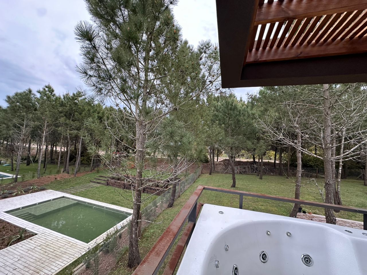 En planta alta, pasillo distribuidor hacia los dormitorios, uno de ellos en suite con placard, aire acondicionado y salida a la terraza, otros dos dormitorios con placard, un antebaño y baño completo. Sala de maquinas, playroom, salida a la terraza semicubierta con pérgola techada de madera y jacuzzi con Ozonizador.