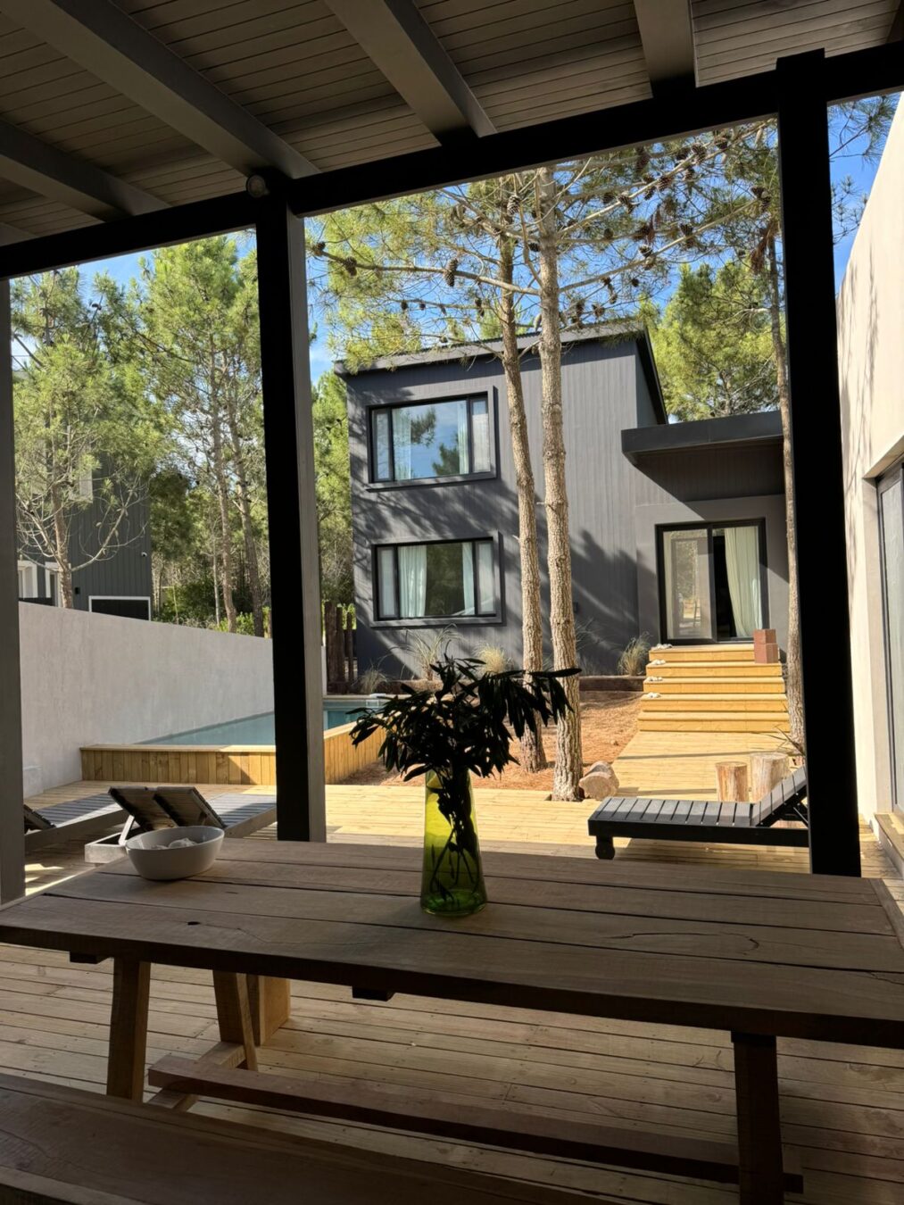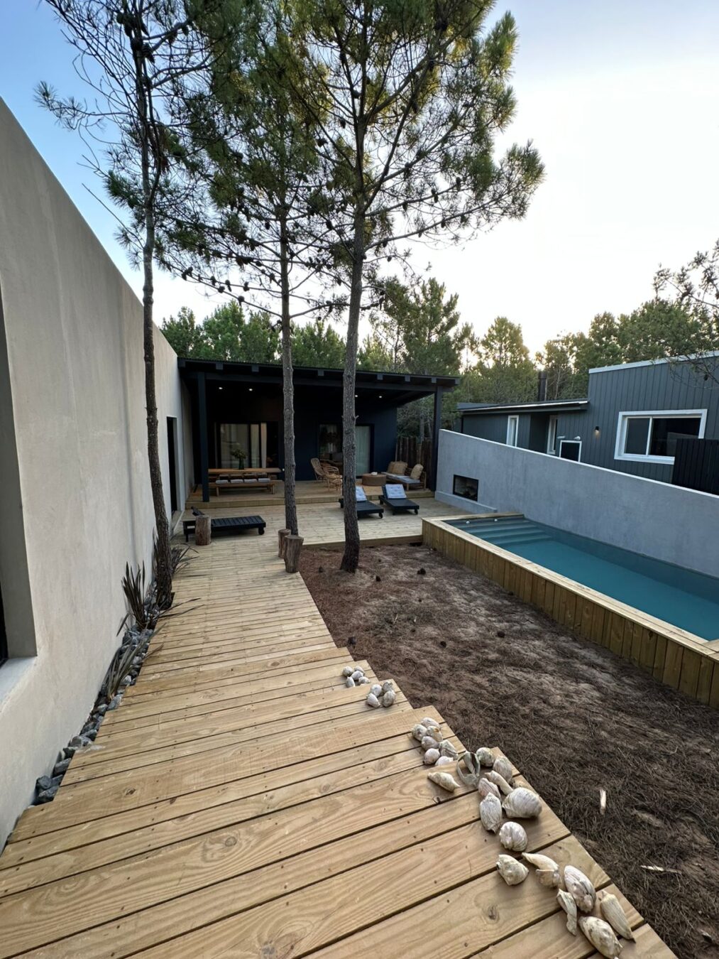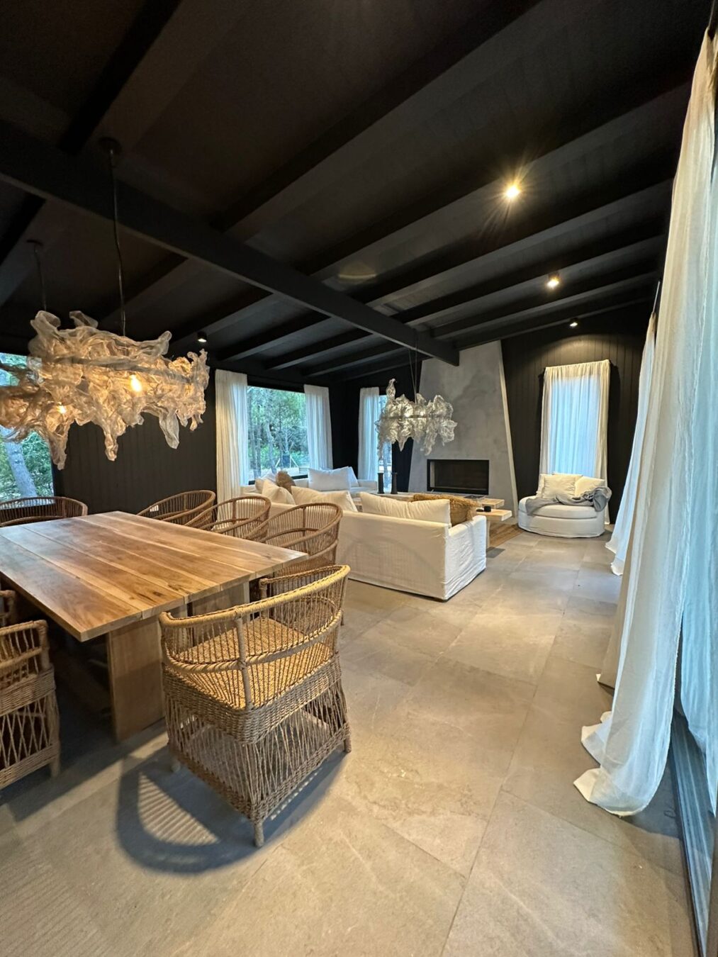 – Galería con comedor y living con hogar