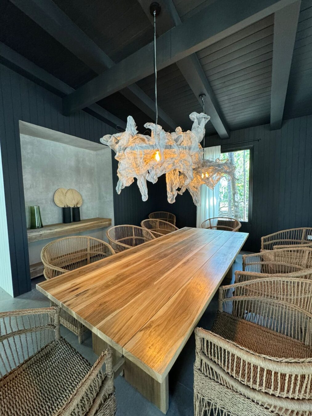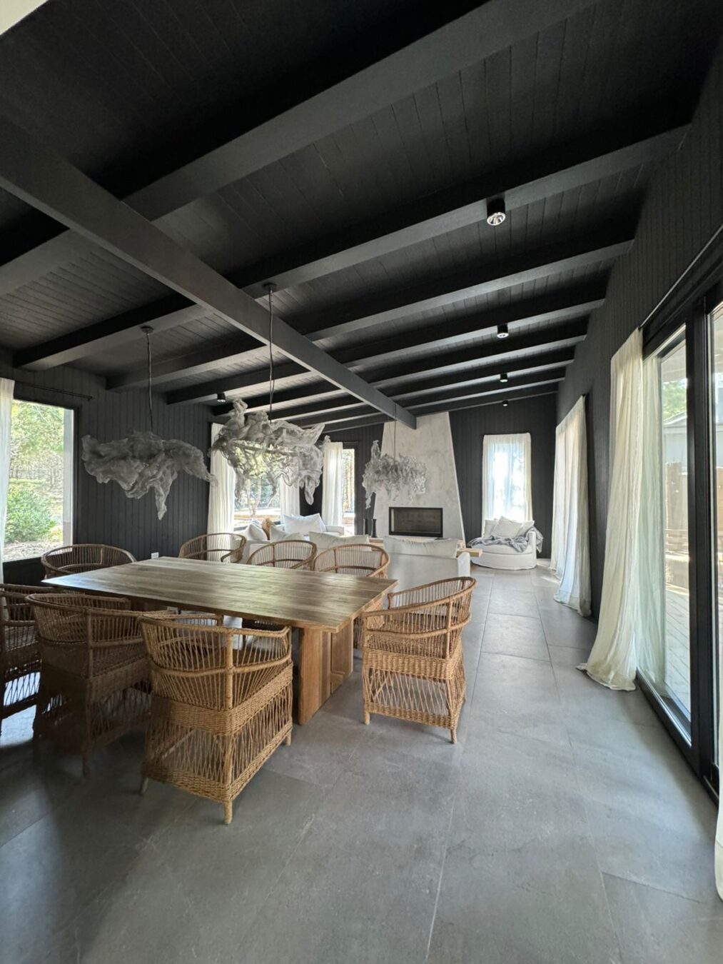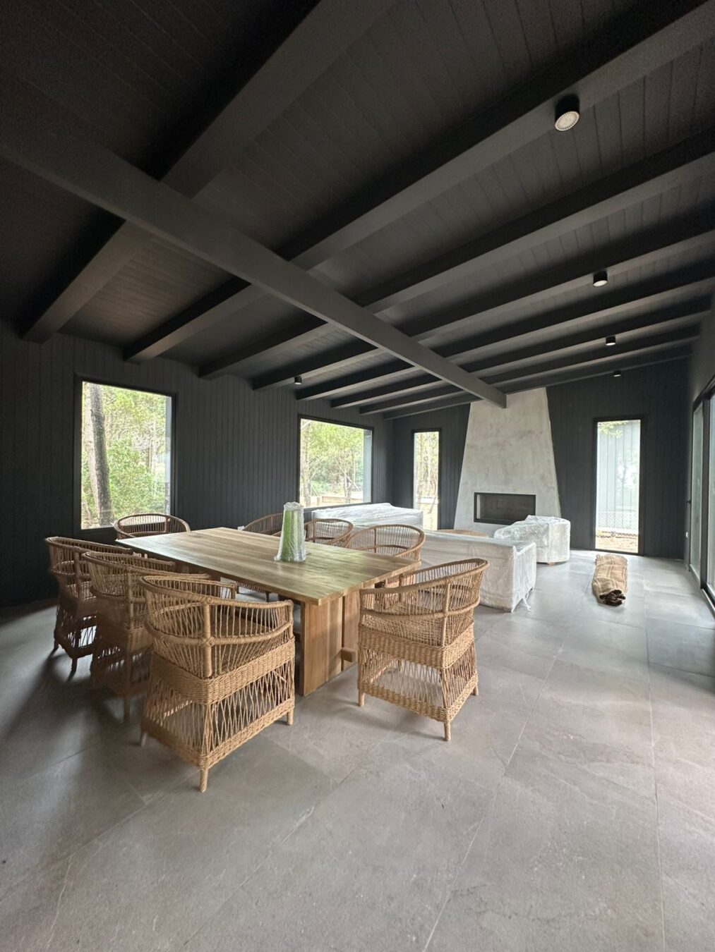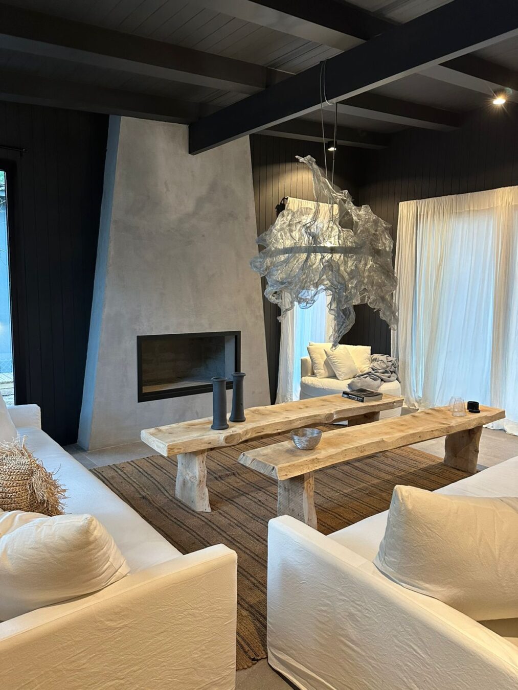 – Galería con comedor y living con hogar