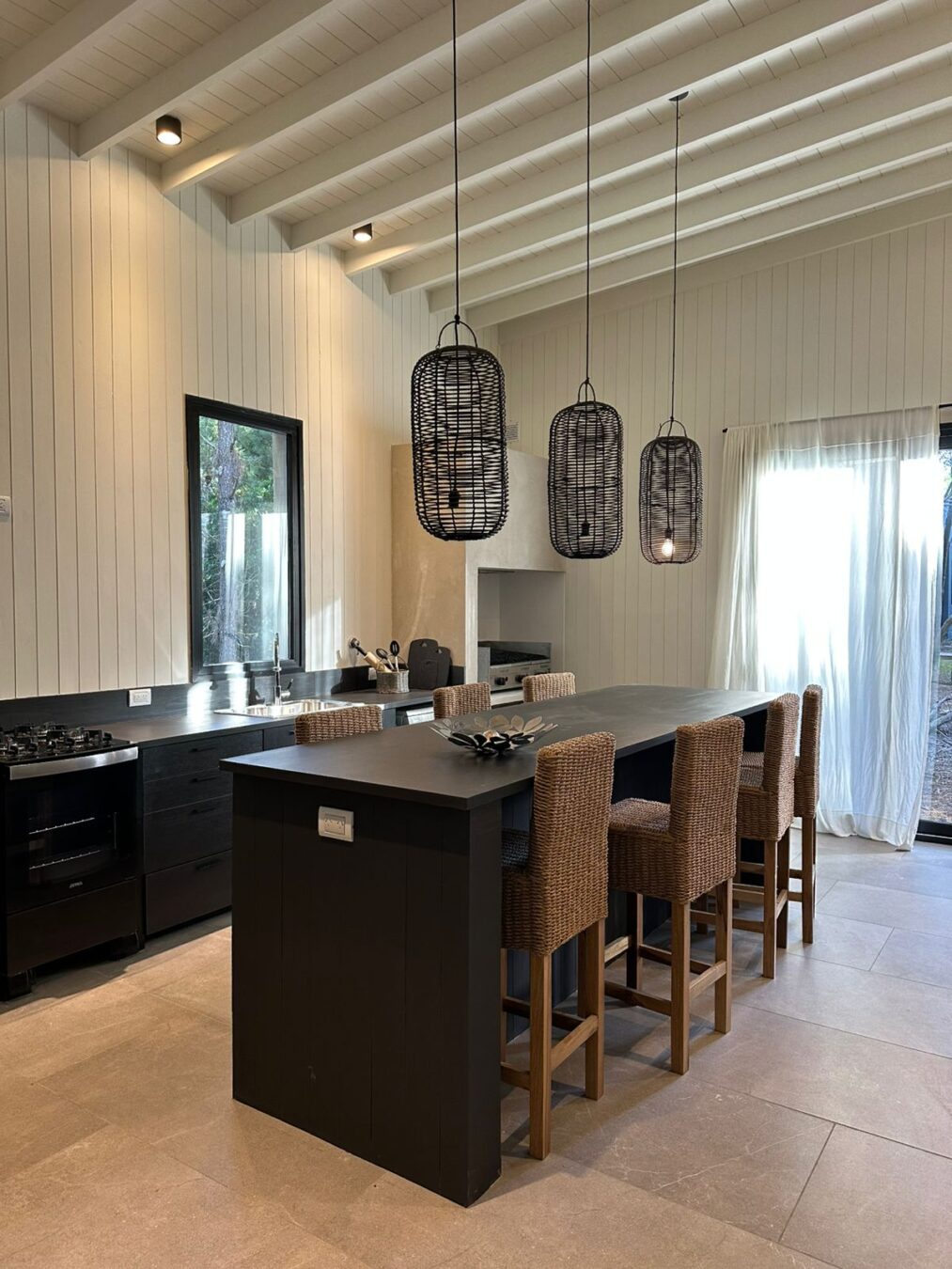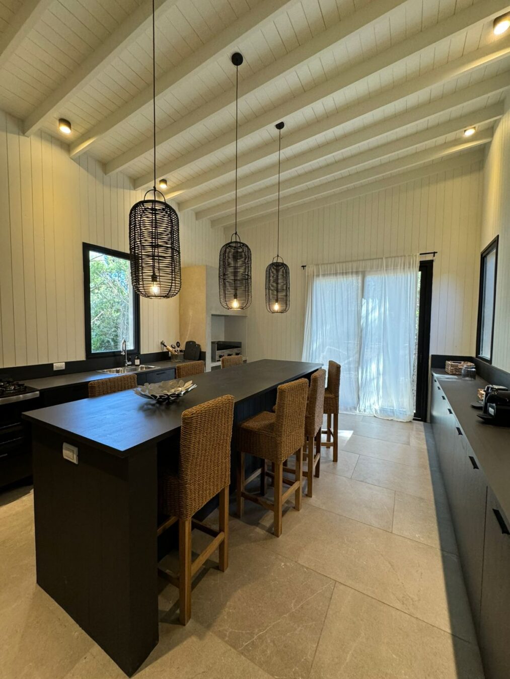 Casa en venta y alquiler temporario, desarrollada en 2 plantas, sobre un lote de 1140 m2. A sólo 100 mts. del mar. Living con hogar a leña y playroom. Cocina completamente equipada con anafe y horno a gas, heladera con freezer, Nespesso.