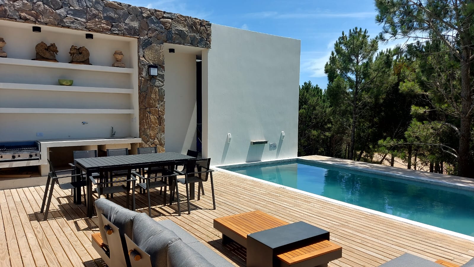 La planta principal tiene un patio interno con pileta y parrilla a gas.
