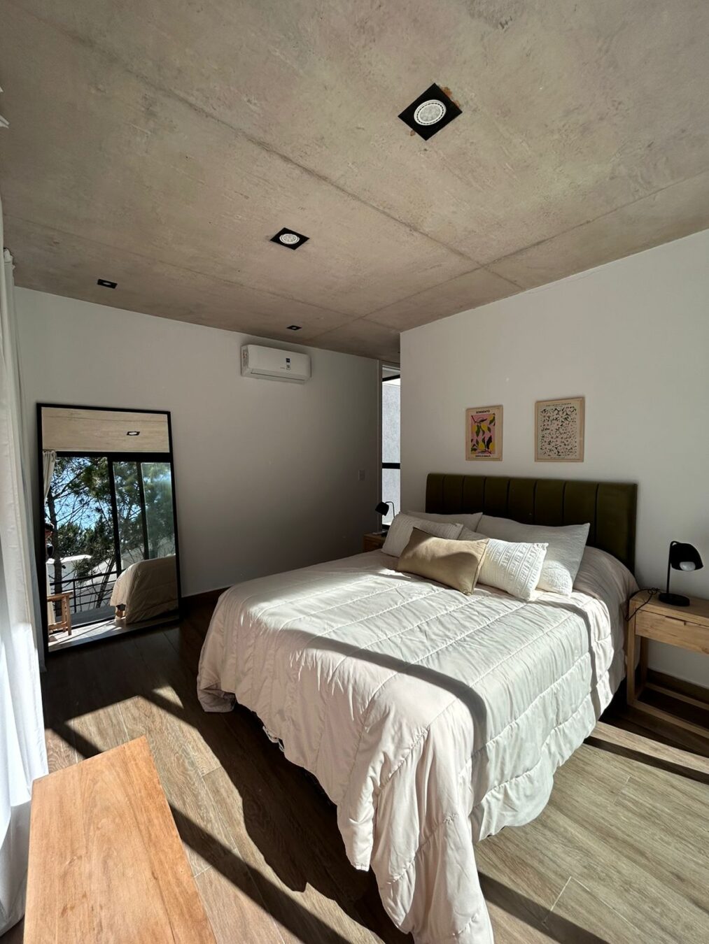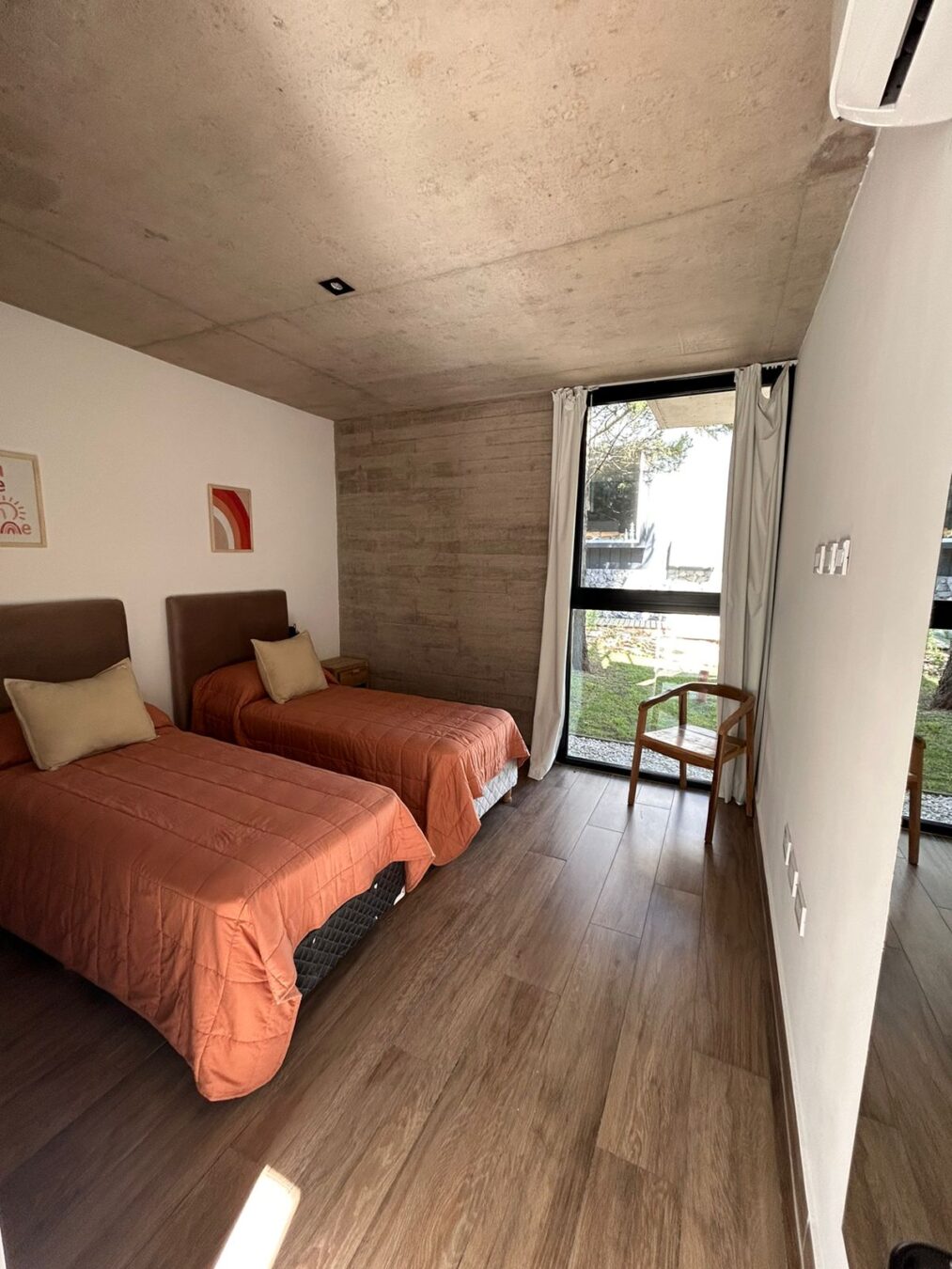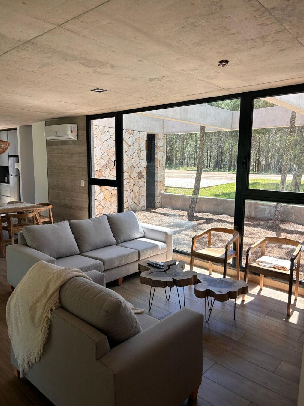 – Amplio living comedor con aire acondicionado + smart tv 65′ y hogar a leña.