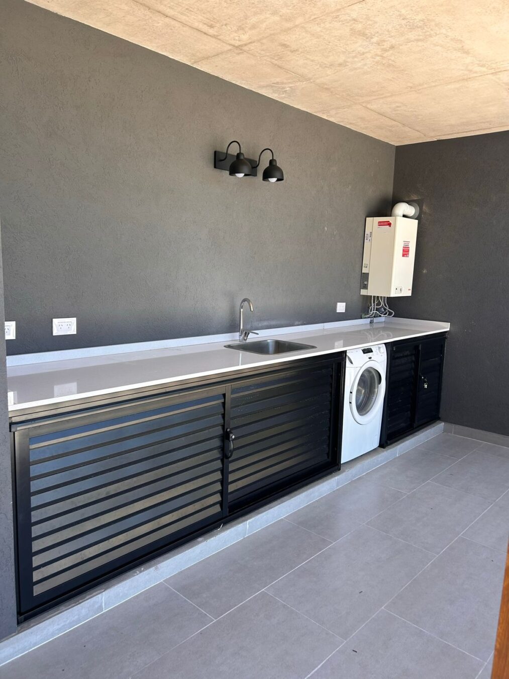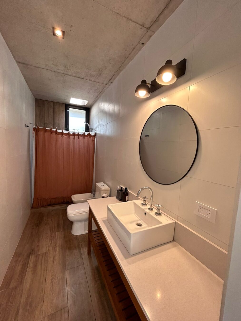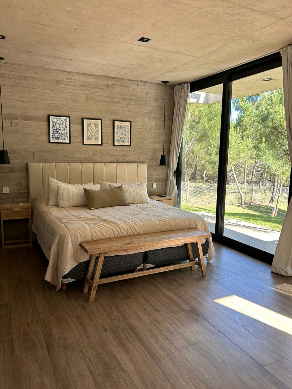 – Amplio living comedor con aire acondicionado + smart tv 65′ y hogar a leña.