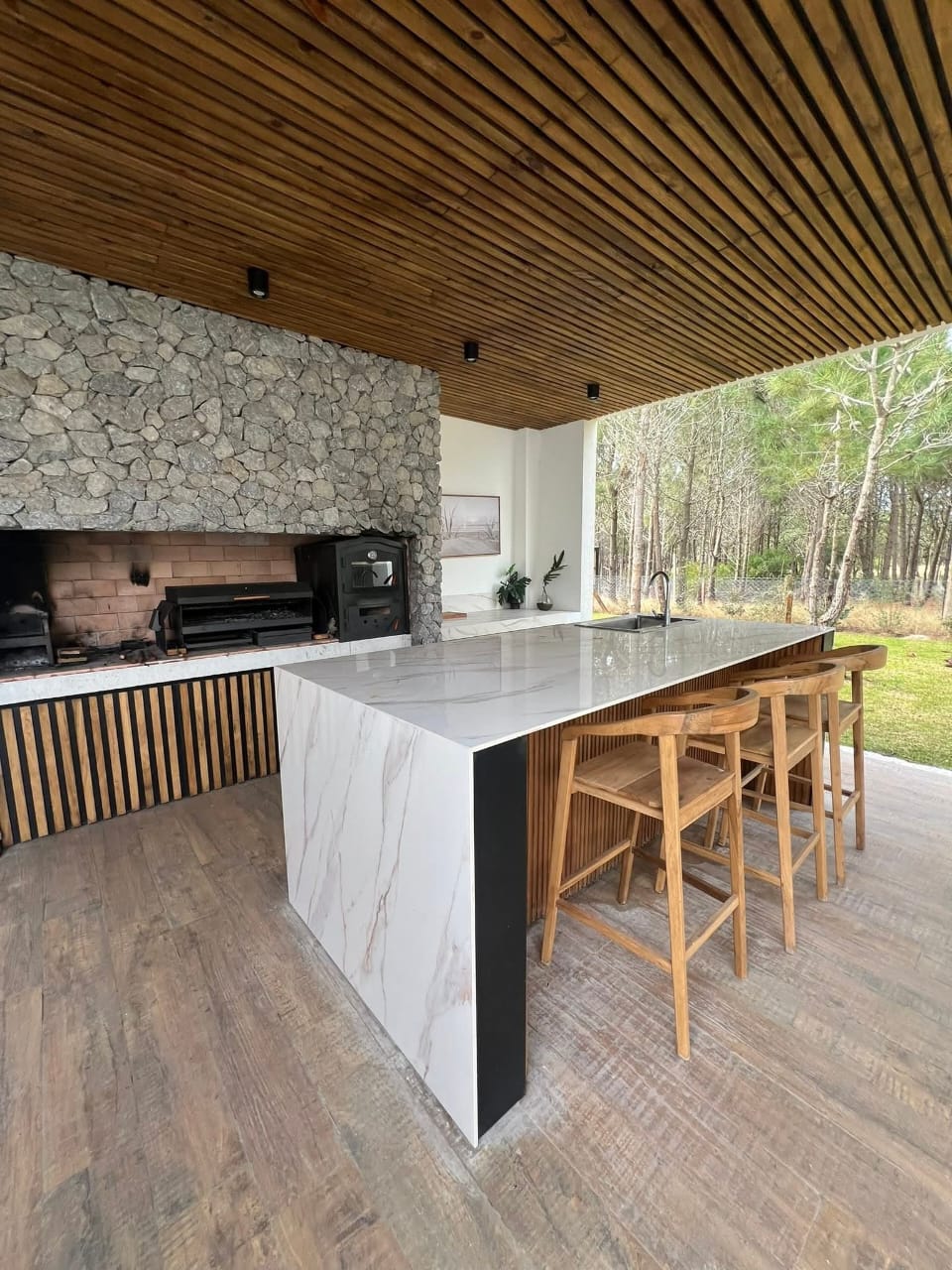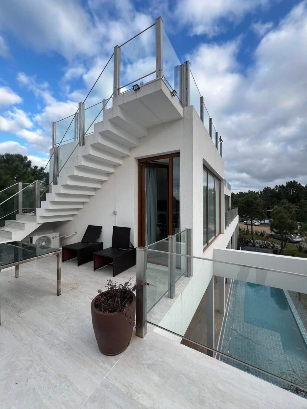 Con capacidad para 10 personas, la casa cuenta con cuatro habitaciones, todas en suite mas dependencia de servicio.