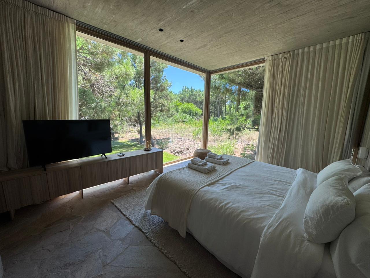 Ubicada en el barrio Marítimo II de Costa Esmeralda, a pocos metros de la playa y con vista al mar. Rodeada de pinos, esta casa ofrece confort y un entorno natural maravilloso.
