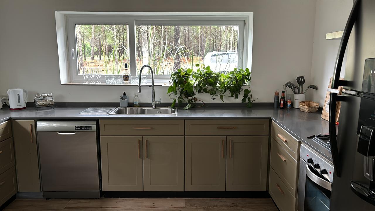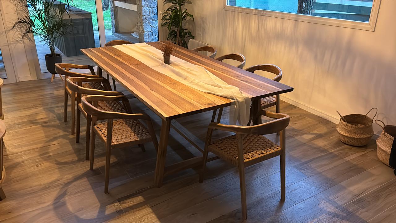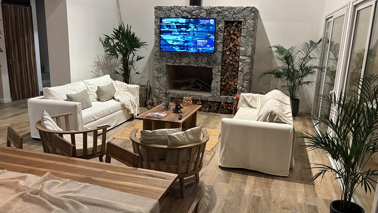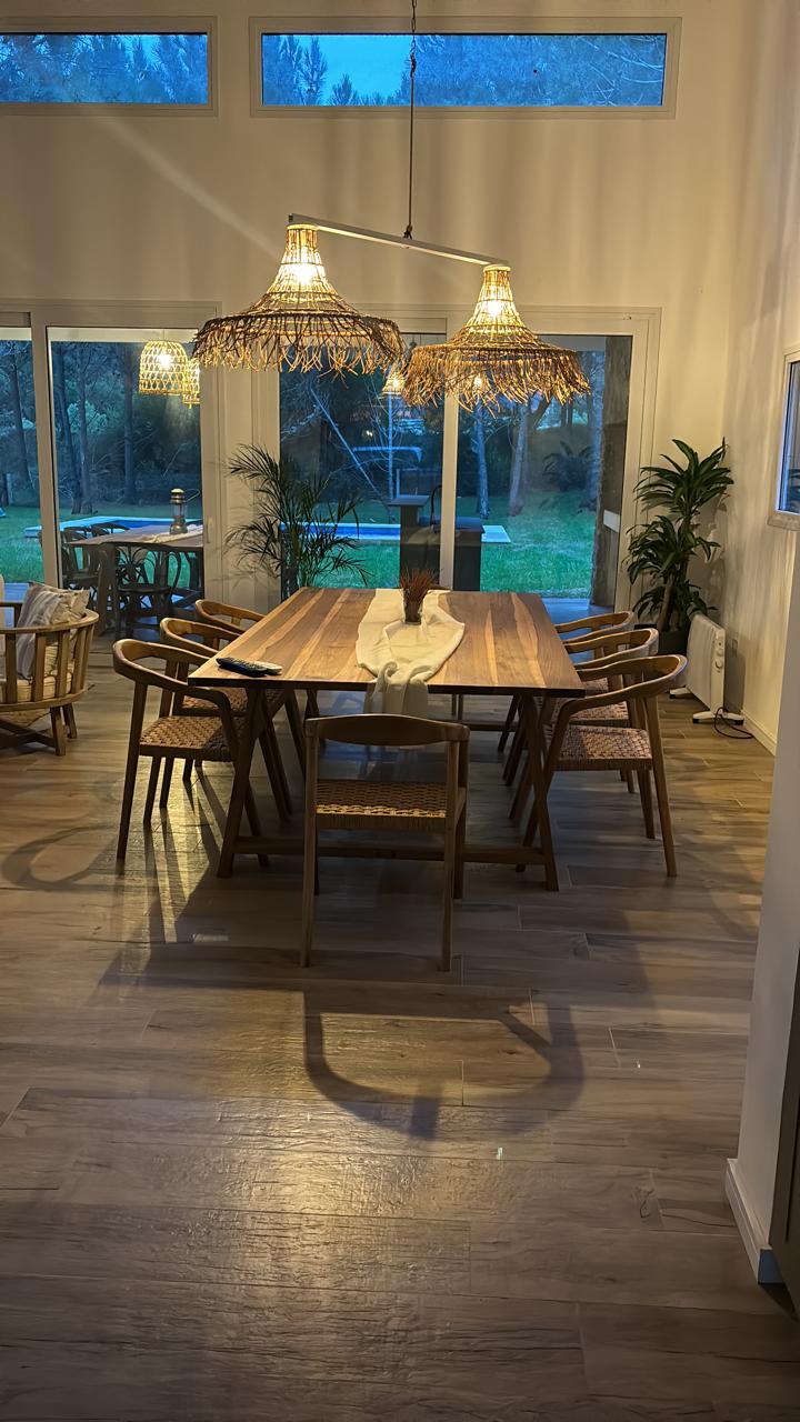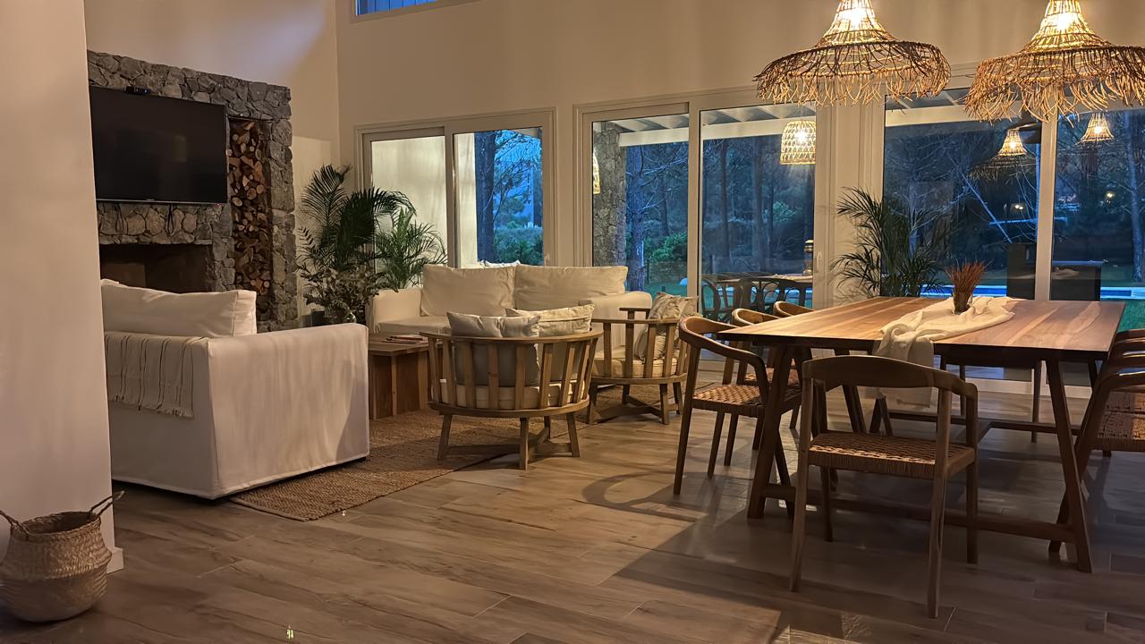 Amplio living con hogar a leña comedor para 8 personas muy amplia cocina integrada completamente equipada con lavavajillas y cava de vinos.