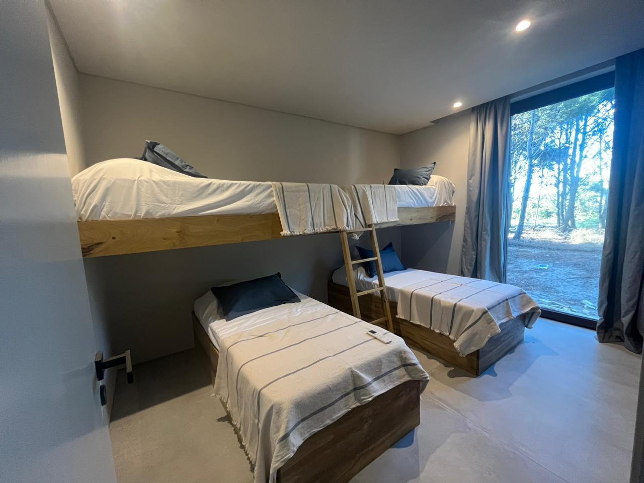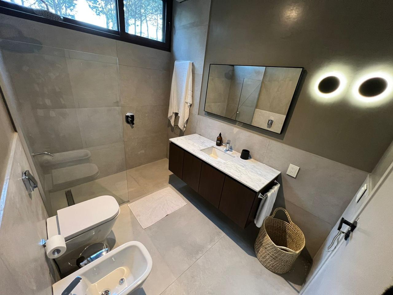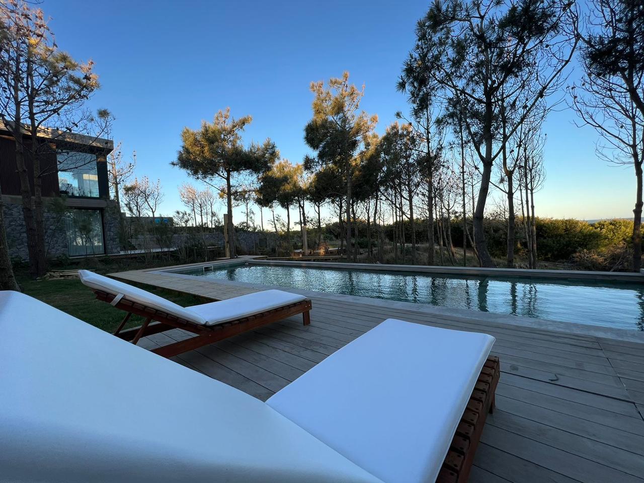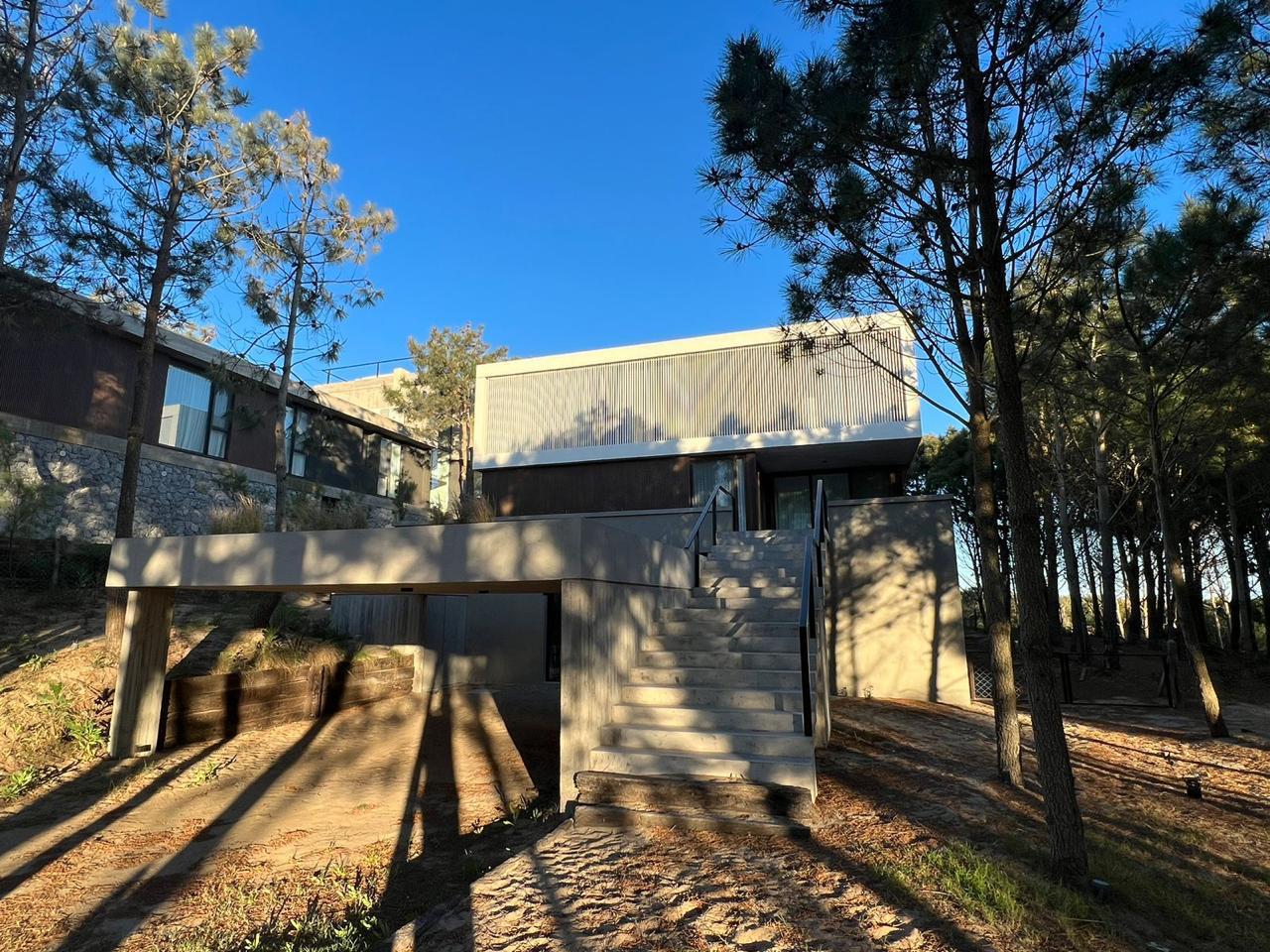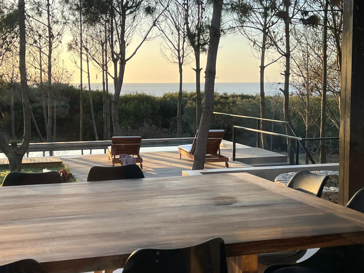 – Amplias galerías semicubiertas de verano hacia el mar con parrilla y living de fuego, equipada con Barra y banquetas, amplia mesa de madera maciza para 14/16 comensales y sillones que rodean el living de fuego. Galería de invierno hacia el bosque