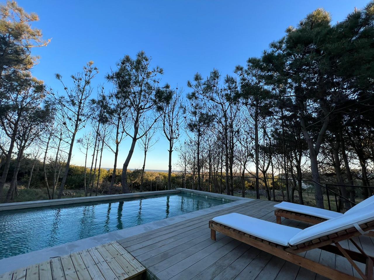 – Gran solárium en madera de lapacho con vistas al mar y fogonero en piedra.