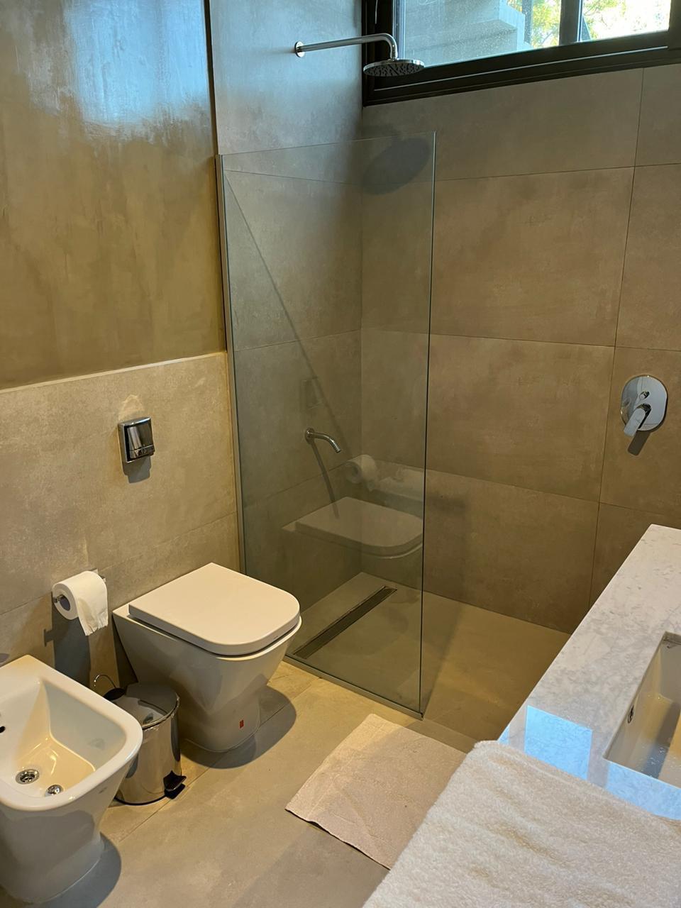 – Piscina de hormigón armado, calefaccionada , revestida en piedra bali, iluminación led y equipos de filtrado , solárium húmedo , solárium deck de madera de lapacho.