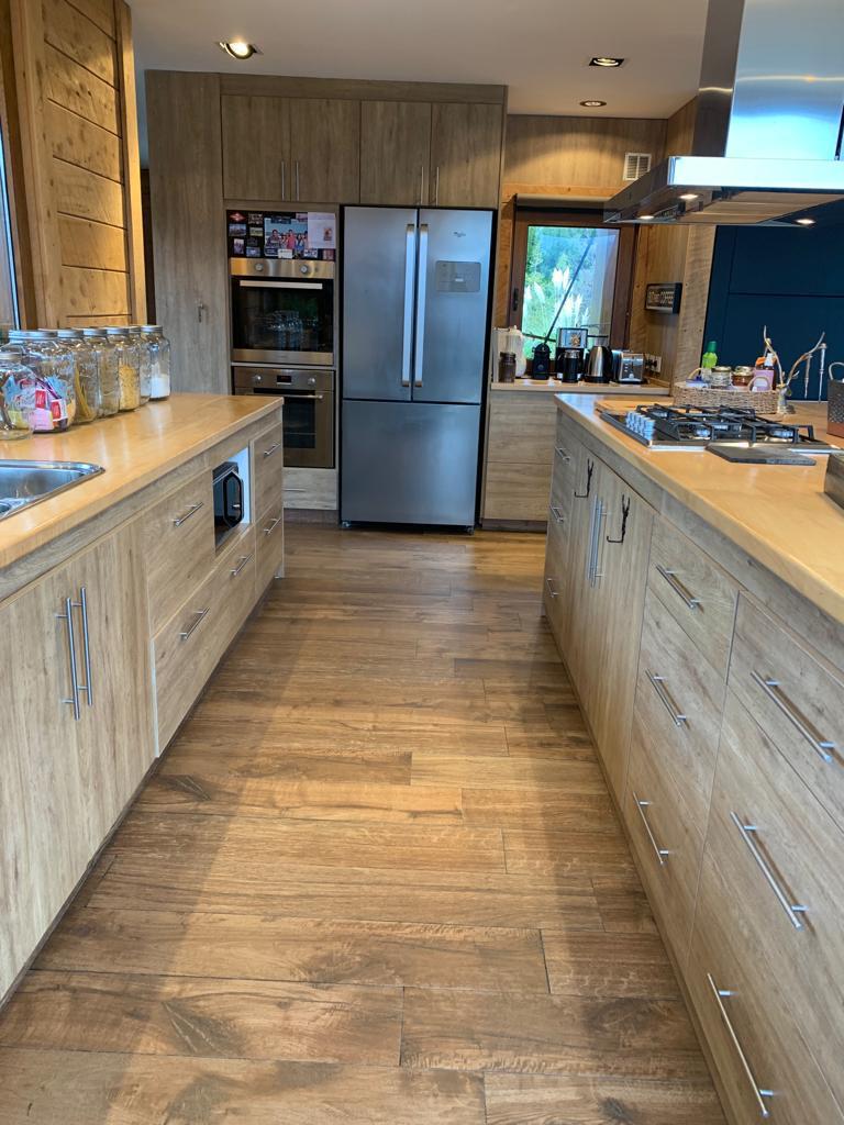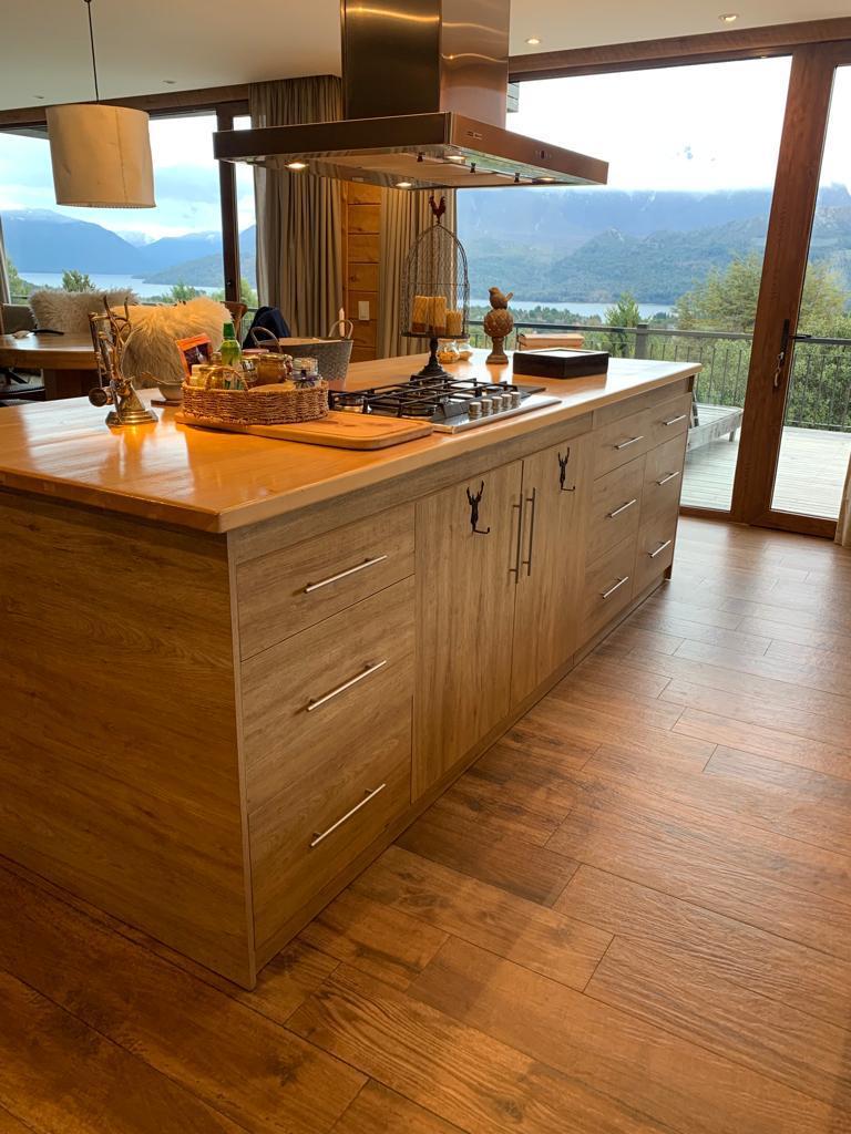La cocina, totalmente equipada, cuenta con cómoda isla de trabajo, comedor diario y parrilla in-out. Desde allí
