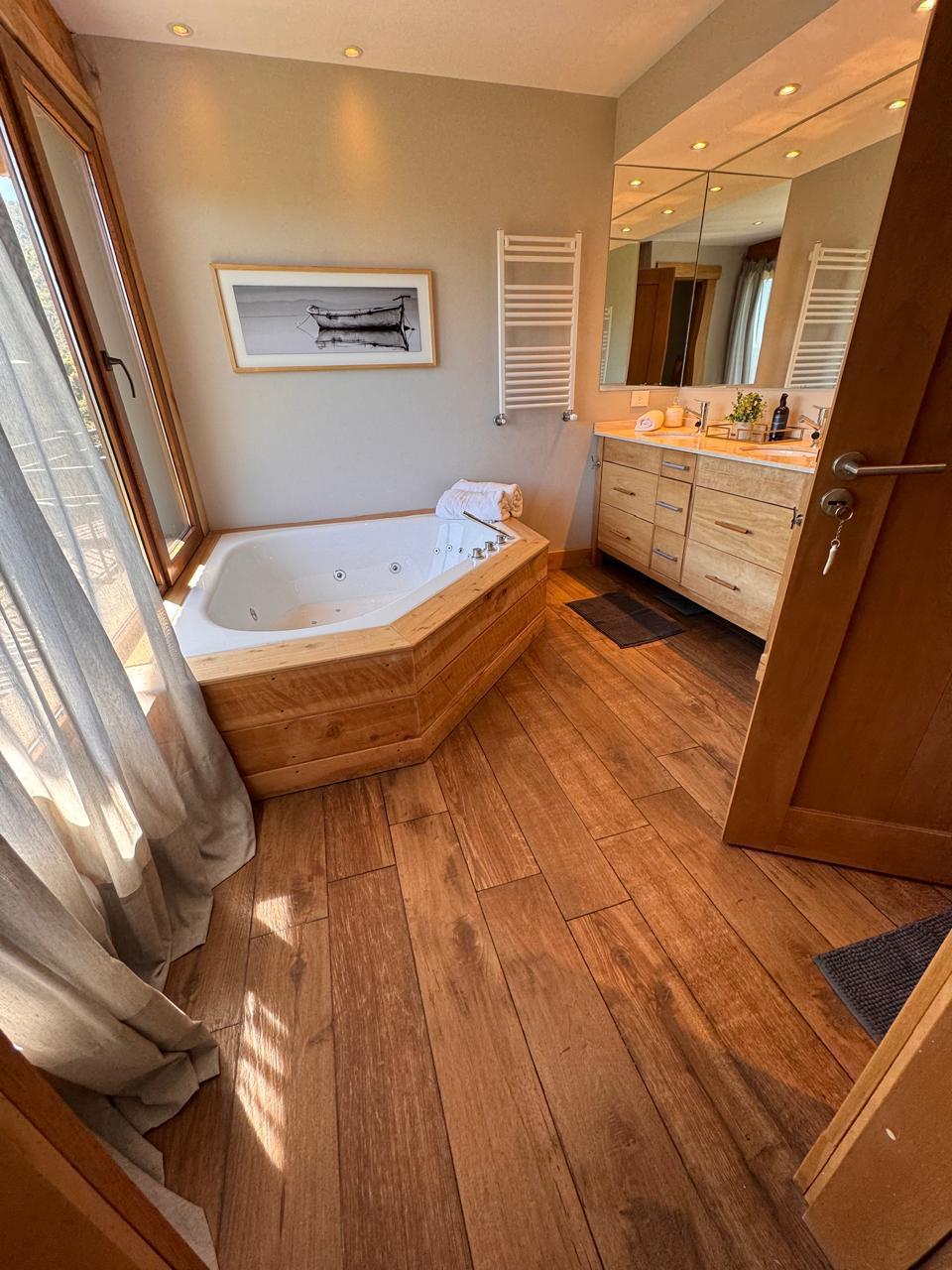 Del lado izquierdo, encontramos el spa con hidromasaje y ducha. Sala de T.V.